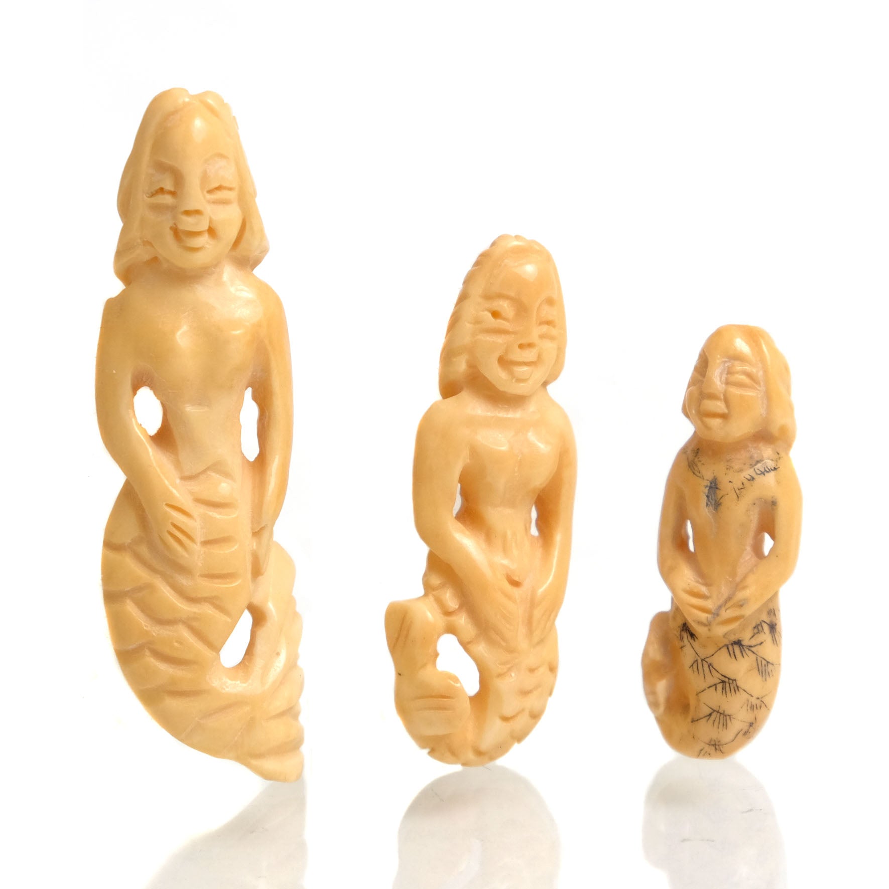 Carved Mermaid Bone Pendant Bead