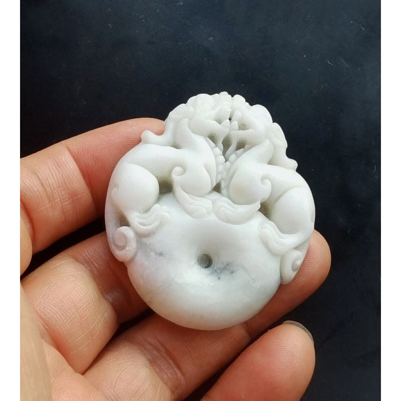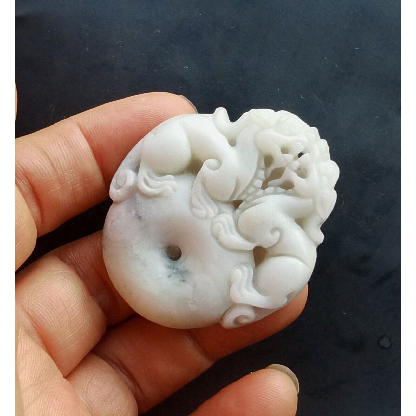 Carving Dragon Qilin Donut Natural White Jade Stone Pendant