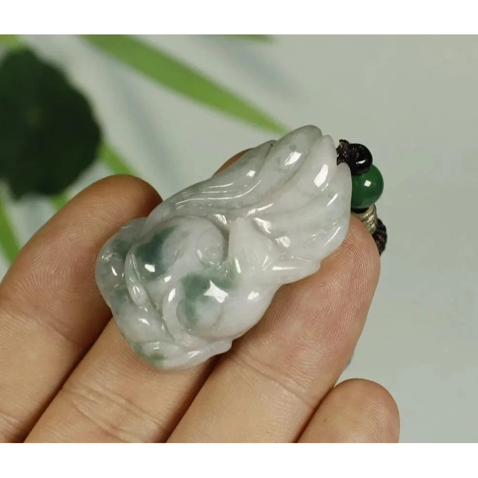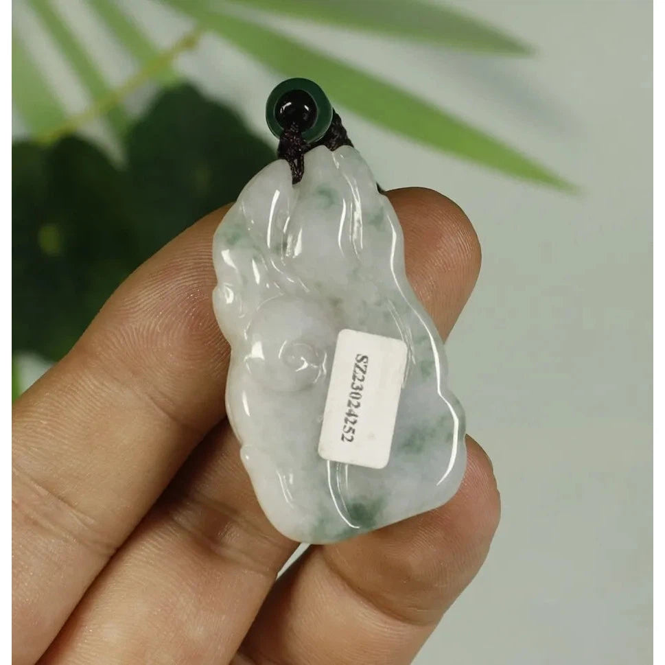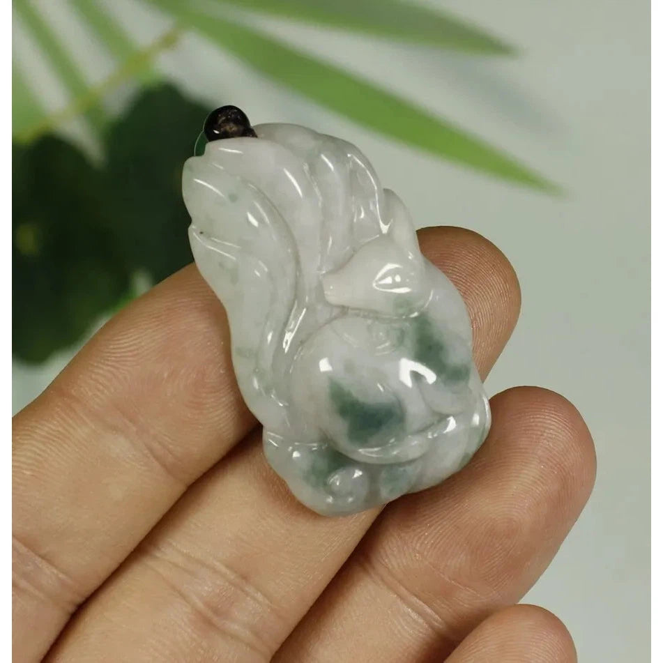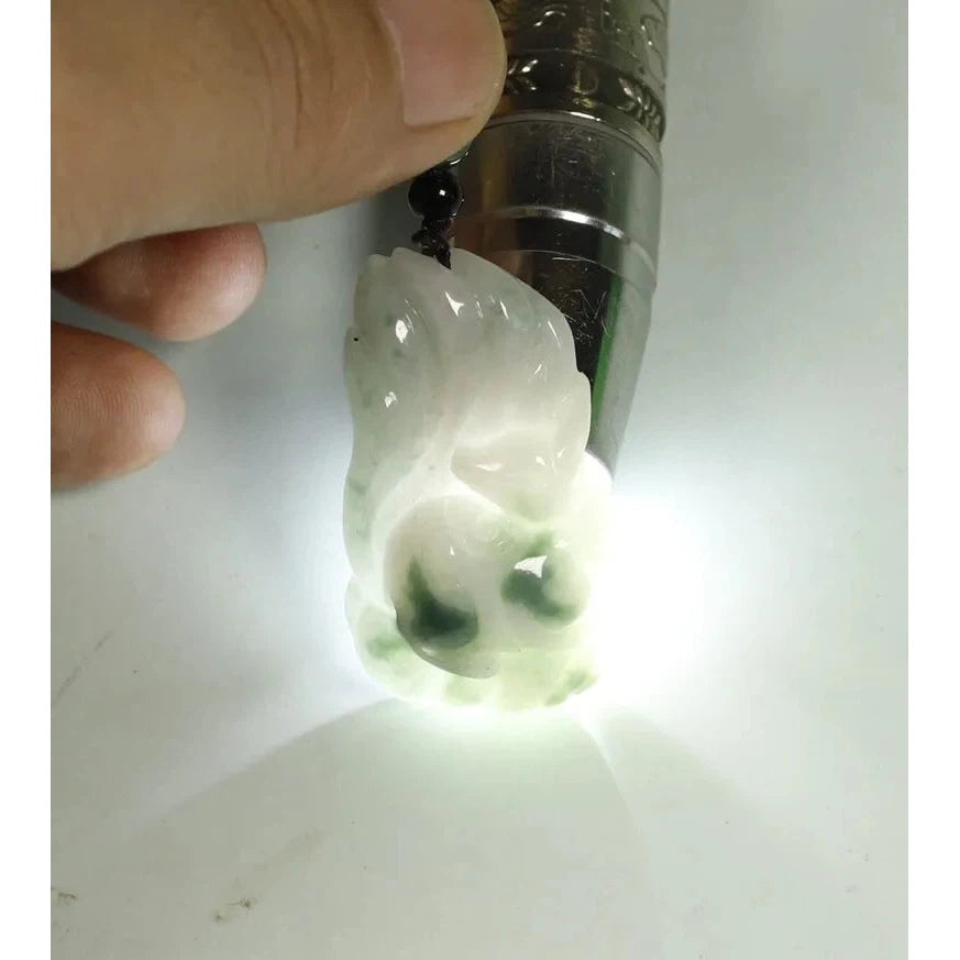 • Certified Light Green 100% Natural A Jadeite Jade Pendant Fox
