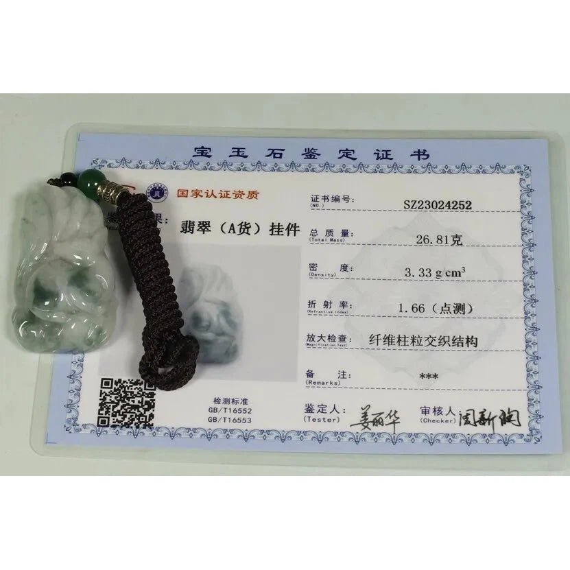 Certified Light Green 100% Natural A Jadeite Jade Pendant Fox