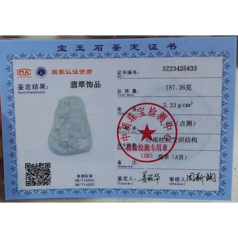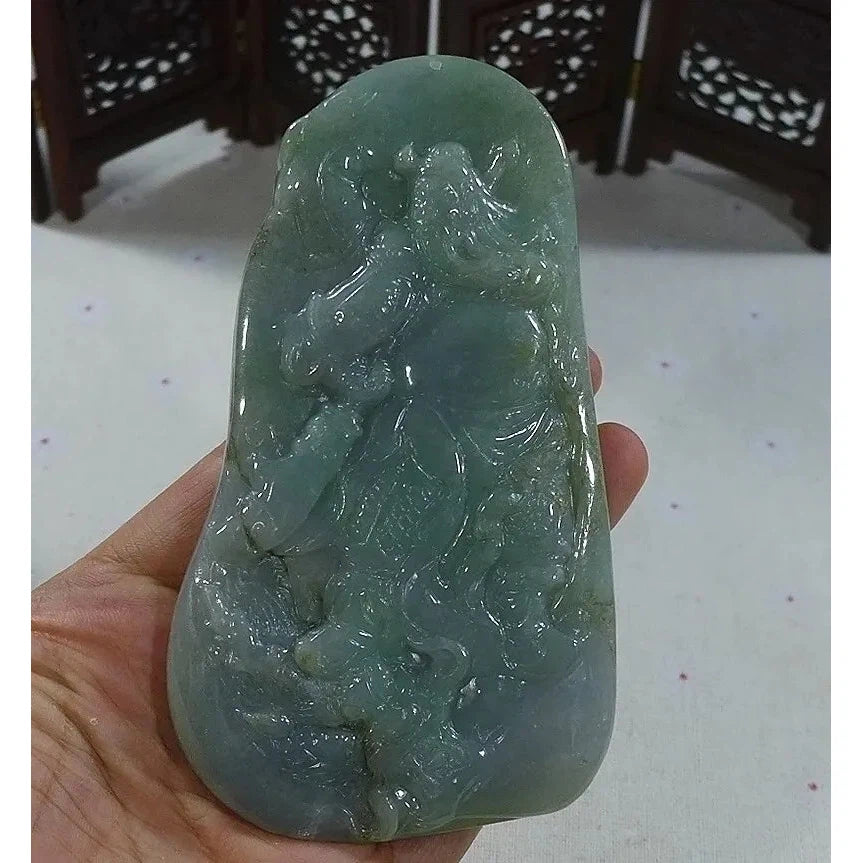 Certified Natural Type A Icy Lavender Jadeite Jade Big Guan Gong Pendant