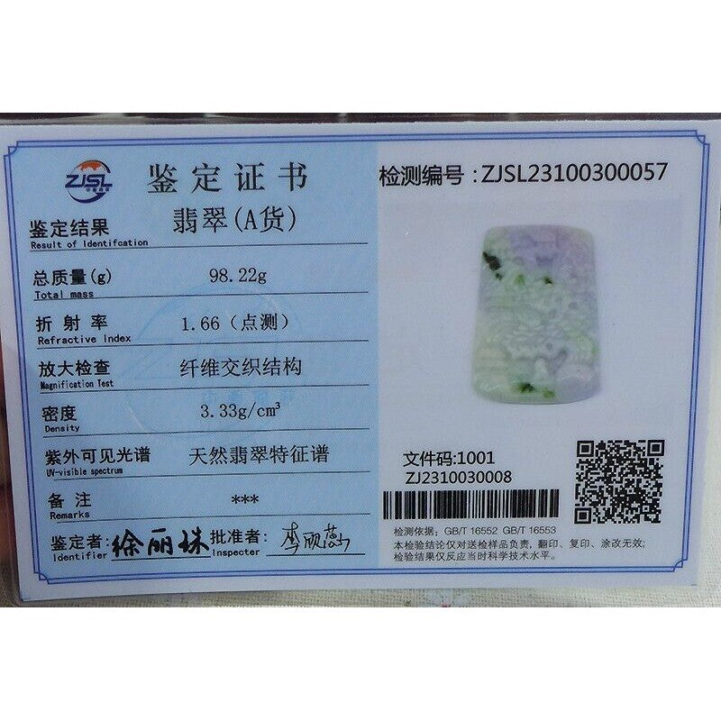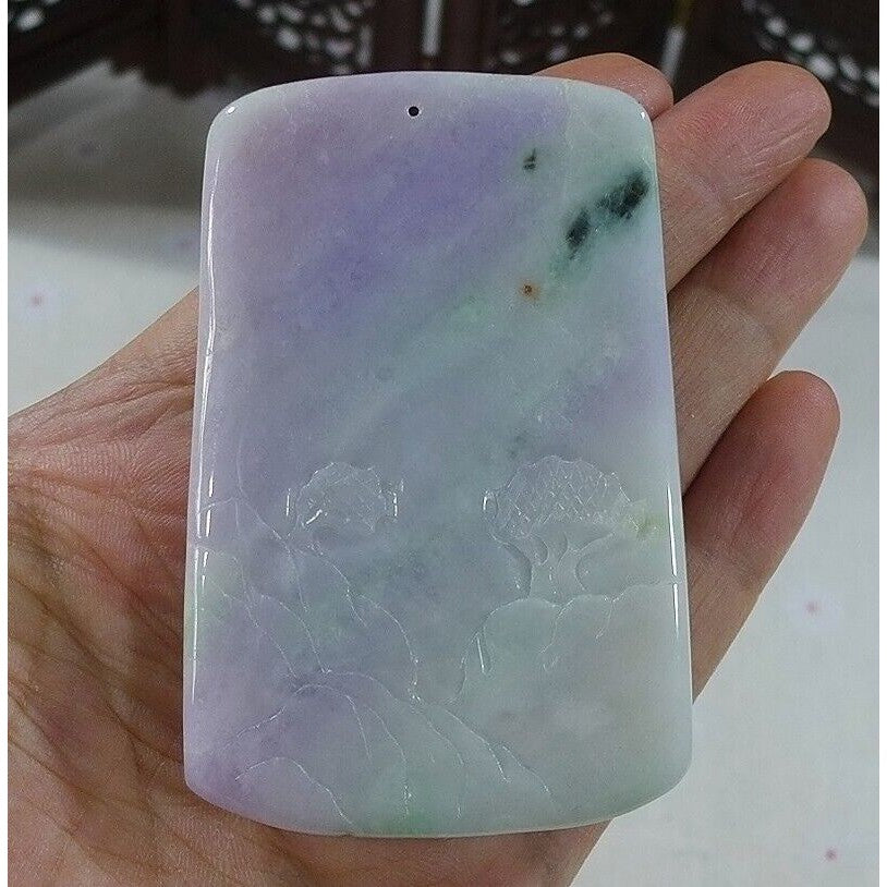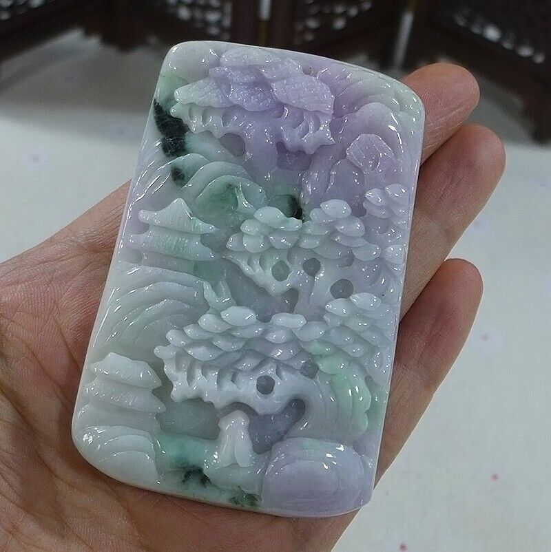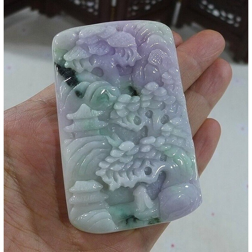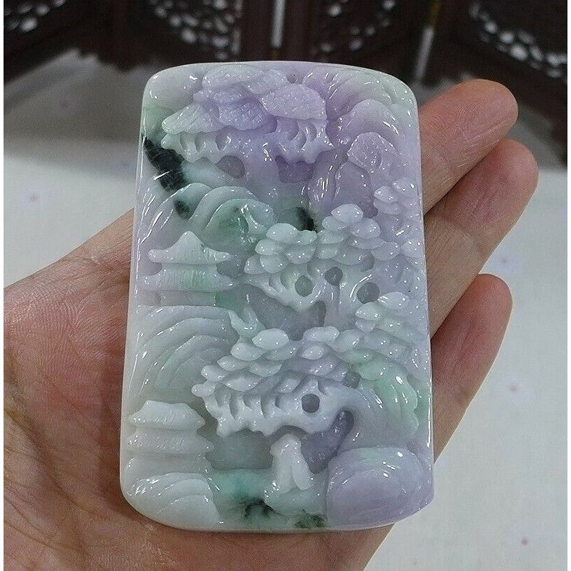 Certified Natural Type A Lavender Green Jadeite Jade Big Landscape Pendant Necklace