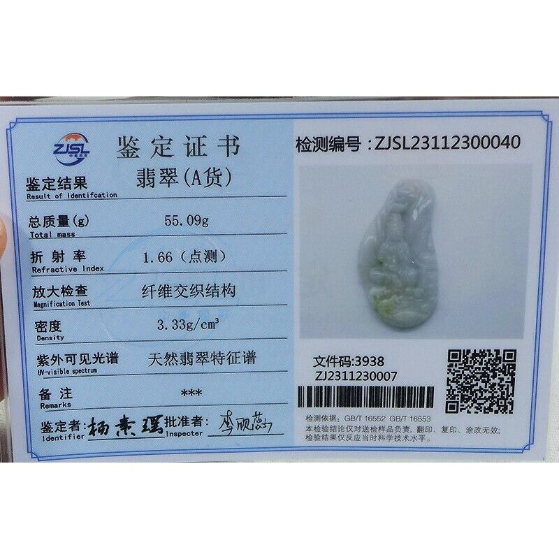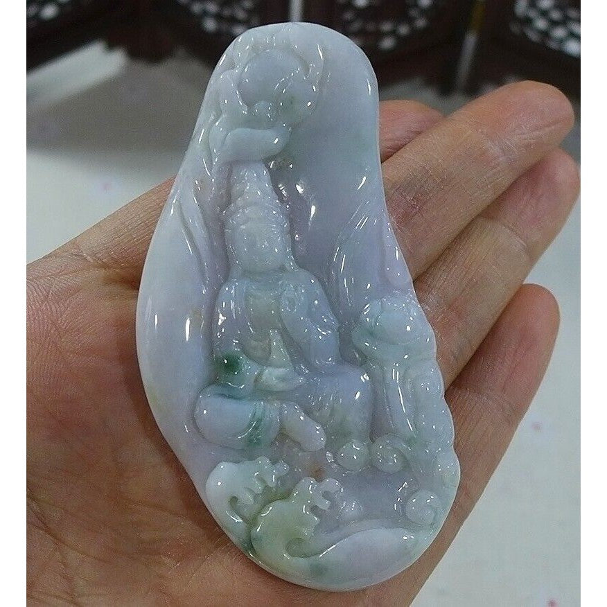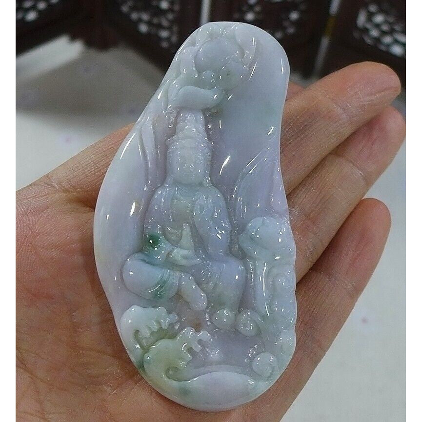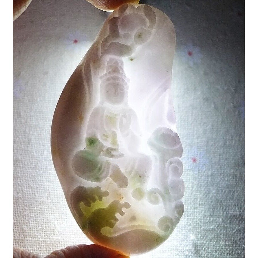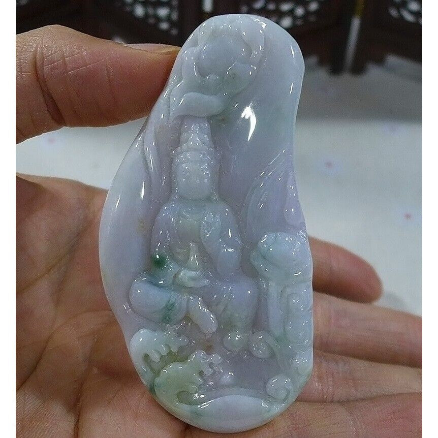 Certified Natural Type A Lavender Green Jadeite Jade Lotus Kwan-Yin Pendant