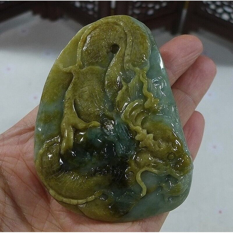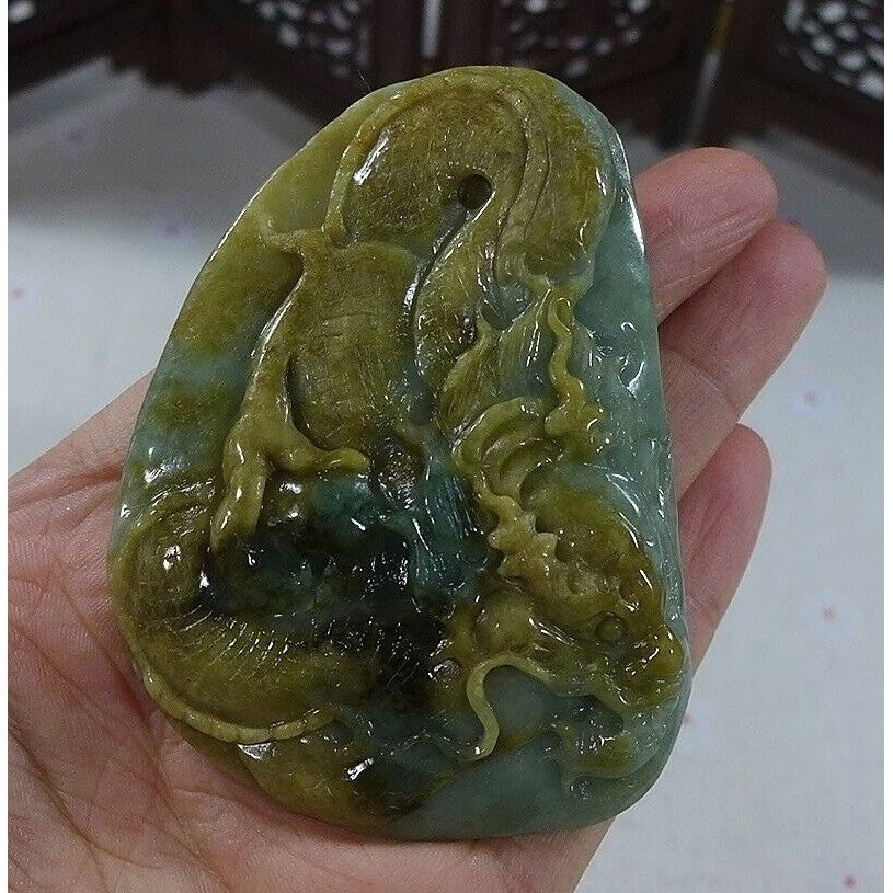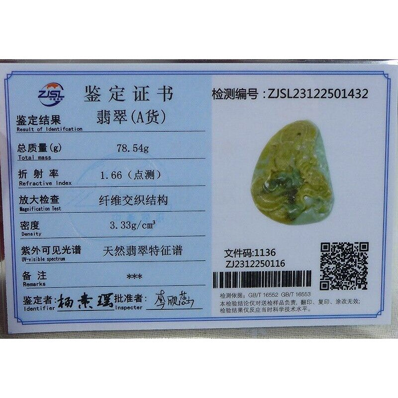 Certified Natural Type A Yellow Jadeite Jade Big Dragon Pendant Necklace