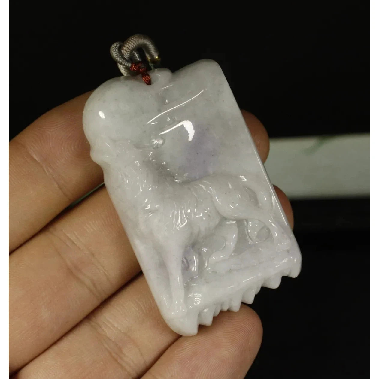 Certified Smoke Gray 100% Natural A Jadeite Jade Pendant Wolf