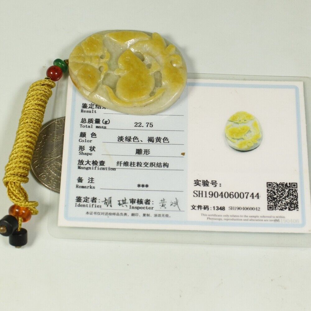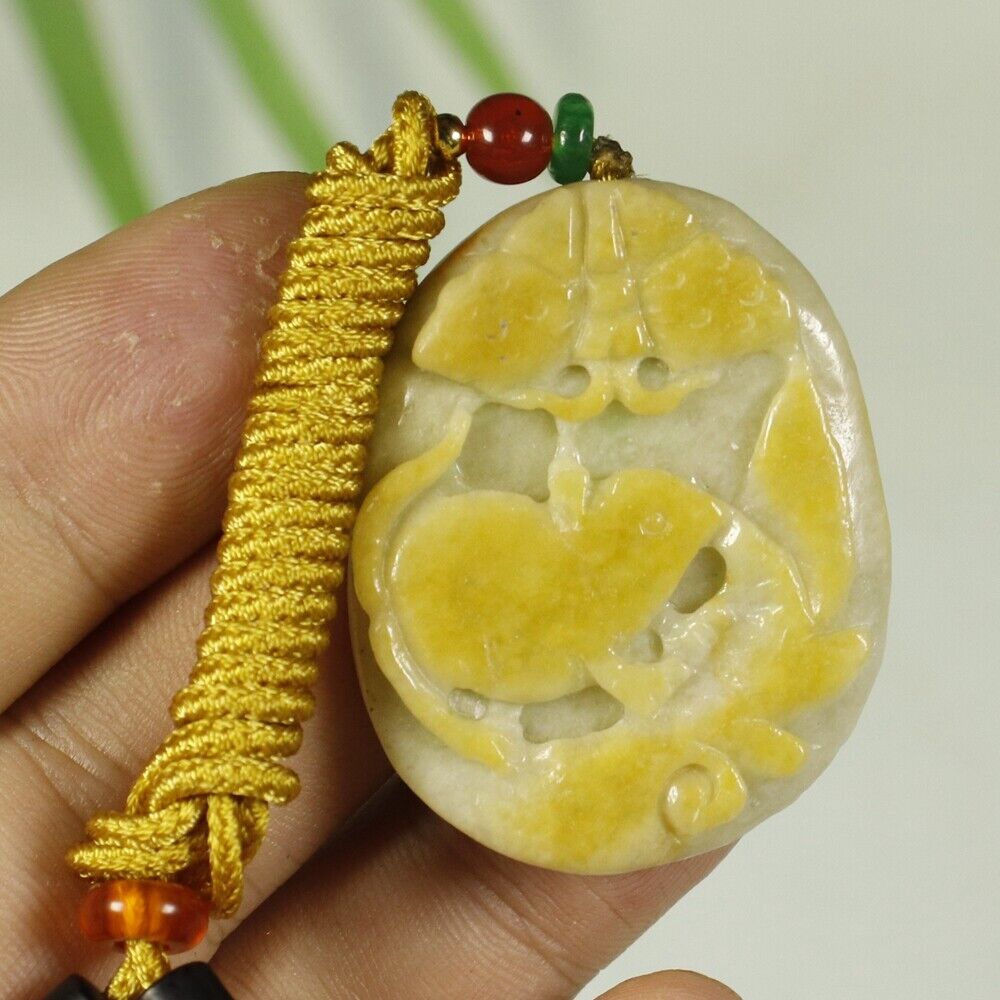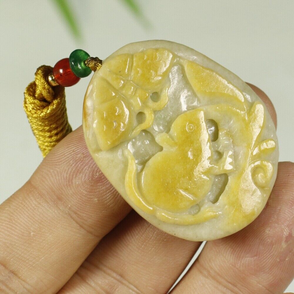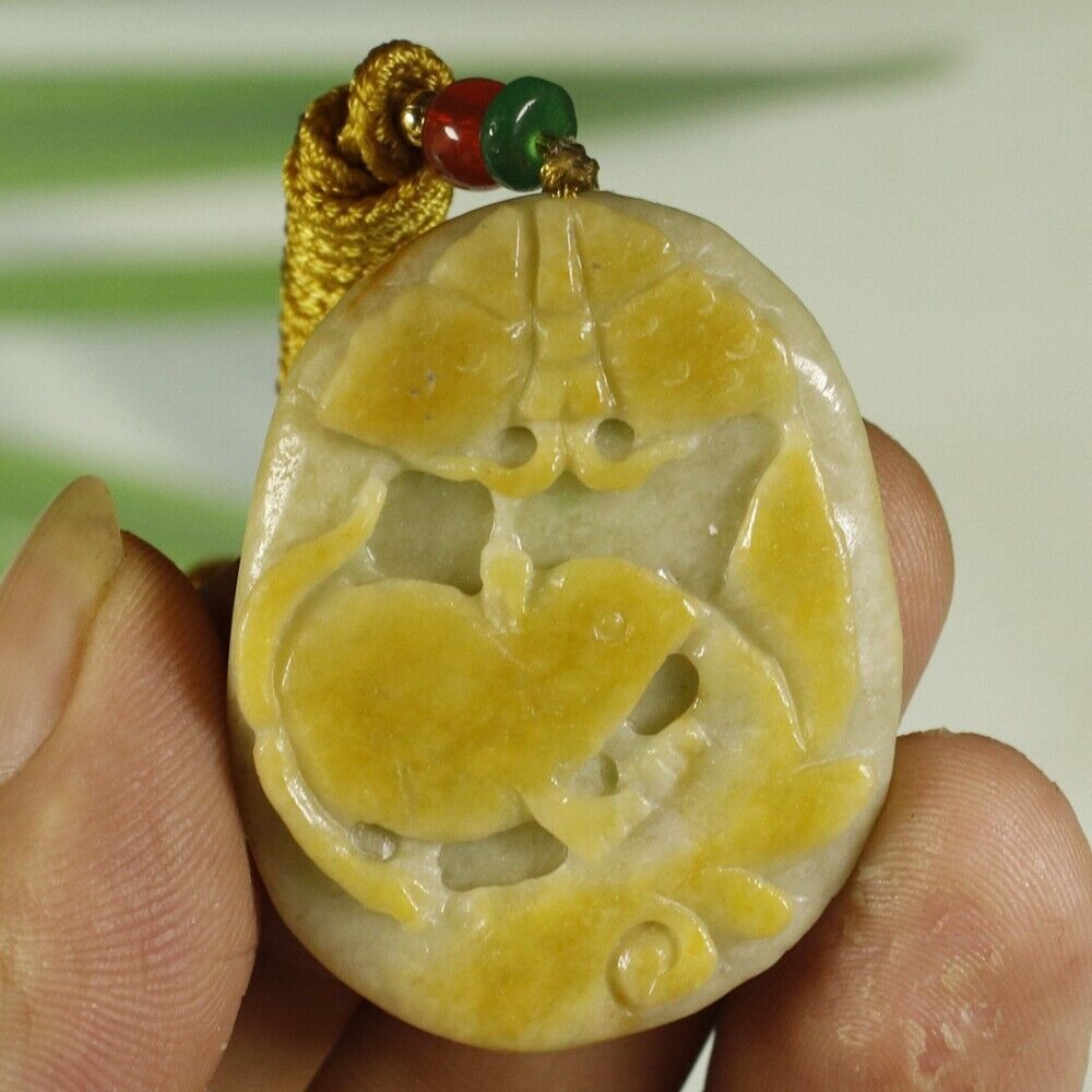 Certified Yellow 100% Natural A Jadeite Jade Pendant Mouse Butterfly