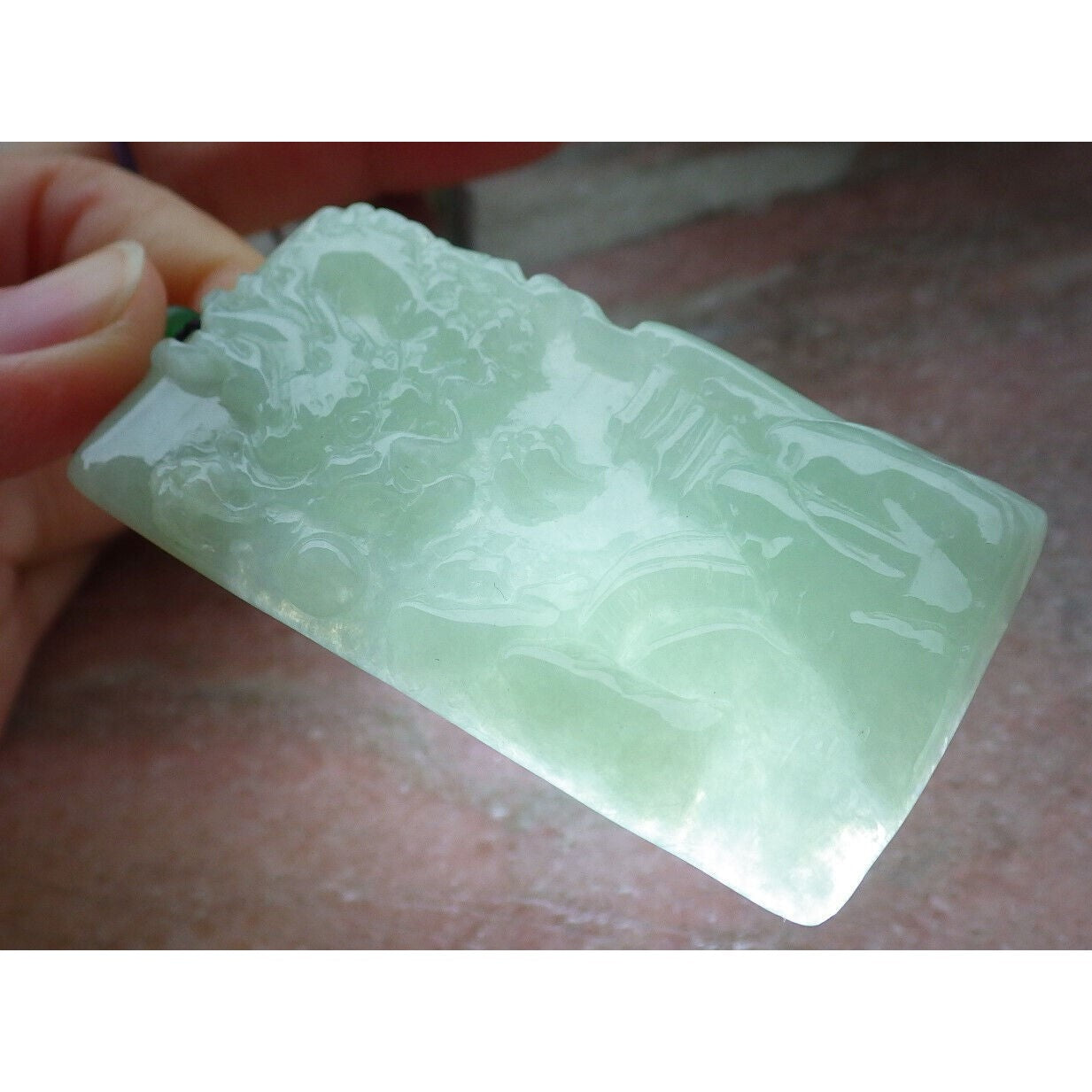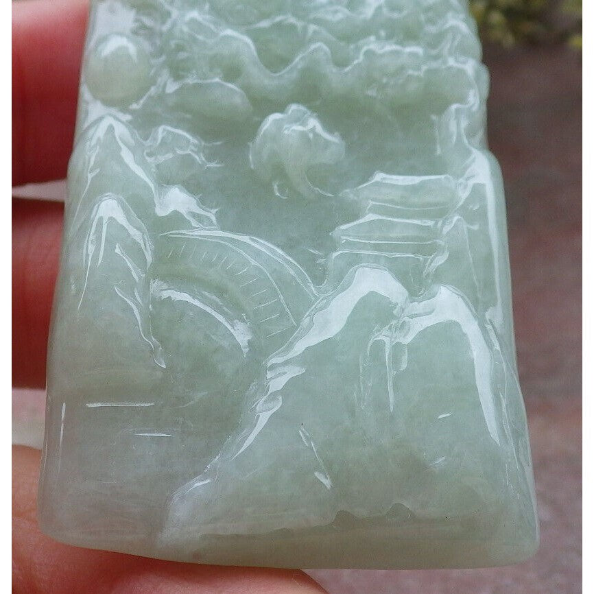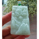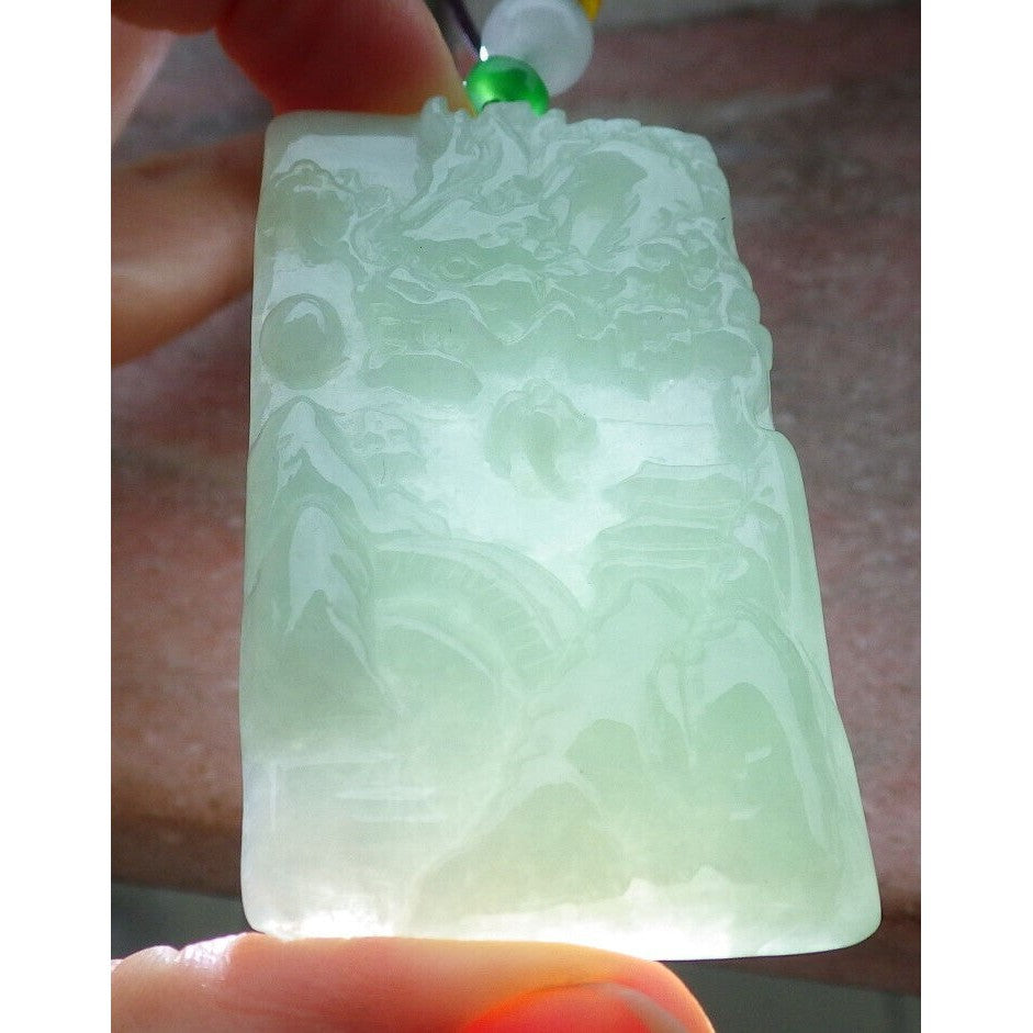Certified A Jade Jadeite Pendant Heavenly Landscape Painting with Dragon Chasing the Flaming Pearl in the Sky