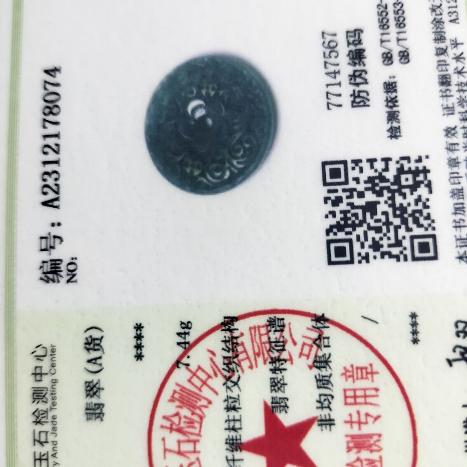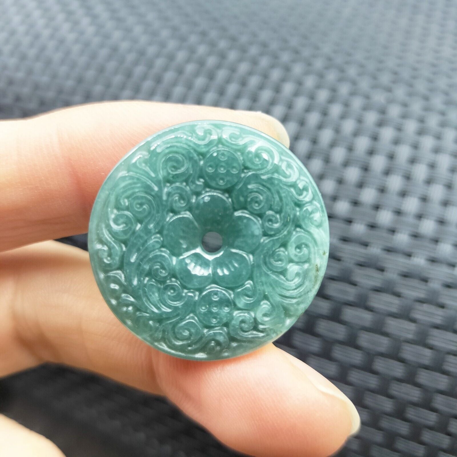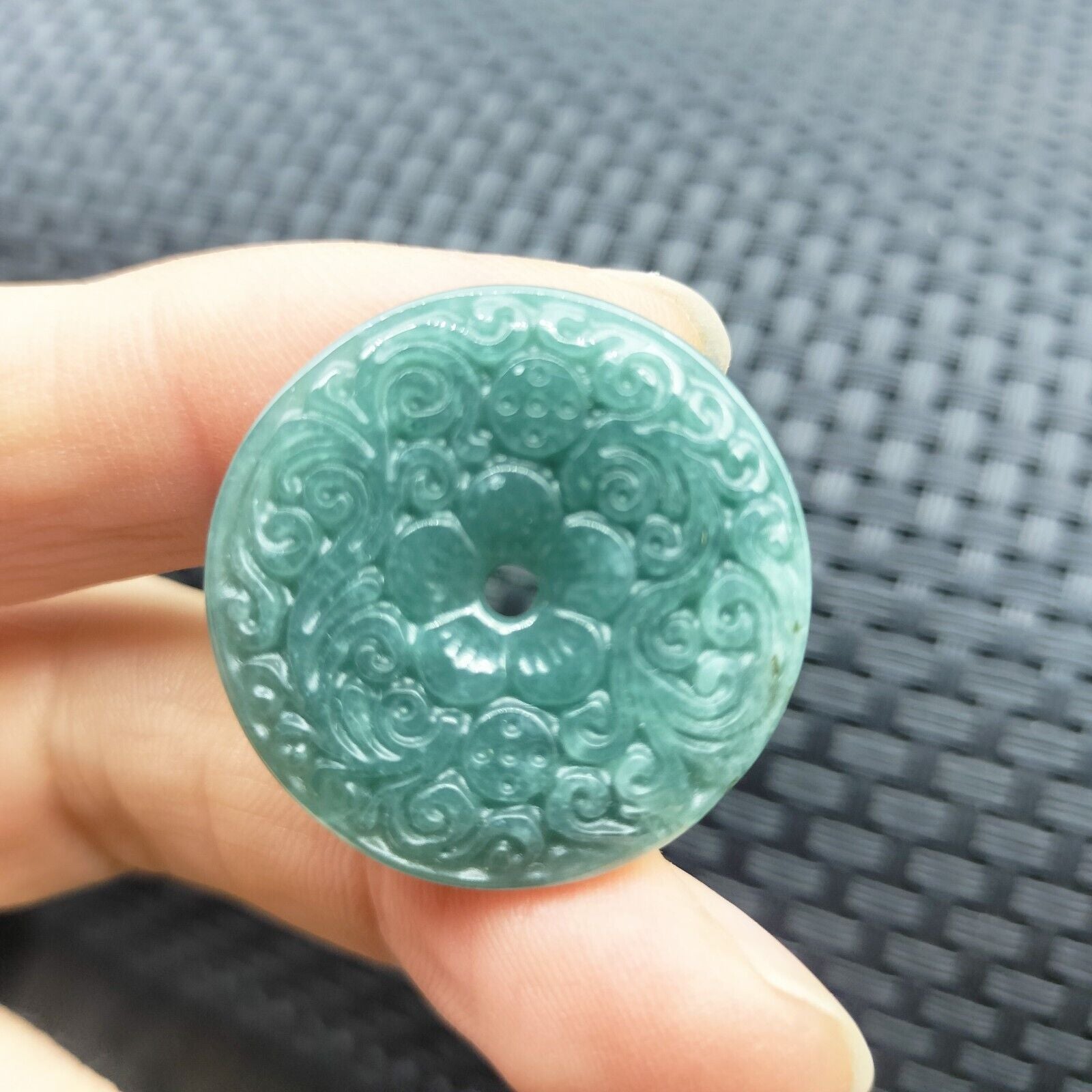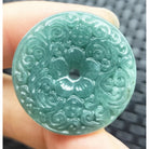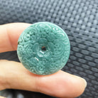 Certified Blue Green Natural A Jadeite Carved Moire Safety Circle Donut Pendant