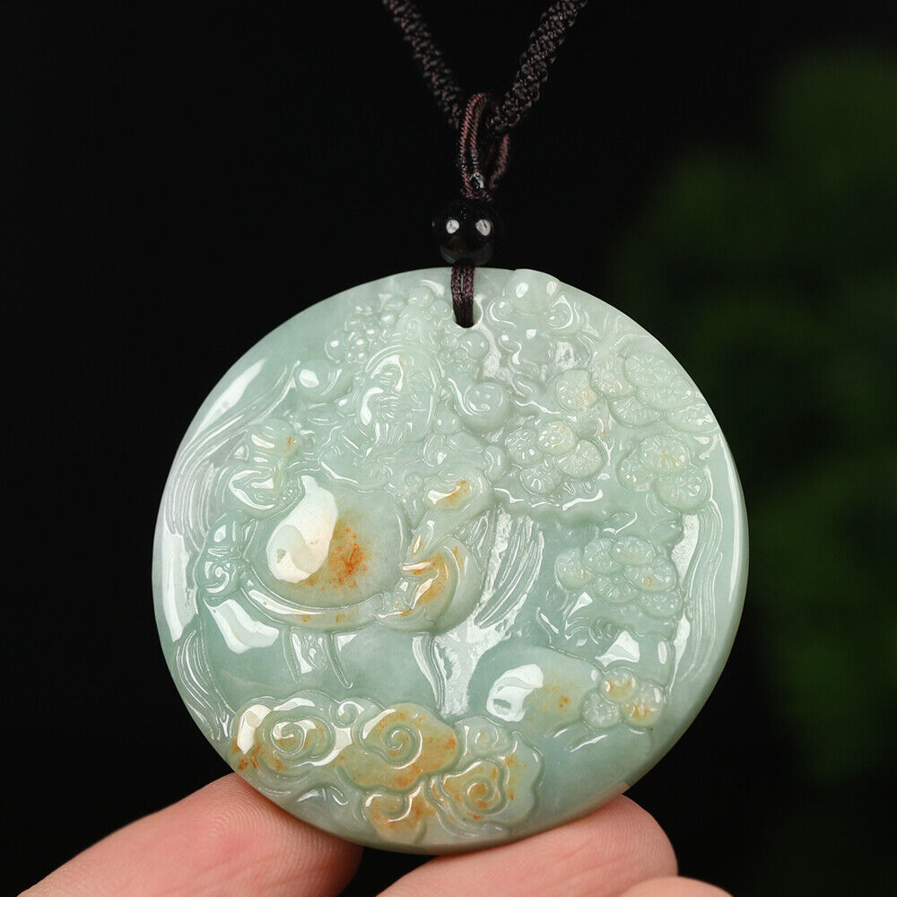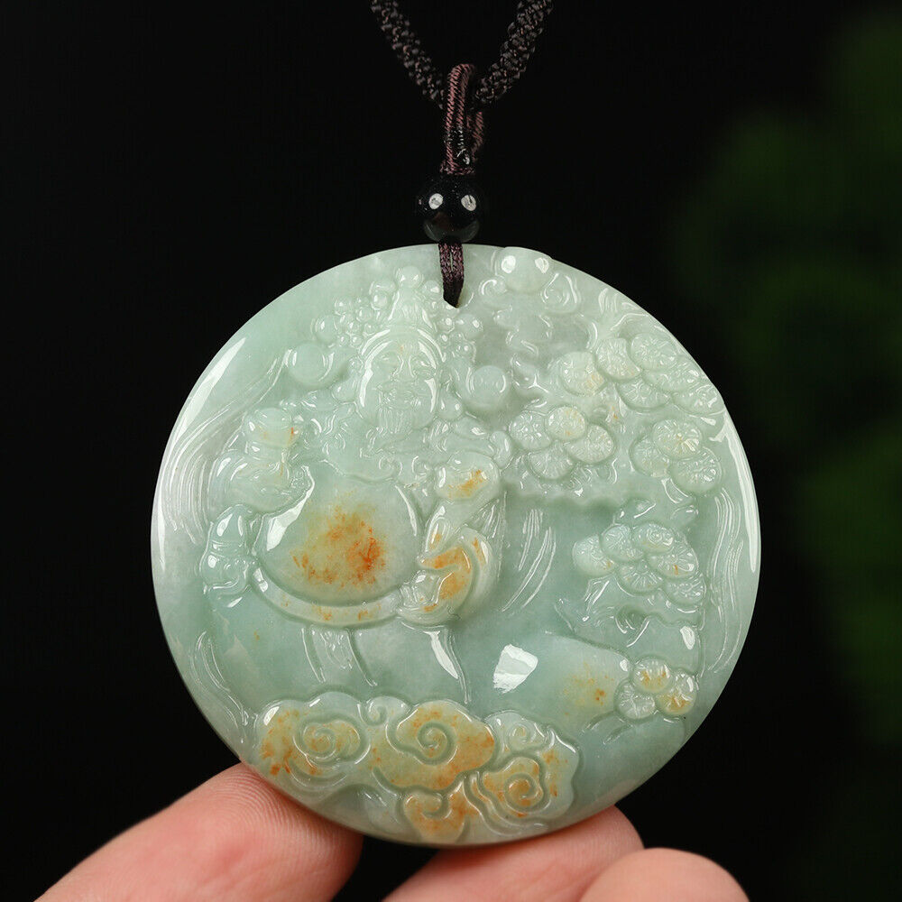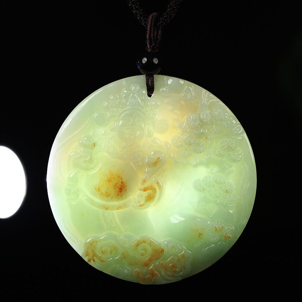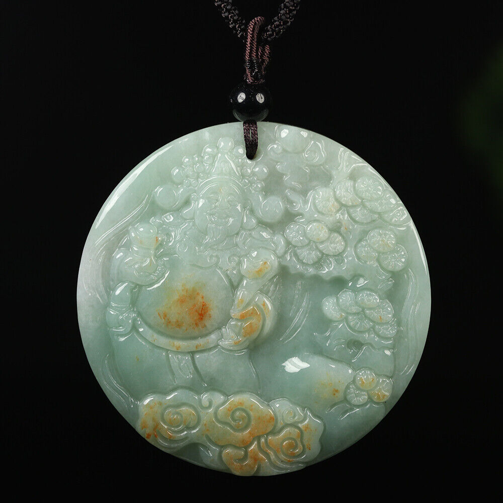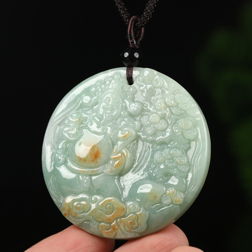 Certified Grade A Brown Green Natural Jadeite Jade Pendant Ruyi Money God Necklace