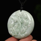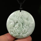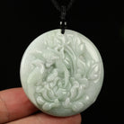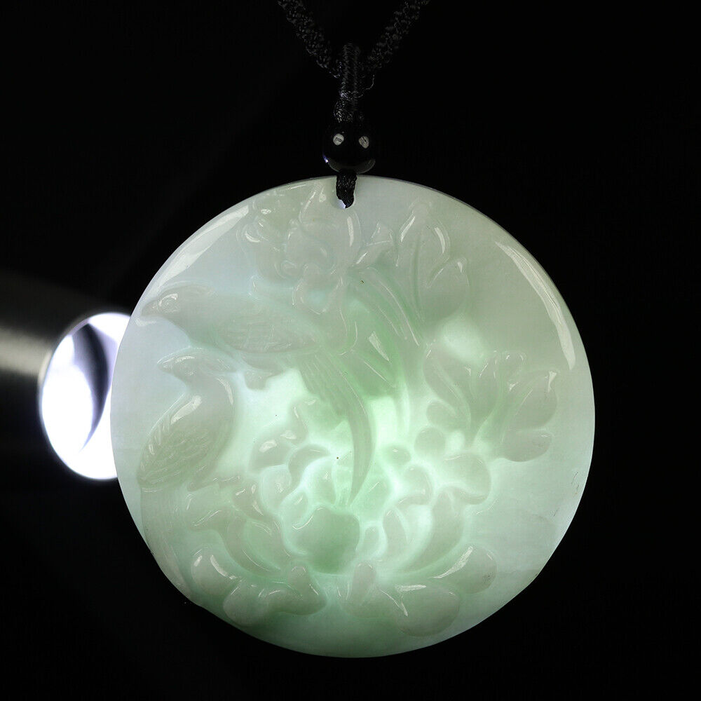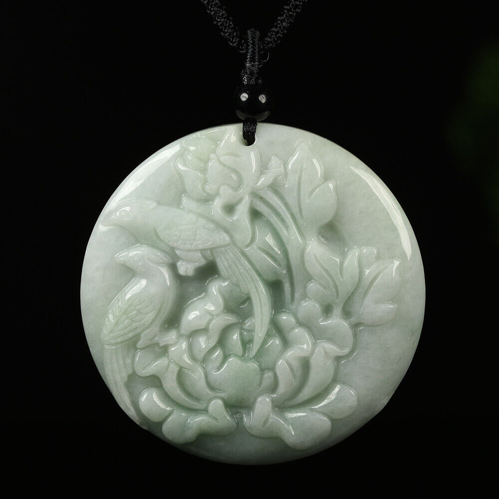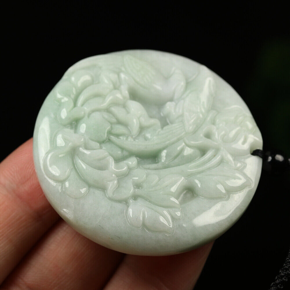 Certified Grade A Green Natural Jadeite Jade Pendant Handmade Birds Flower Necklace