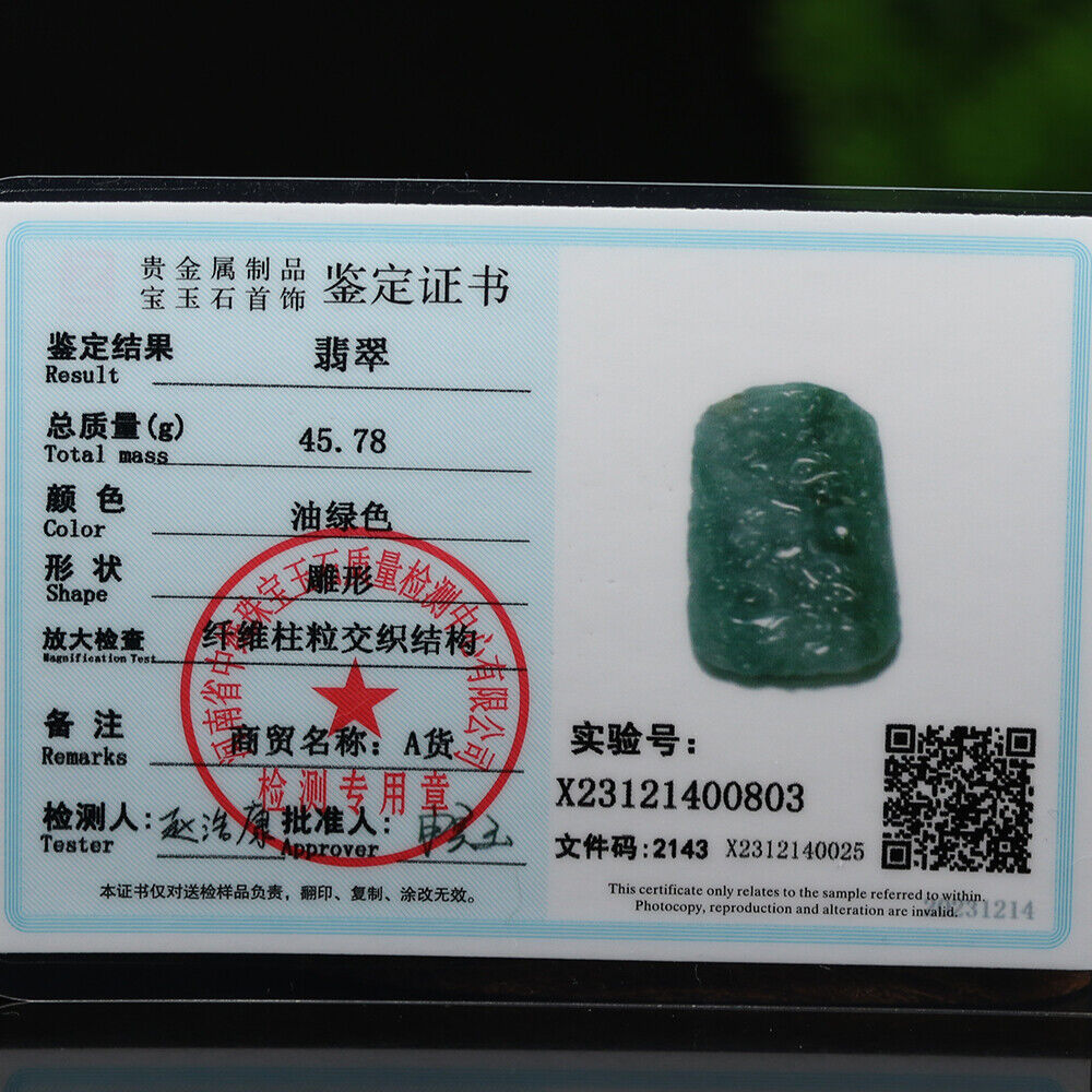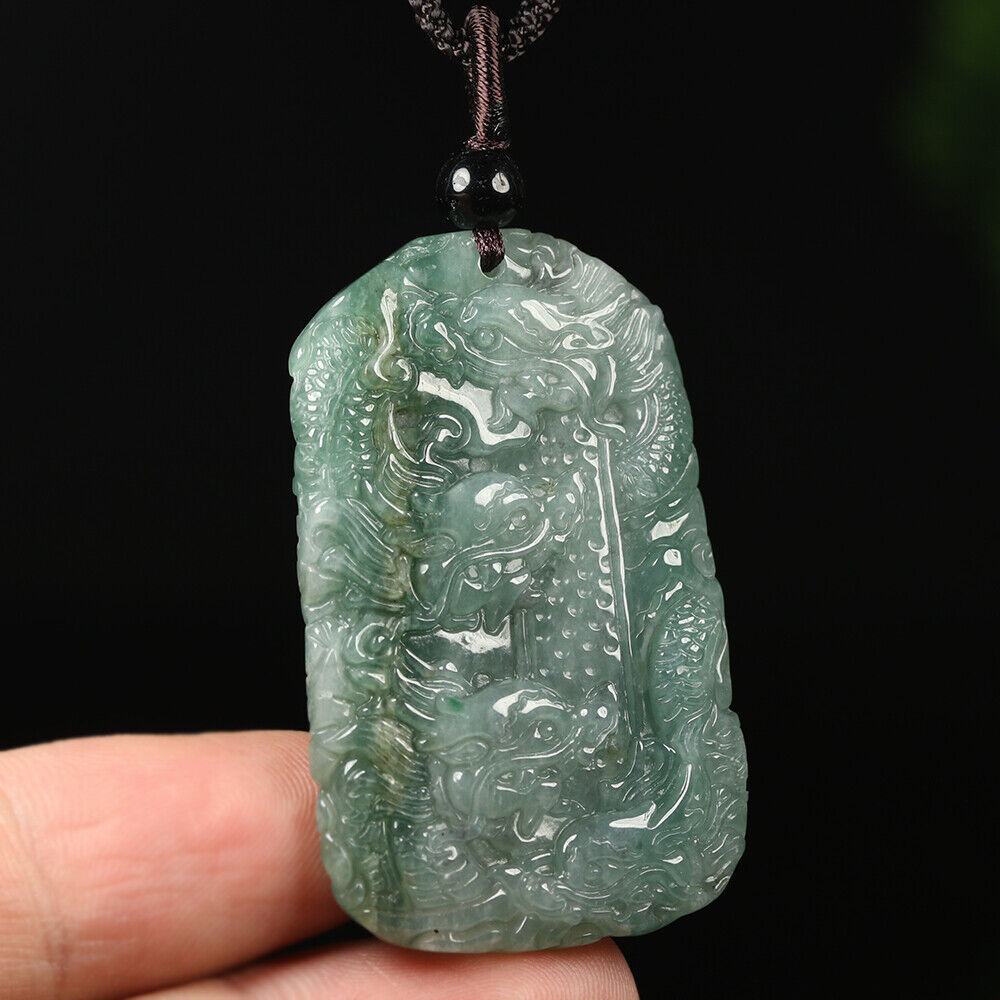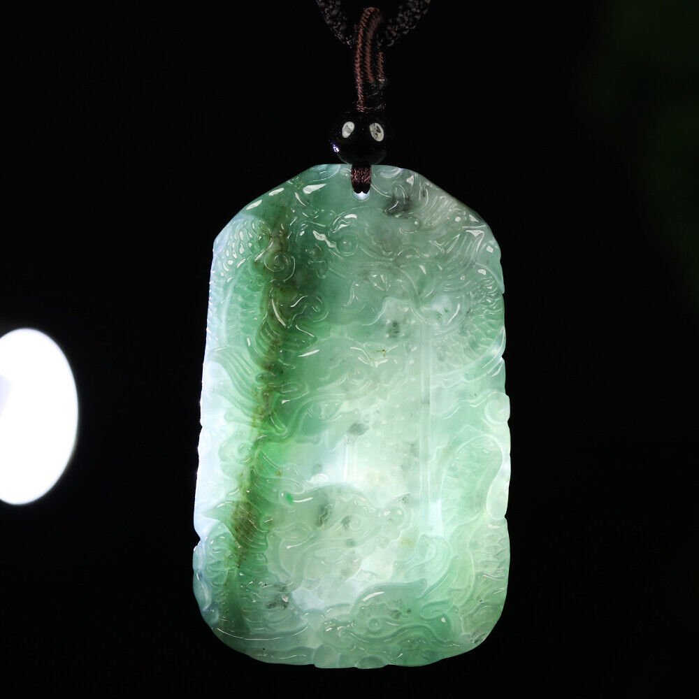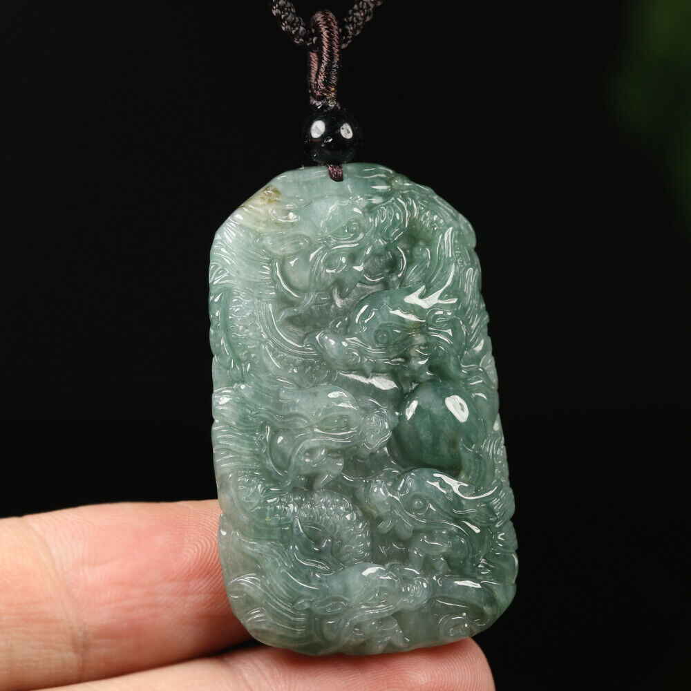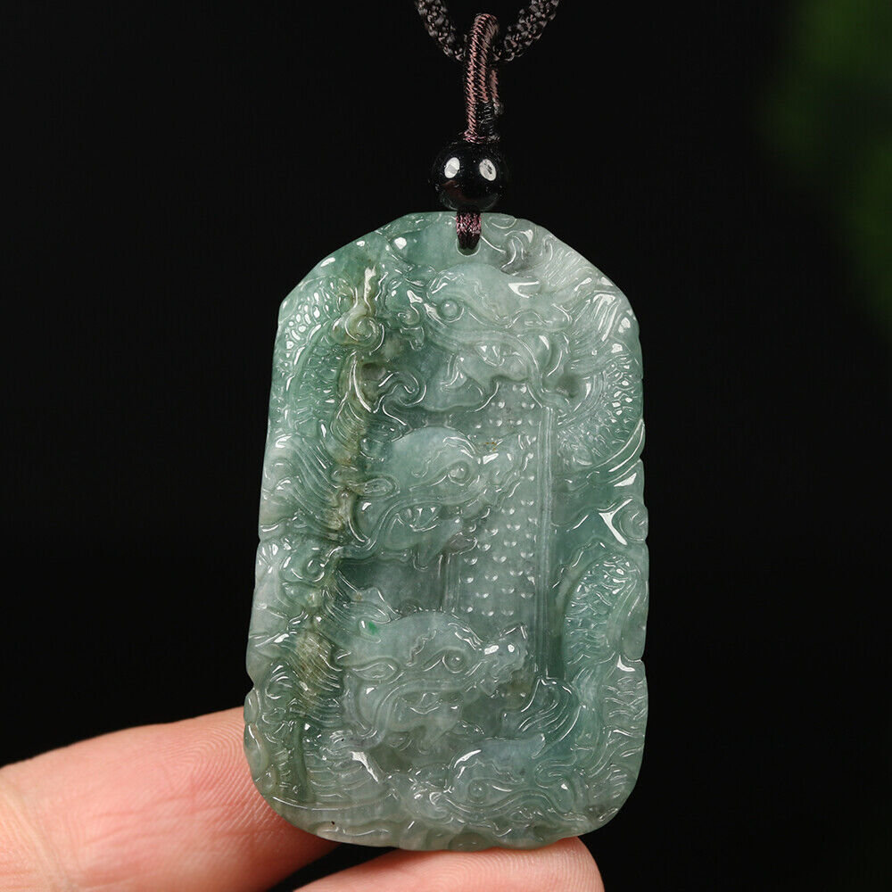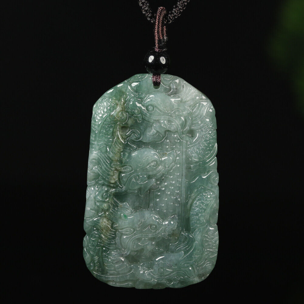 Certified Grade A Oil Green Natural Jadeite Jade Pendant Nine-Dragons Necklace
