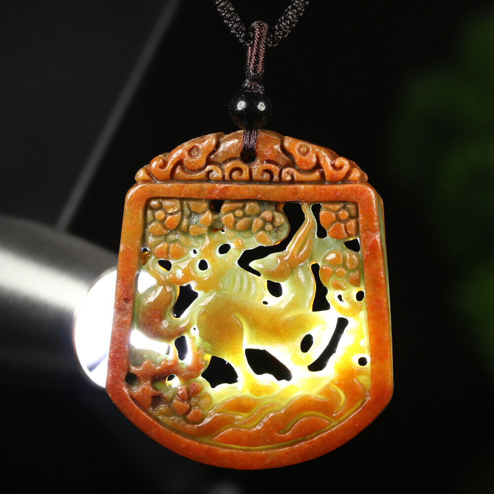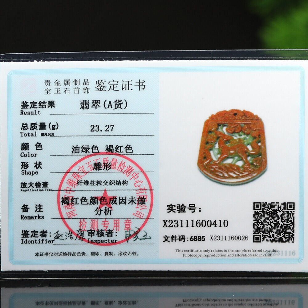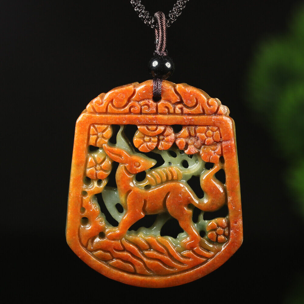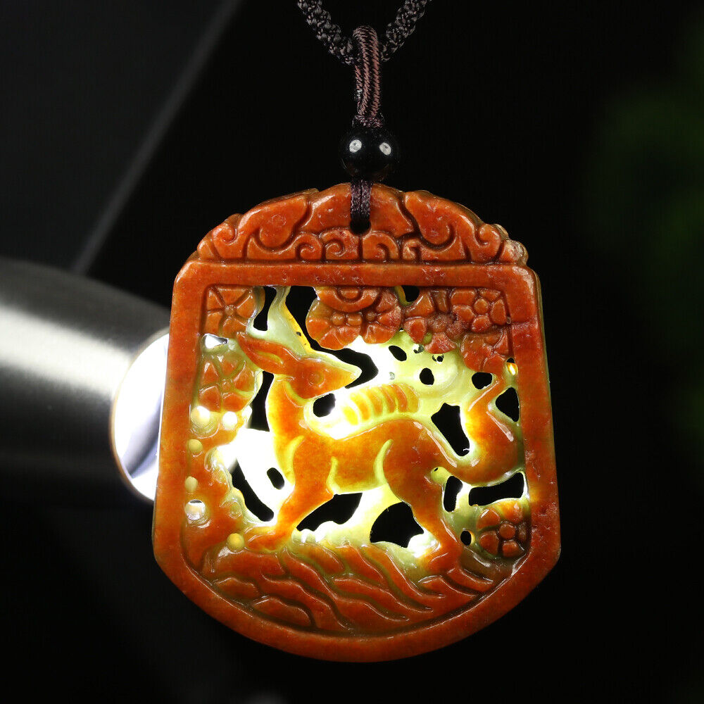 Certified Grade A Red Green Natural Jade Jadeite Pendant Fox Flower Necklace