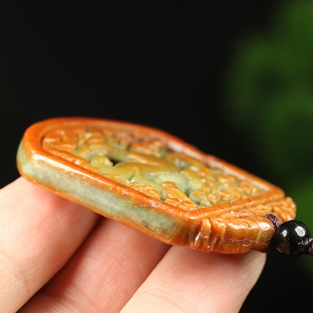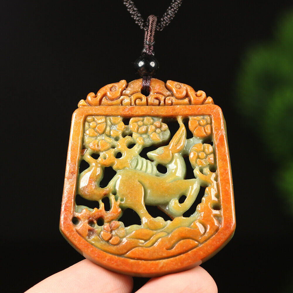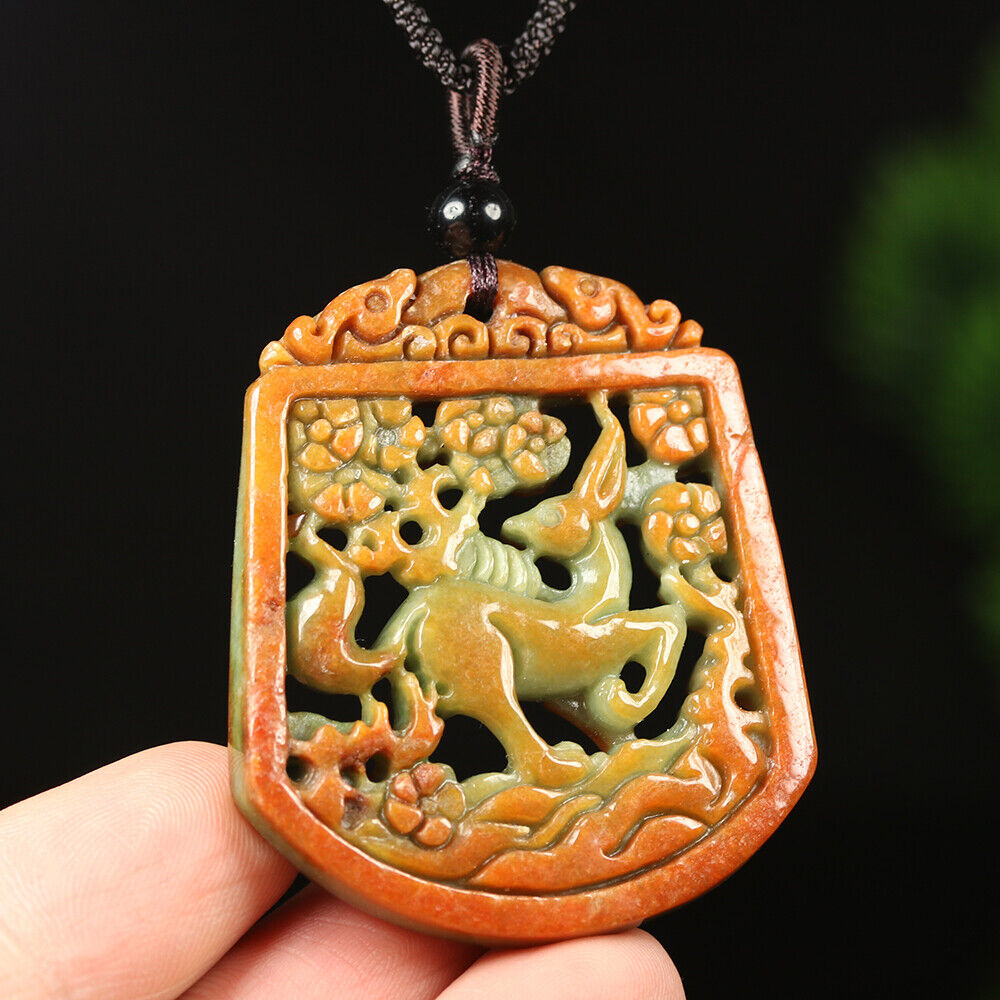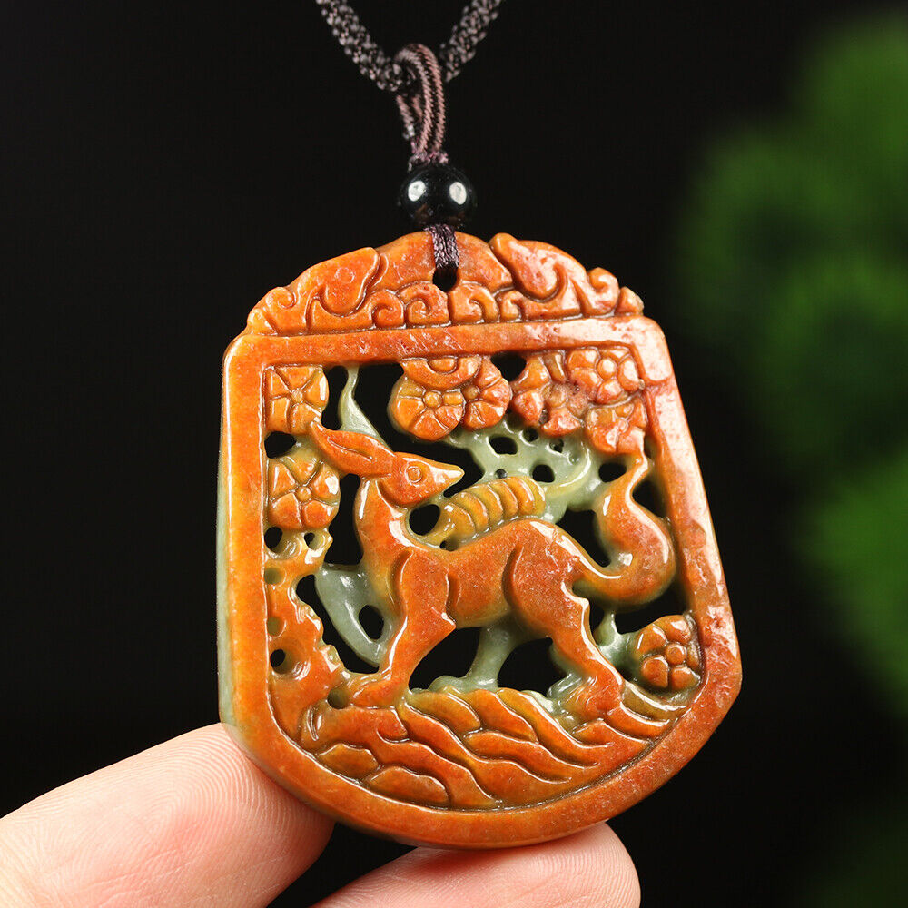 Certified Grade A Red Green Natural Jade Jadeite Pendant Fox Flower Necklace