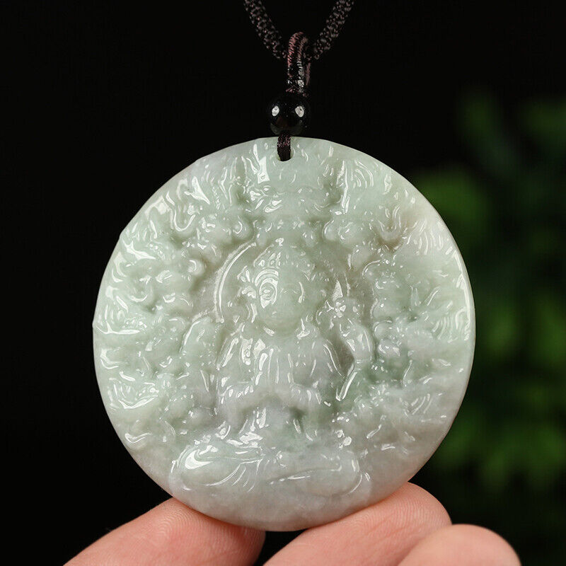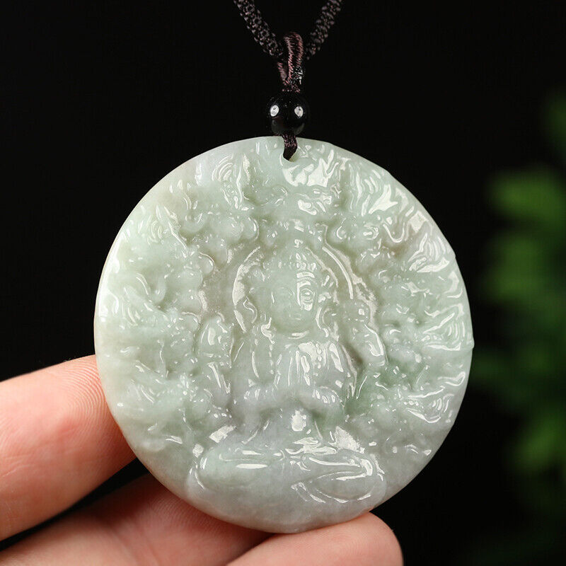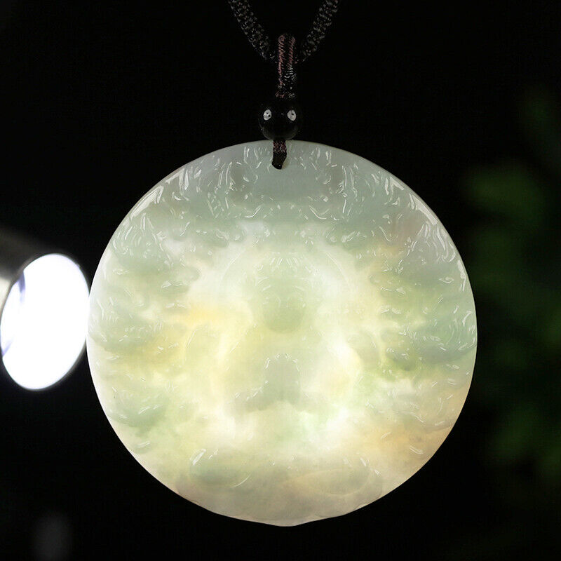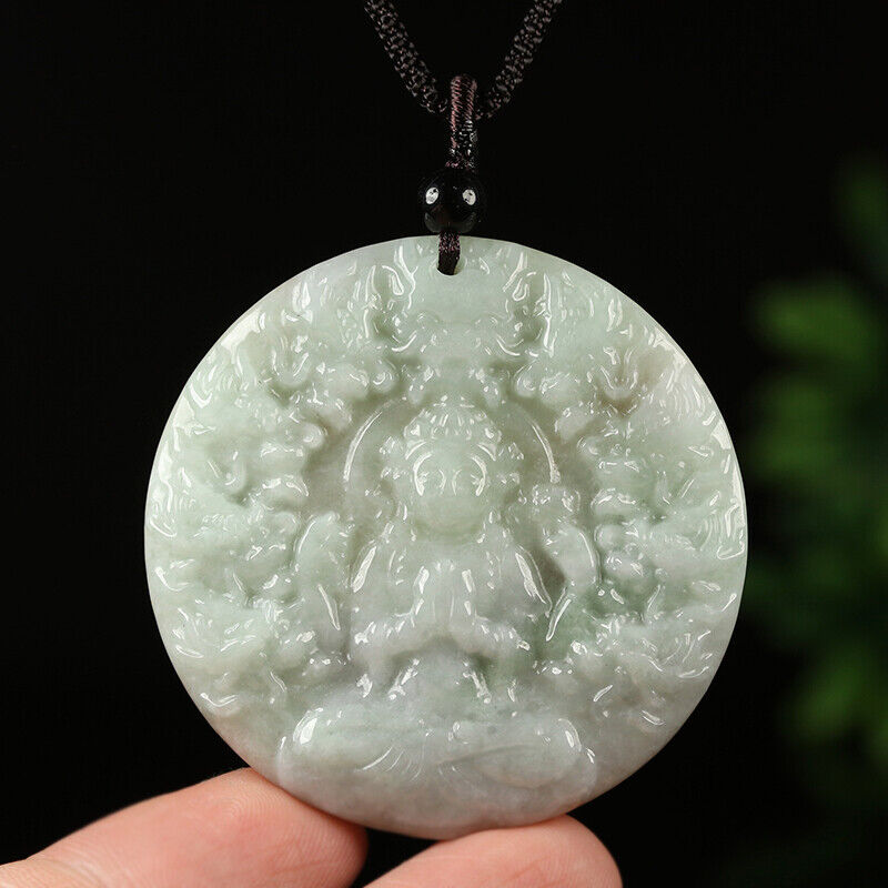 Certified Grade A Red Green Natural Jade Jadeite Pendant Kwan-Yin Dragon Necklace