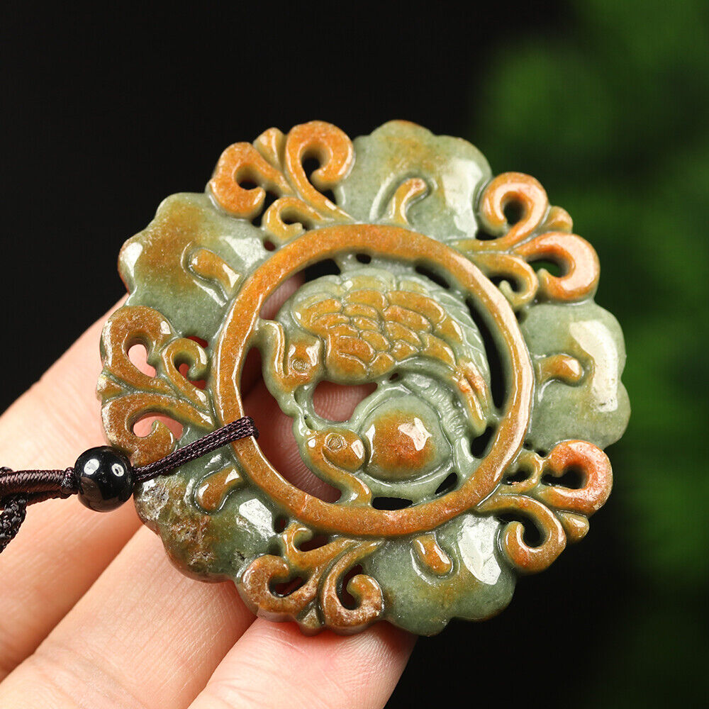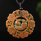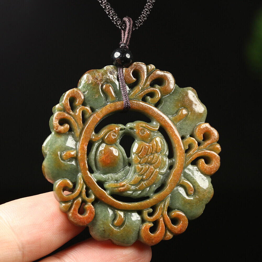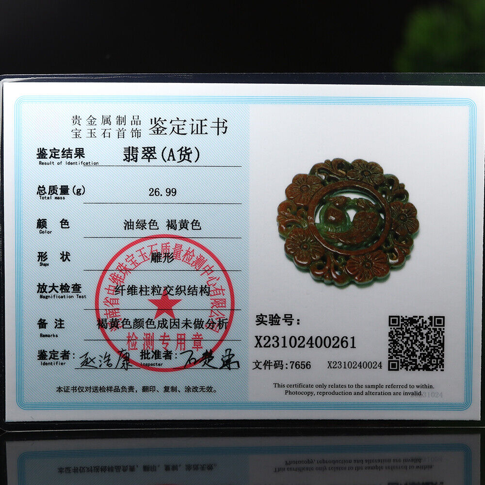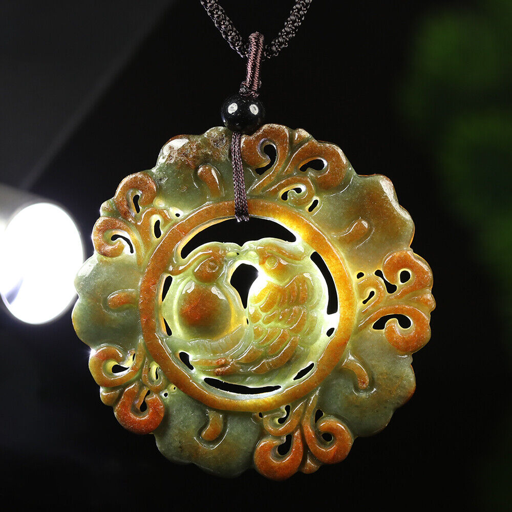 Certified Grade A Red Green Natural Jadeite Jade Pendant Birds Flower Necklace