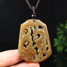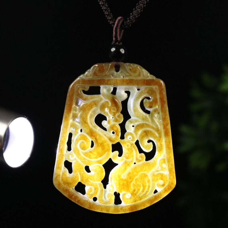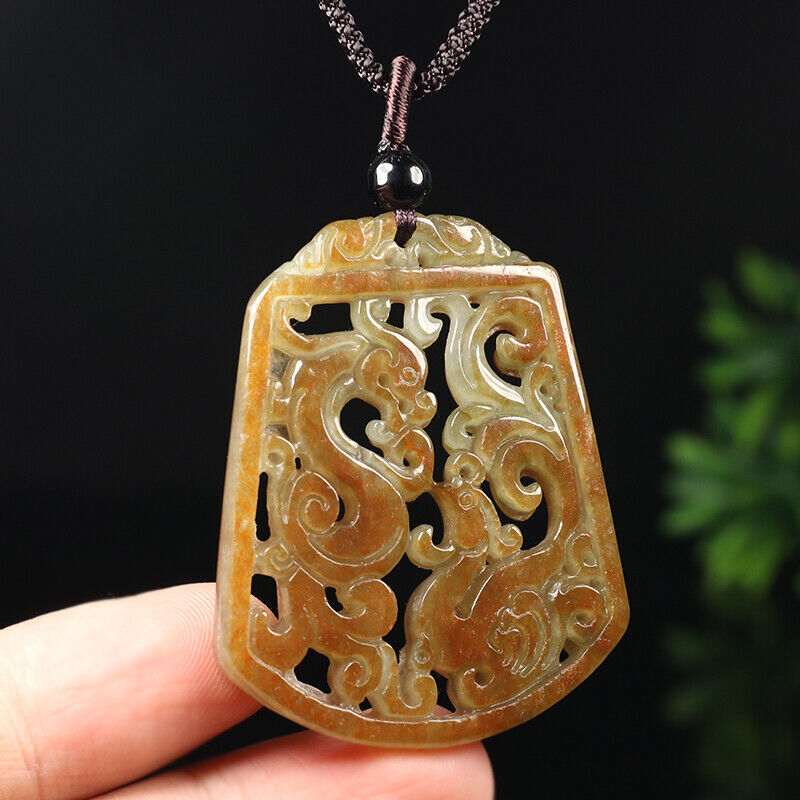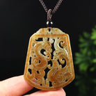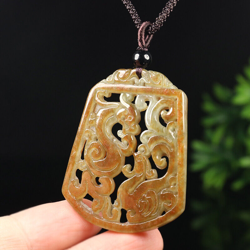 Certified Grade A Red Green Natural Jadeite Jade Pendant Dragon Phoenix Necklace