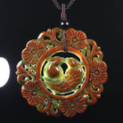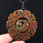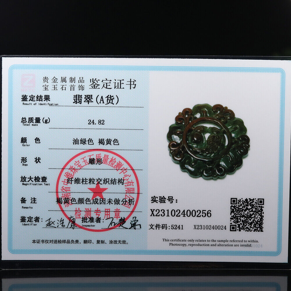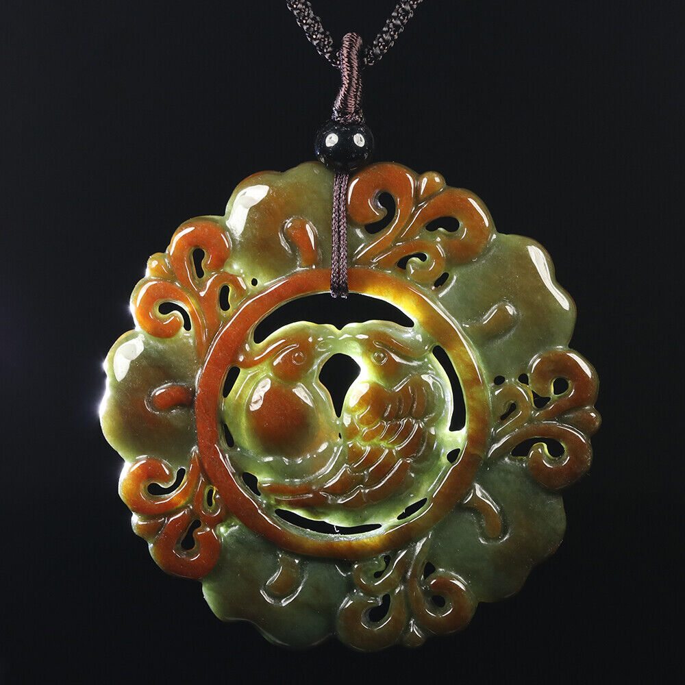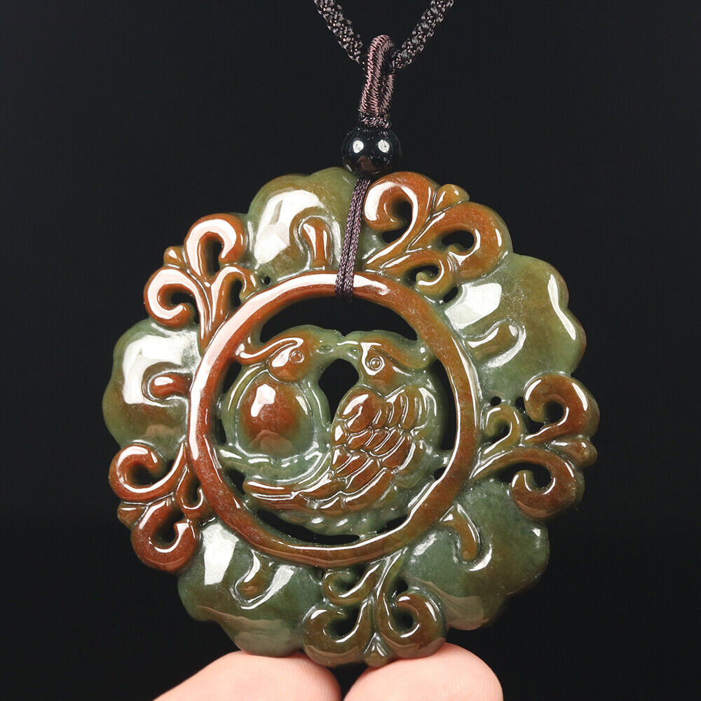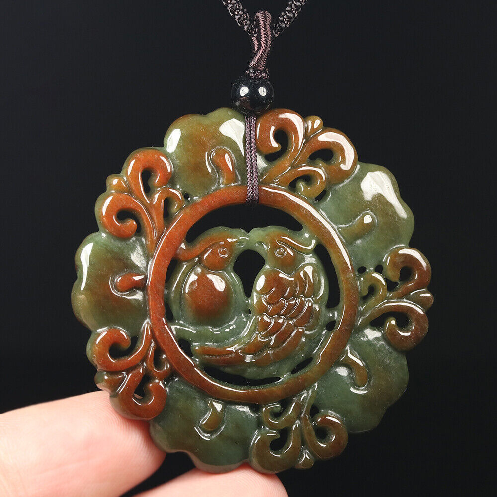 Certified Grade A Red Green Natural Jadeite Jade Pendant Flower Birds