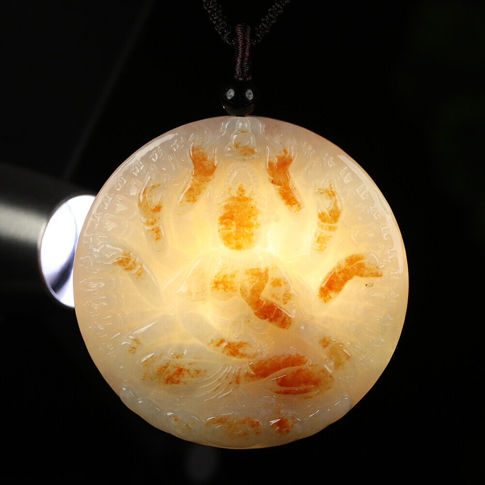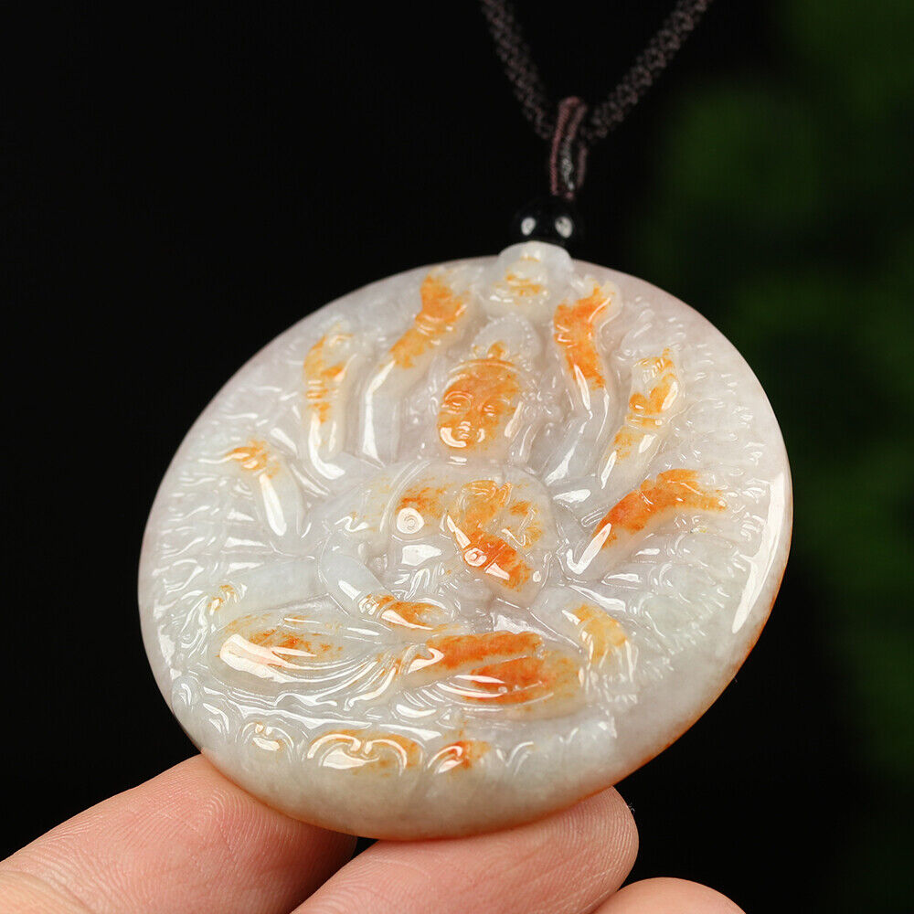Certified Grade A Red Lavender Green Natural Jadeite Jade Pendant Kwan-Yin 21200