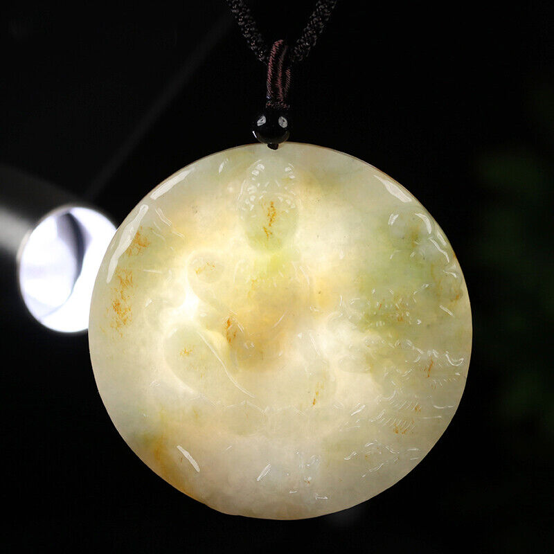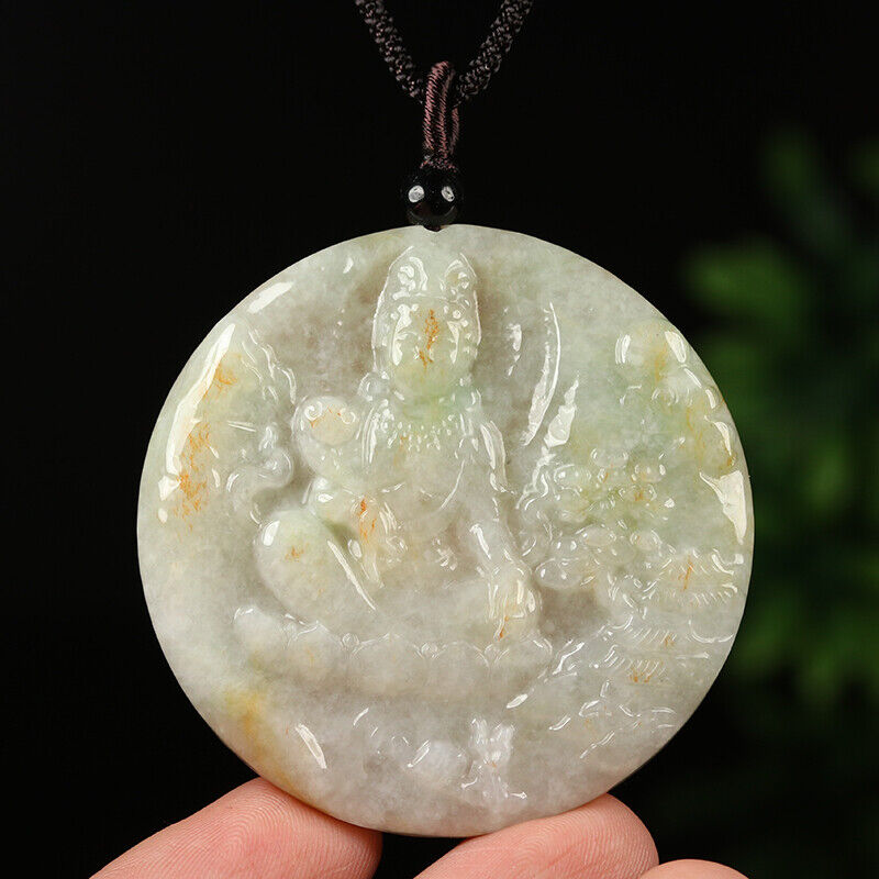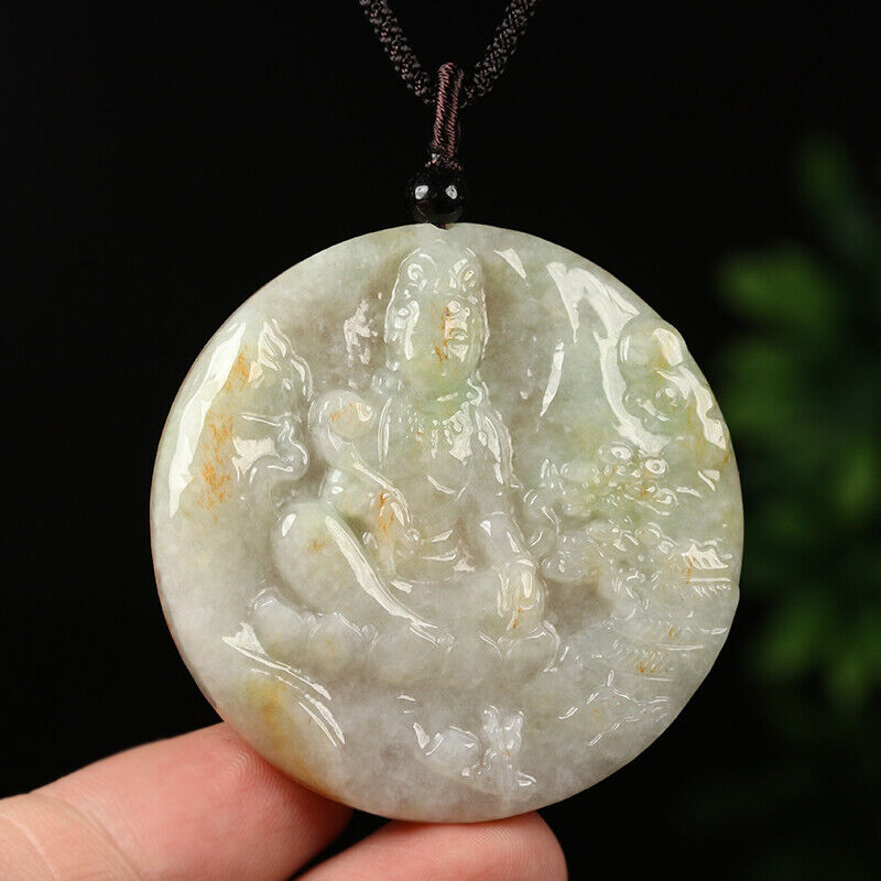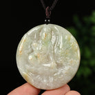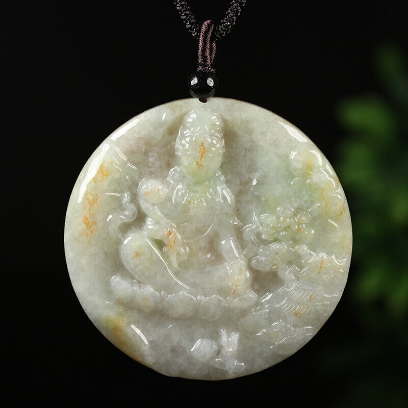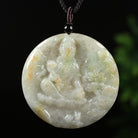 Certified Grade A Red Green Natural Jadeite Jade Pendant Kwan-Yin Necklace