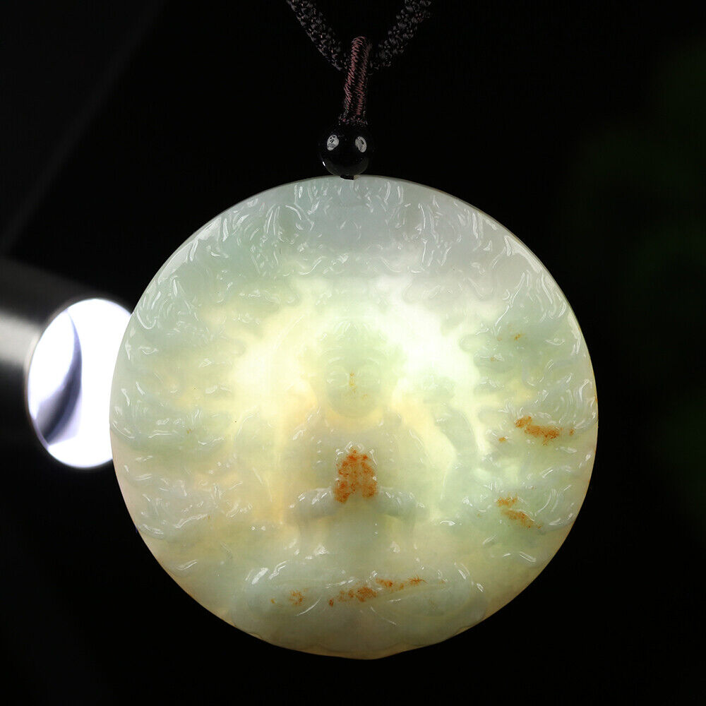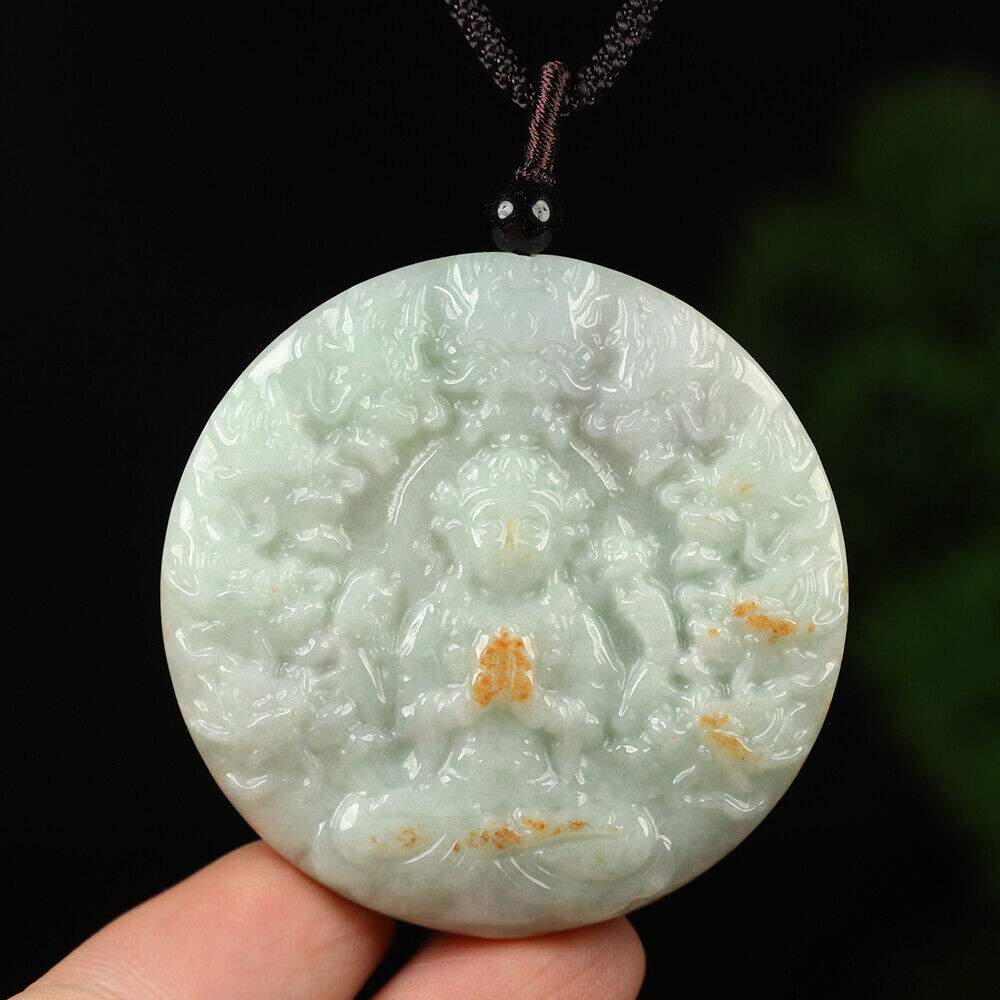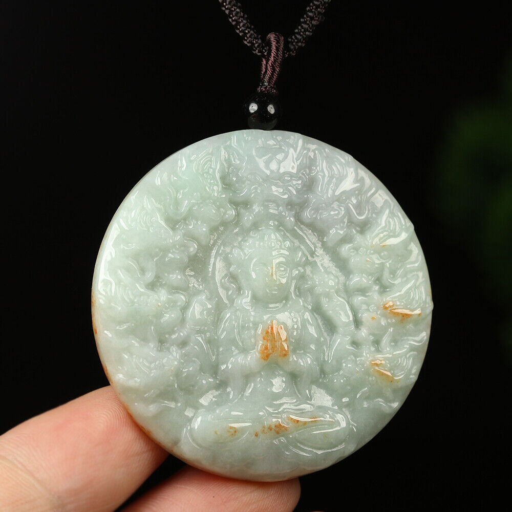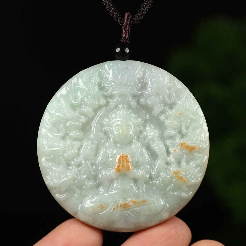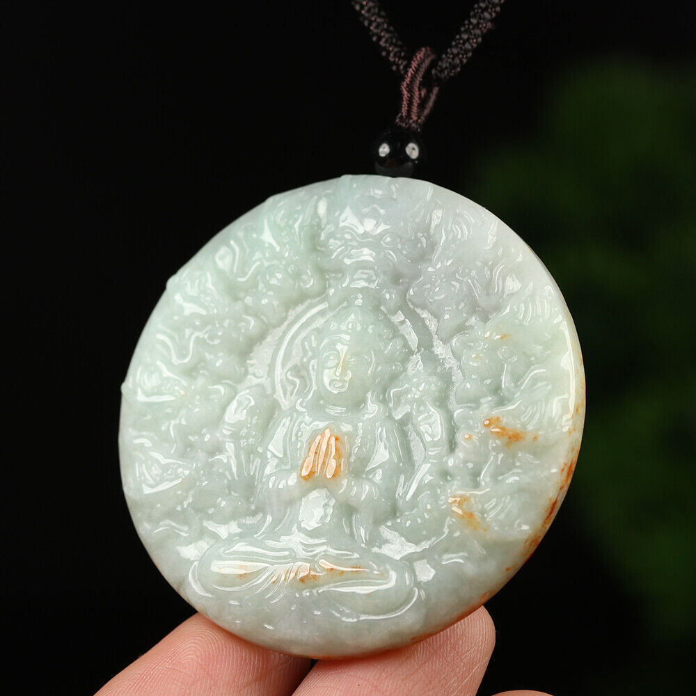 Certified Grade A Red Green Natural Jadeite Jade Pendant Kwan-Yin Dragon Necklace