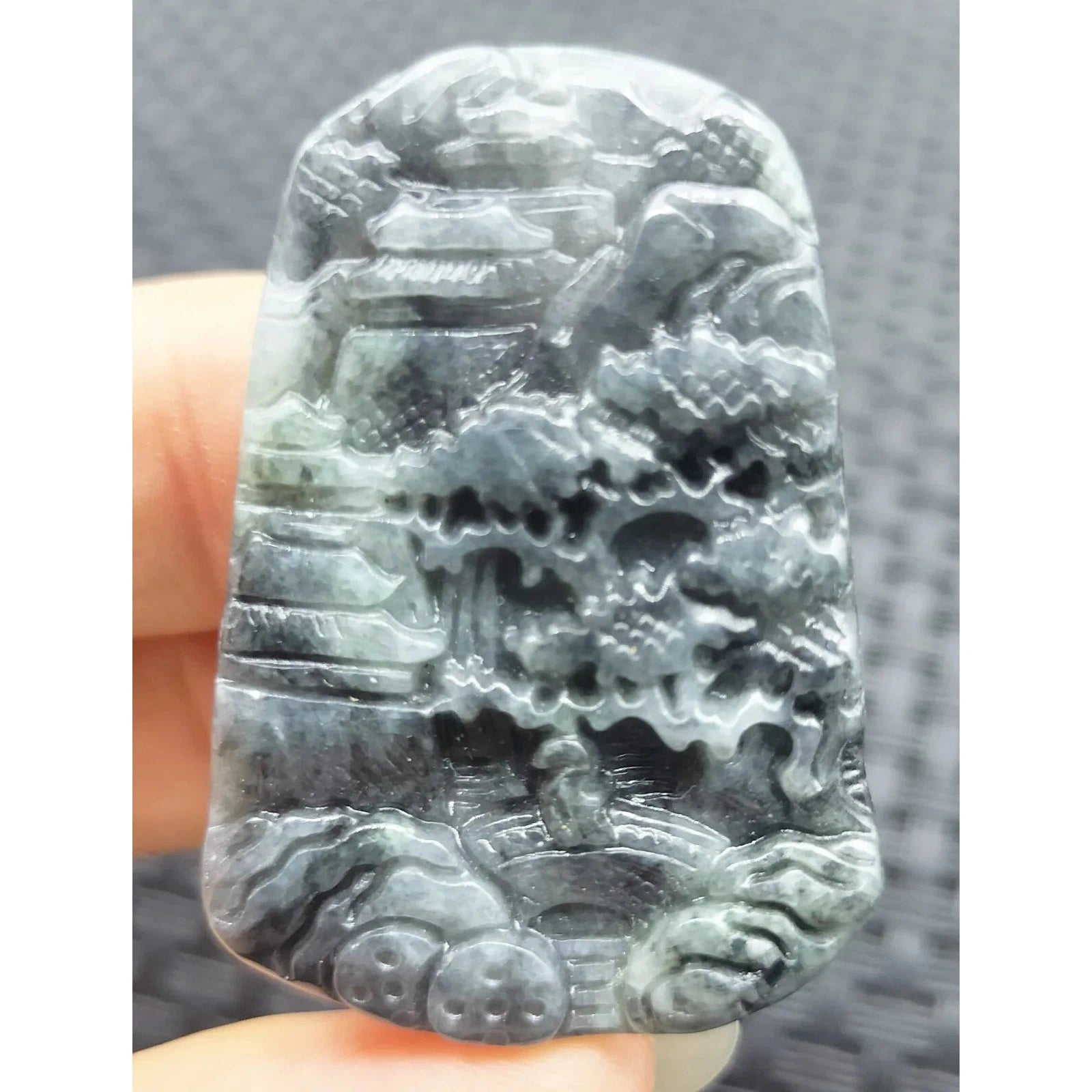 Certified Gray Black Natural Type A Jade Jadeite Pendant Landscape Painting Necklace