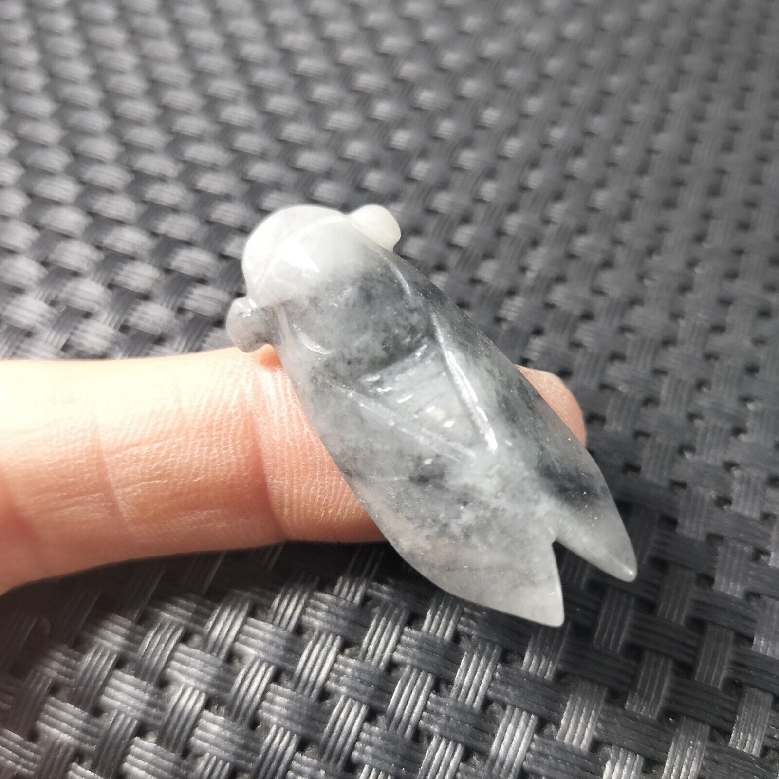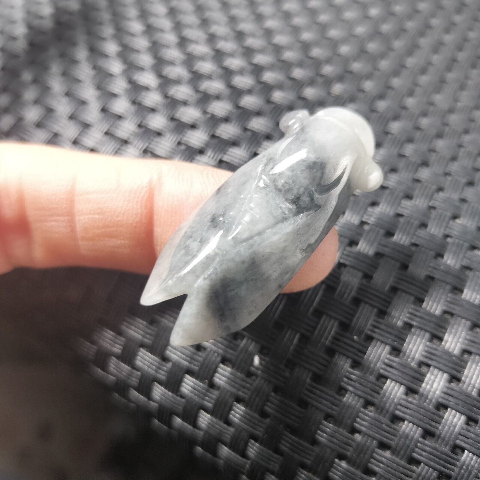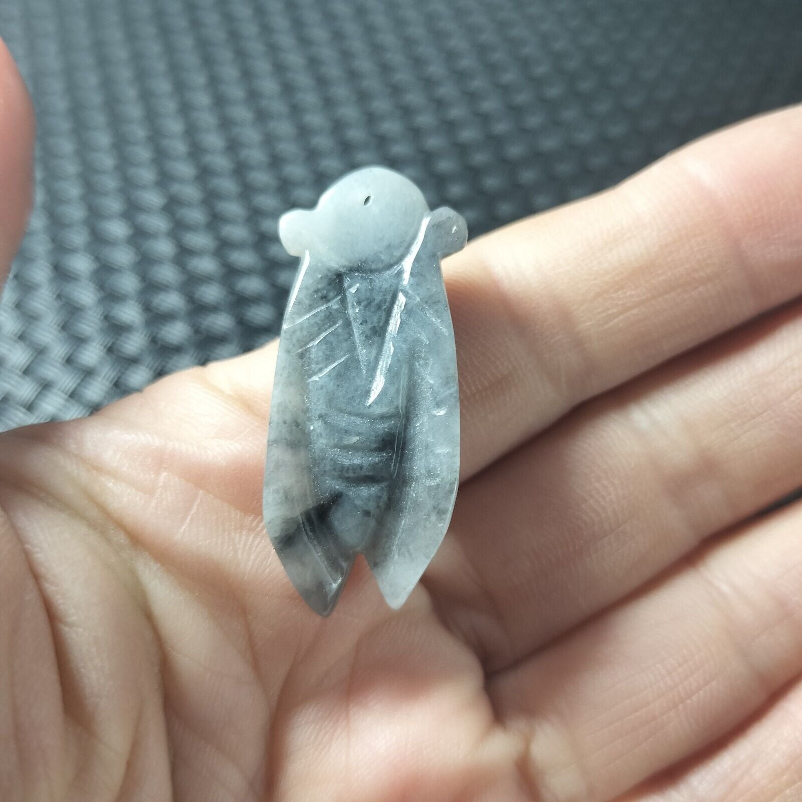 Certified Gray Lavender Natural Type A Jadeite Carved Cicada Coin Pendant