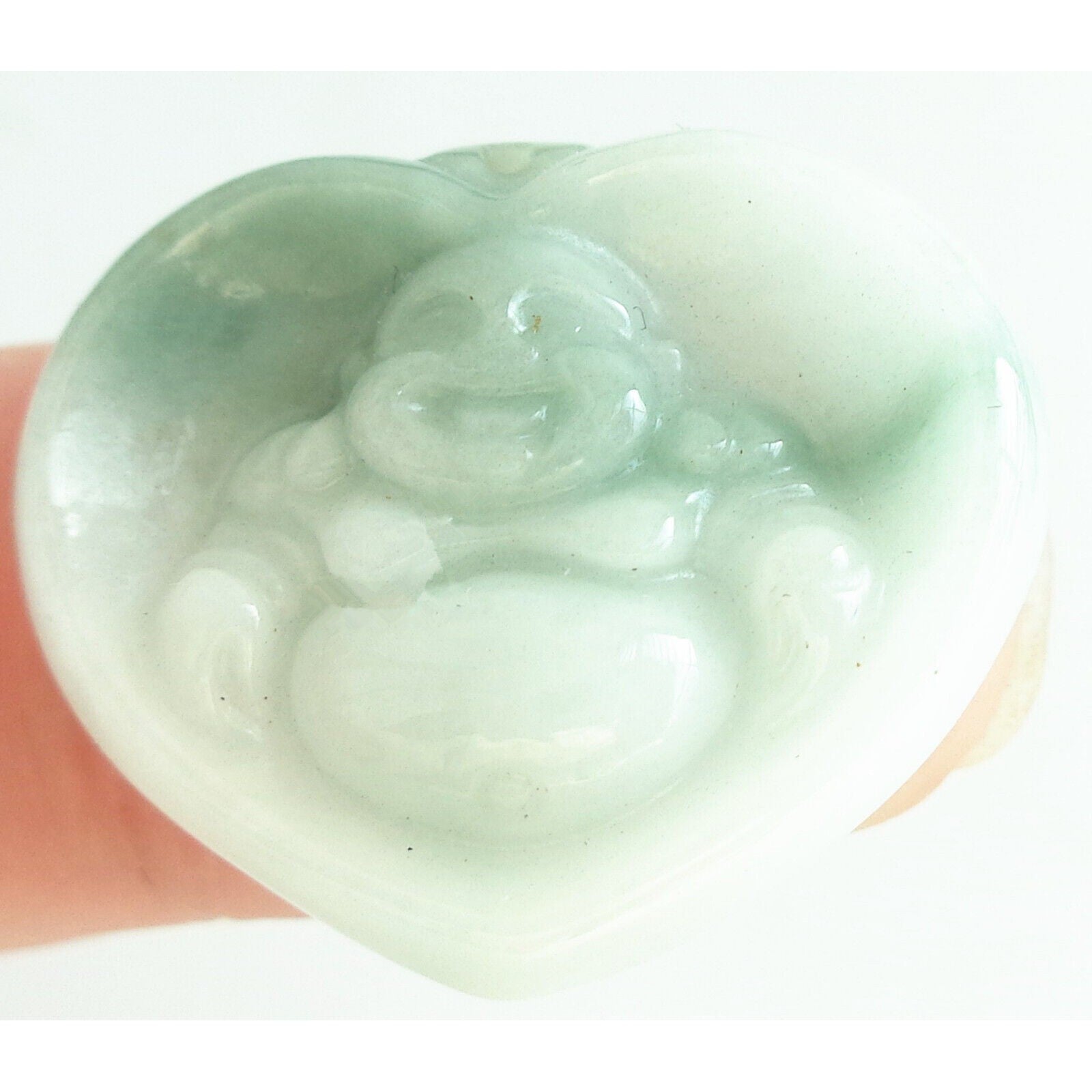 • Certified Green A Jade Jadeite Carved Happy Buddha God Pendant