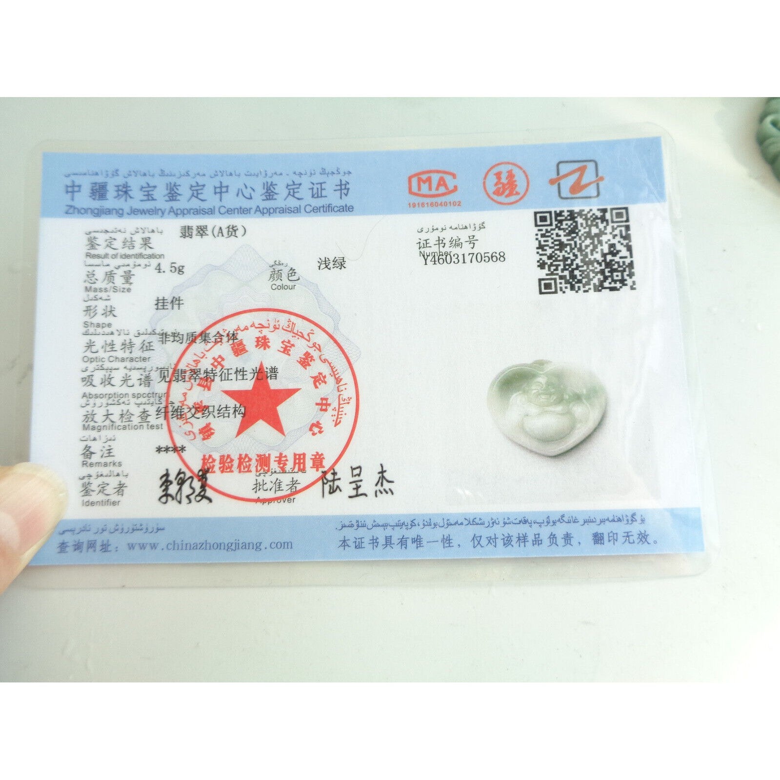 Certified Green A Jade Jadeite Carved Happy Buddha God Pendant