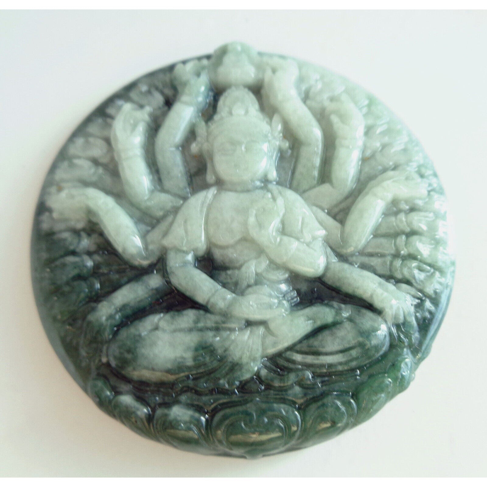 Certified Green A Jadeite Pendant Thousand-Hand Guanyin Kwan Yin