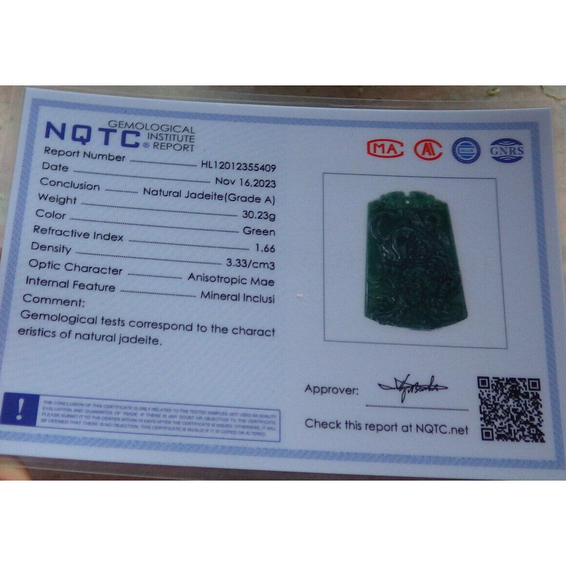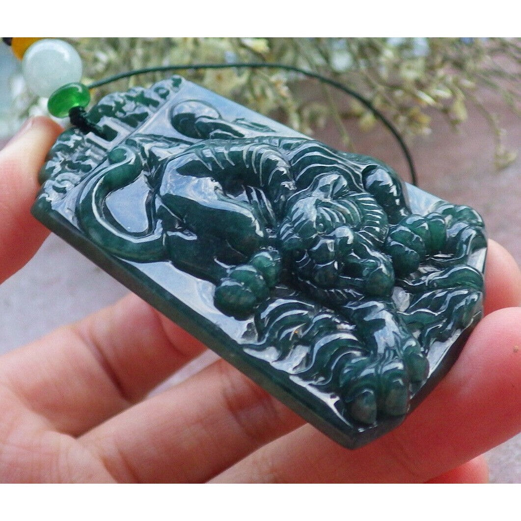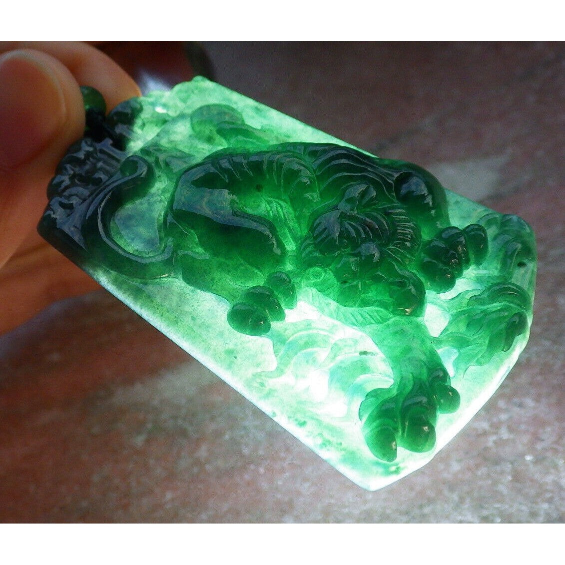 Certified Green Burma 100% Natural A Jade Jadeite Pendant Tiger Necklace