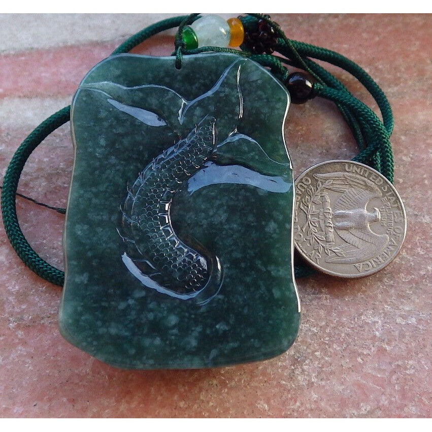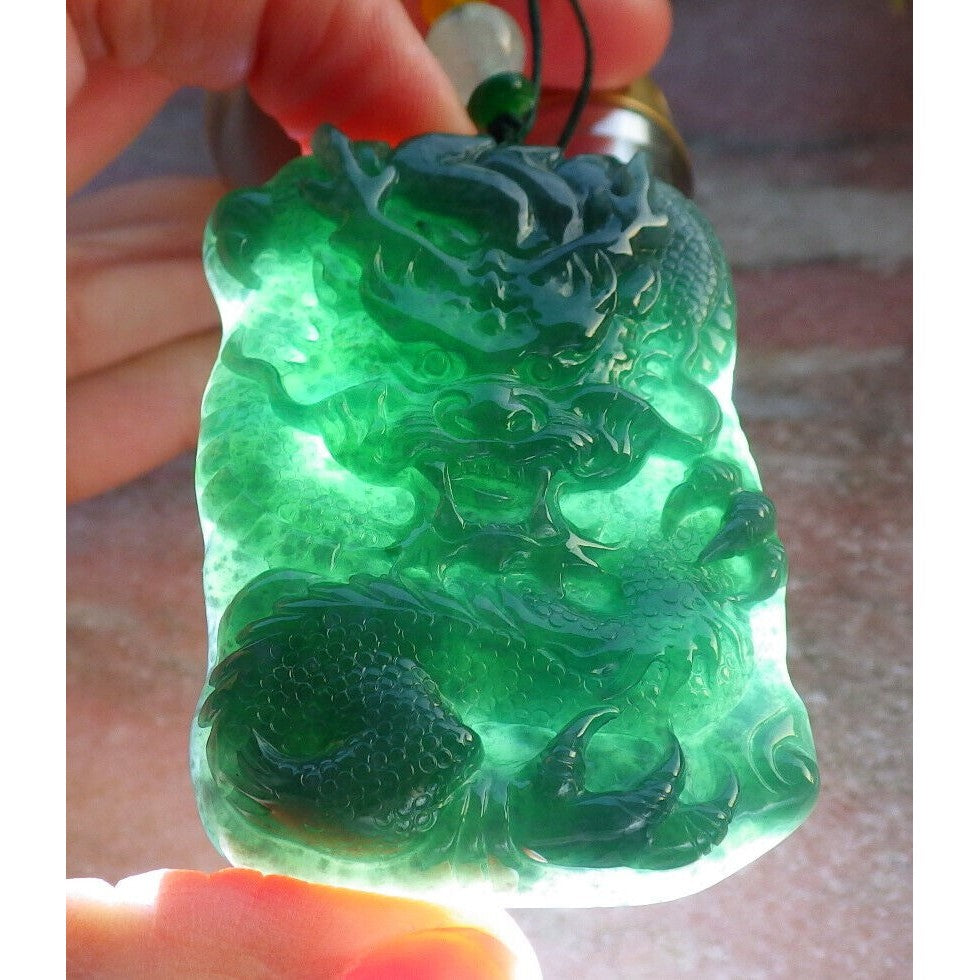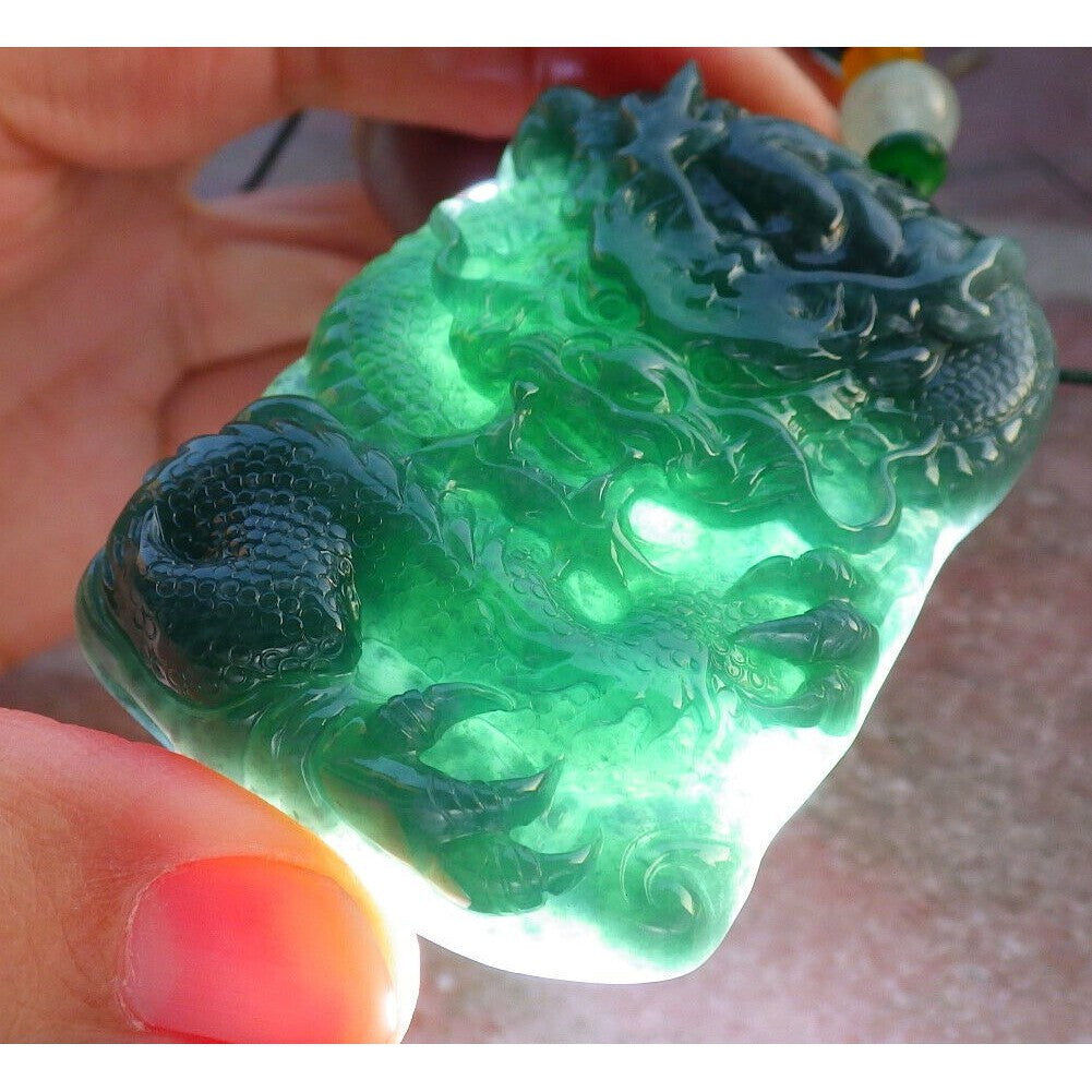 Certified Green Burma Natural A Jade Jadeite Pendant Dragon Pearl Necklace
