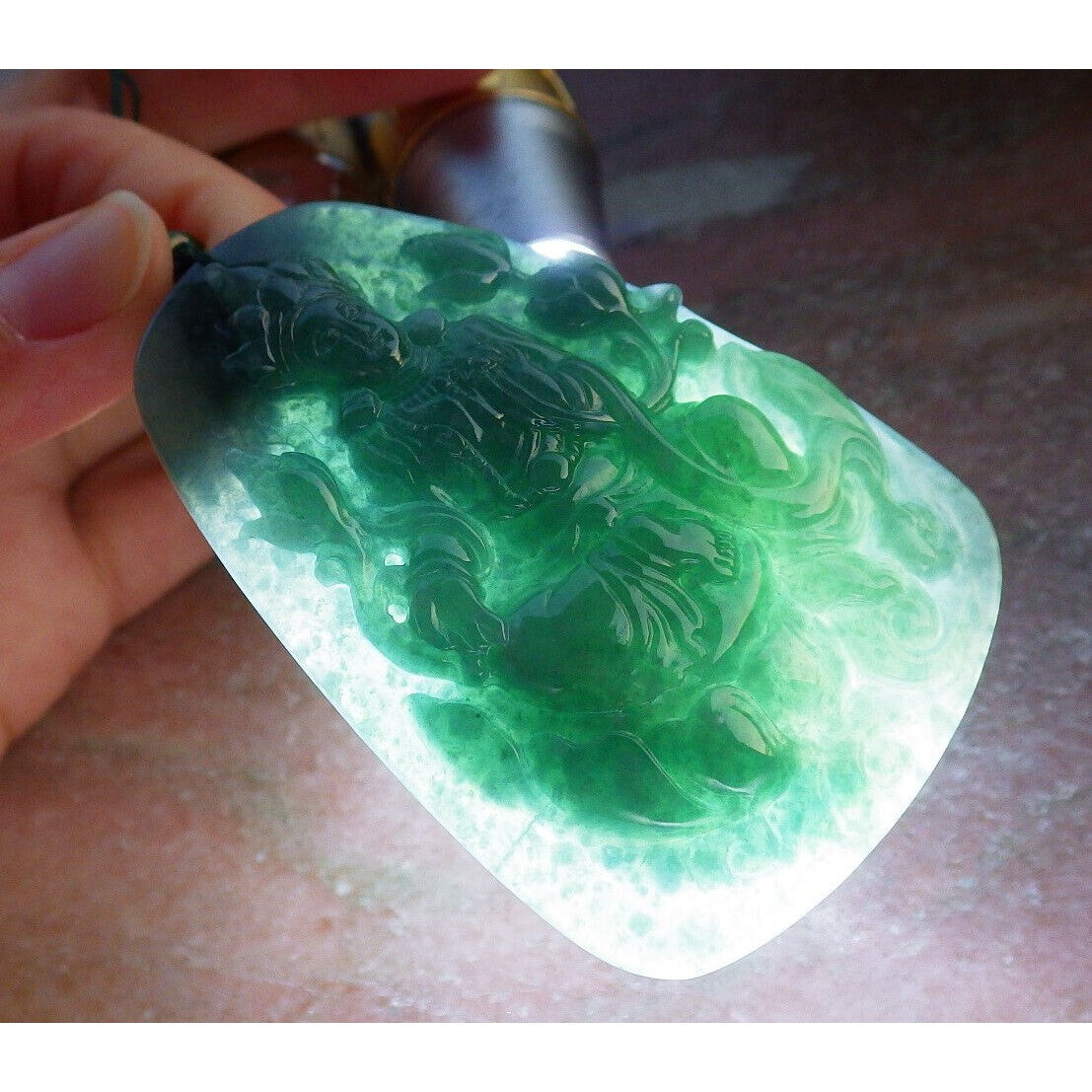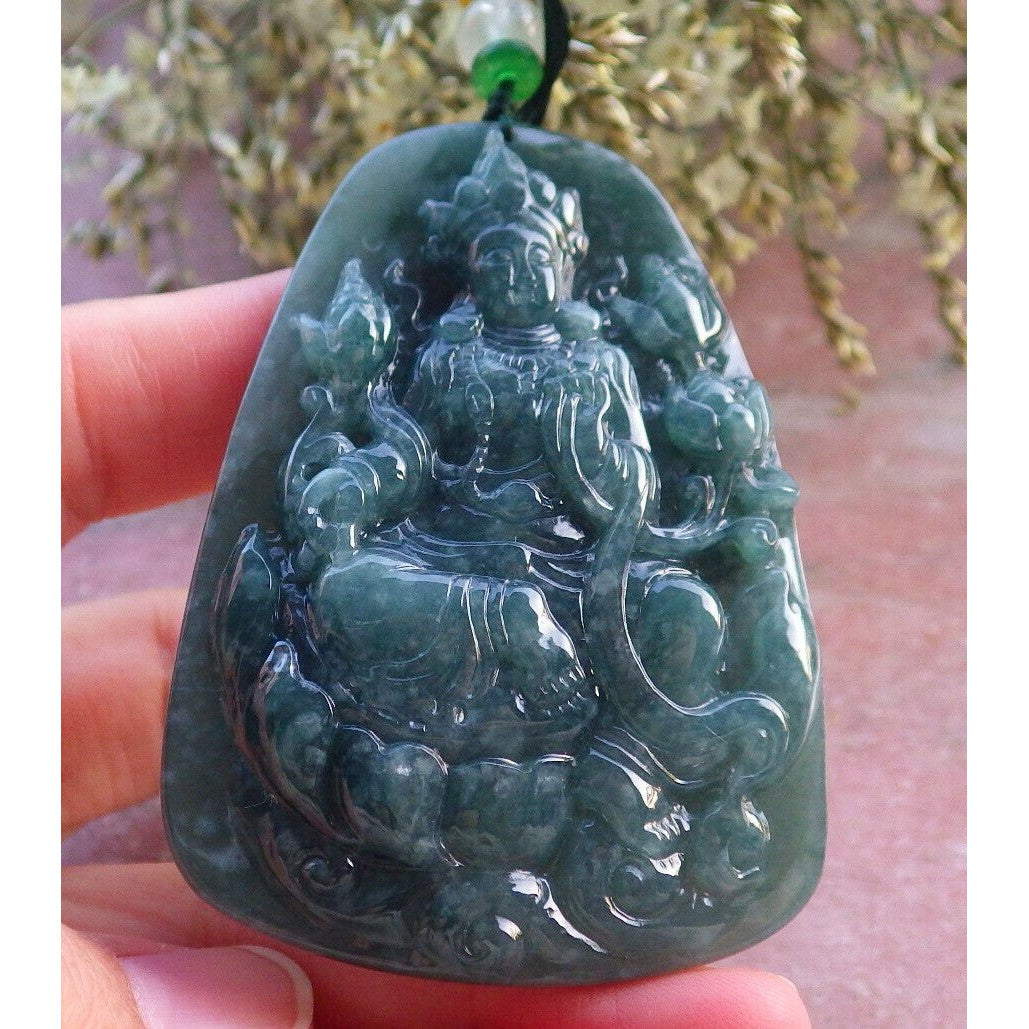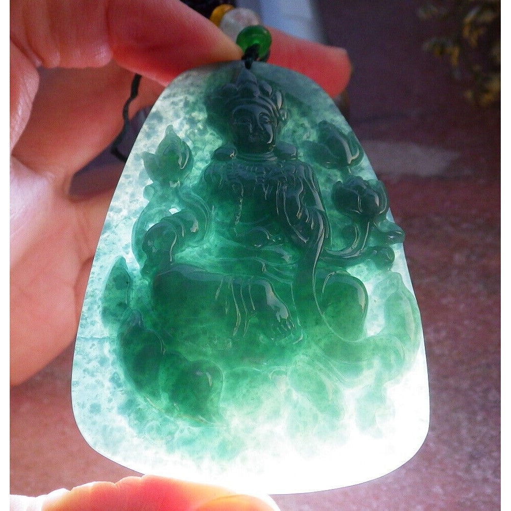 Certified Green Burma Natural A Jade Jadeite Pendant Guanyin Lotus Necklace