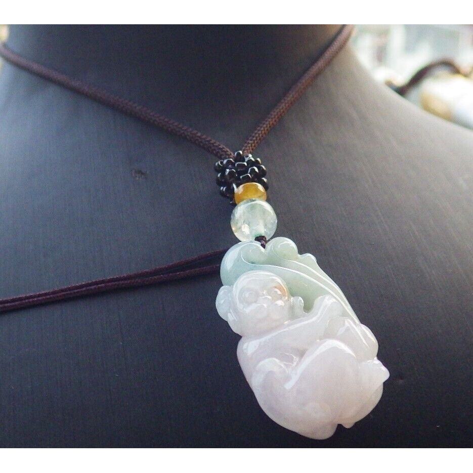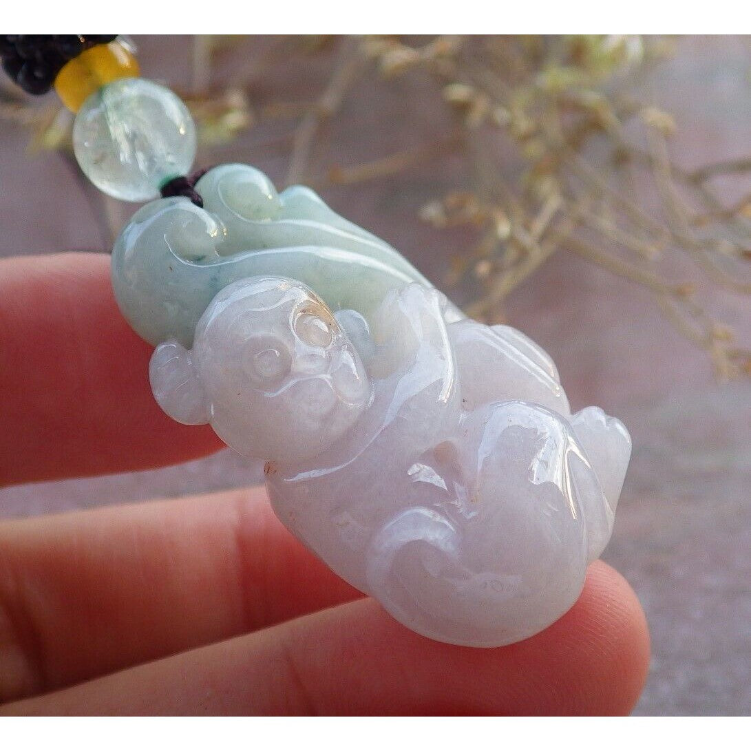 Certified Green Burma Natural A Jade Jadeite Pendant Monkey Yuan Bao