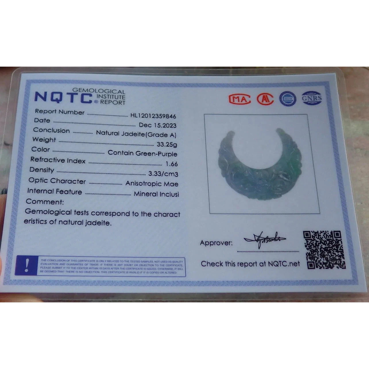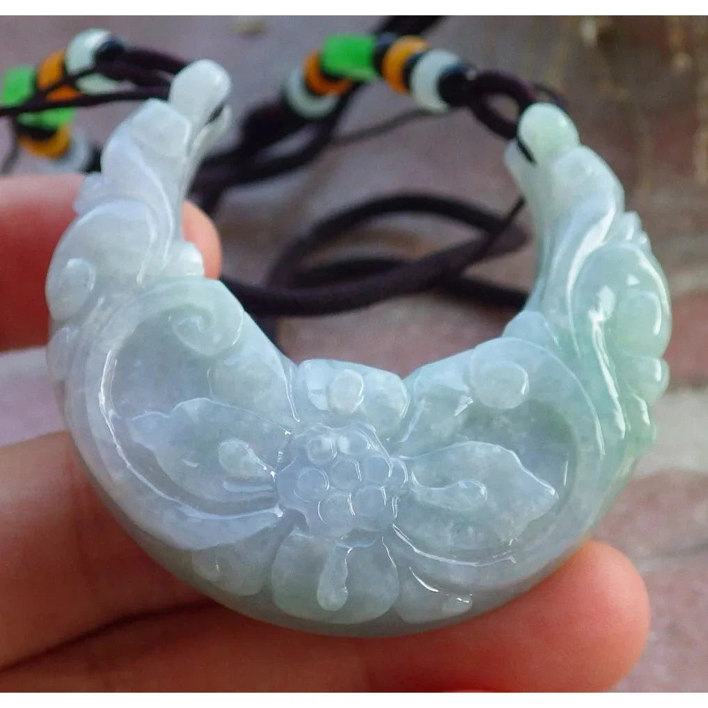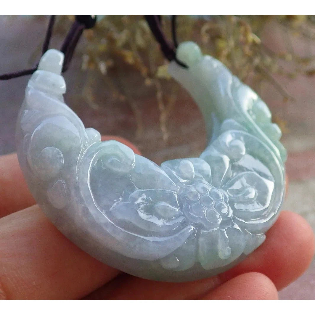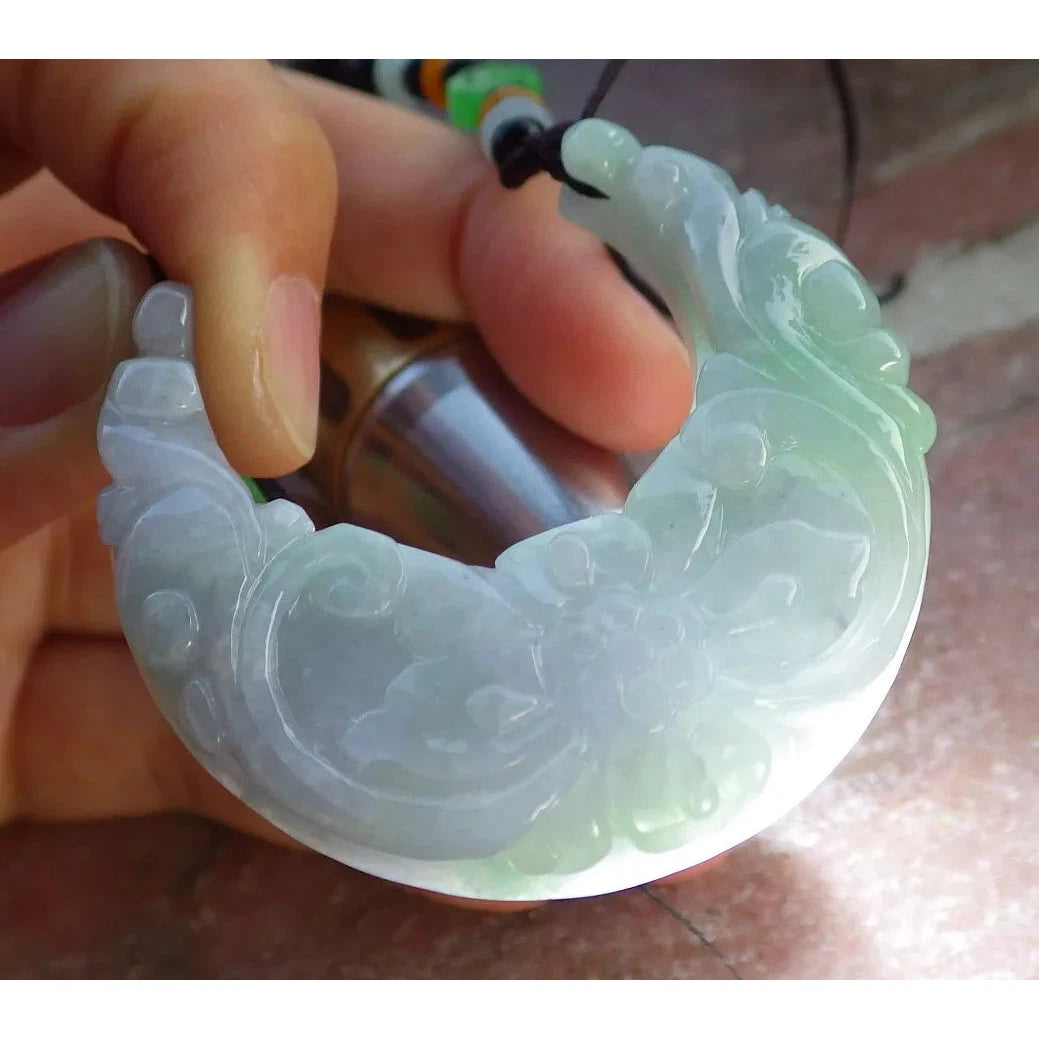 Certified Green Burma Natural A Jade Jadeite Pendant Ruyi Butterfly Necklace