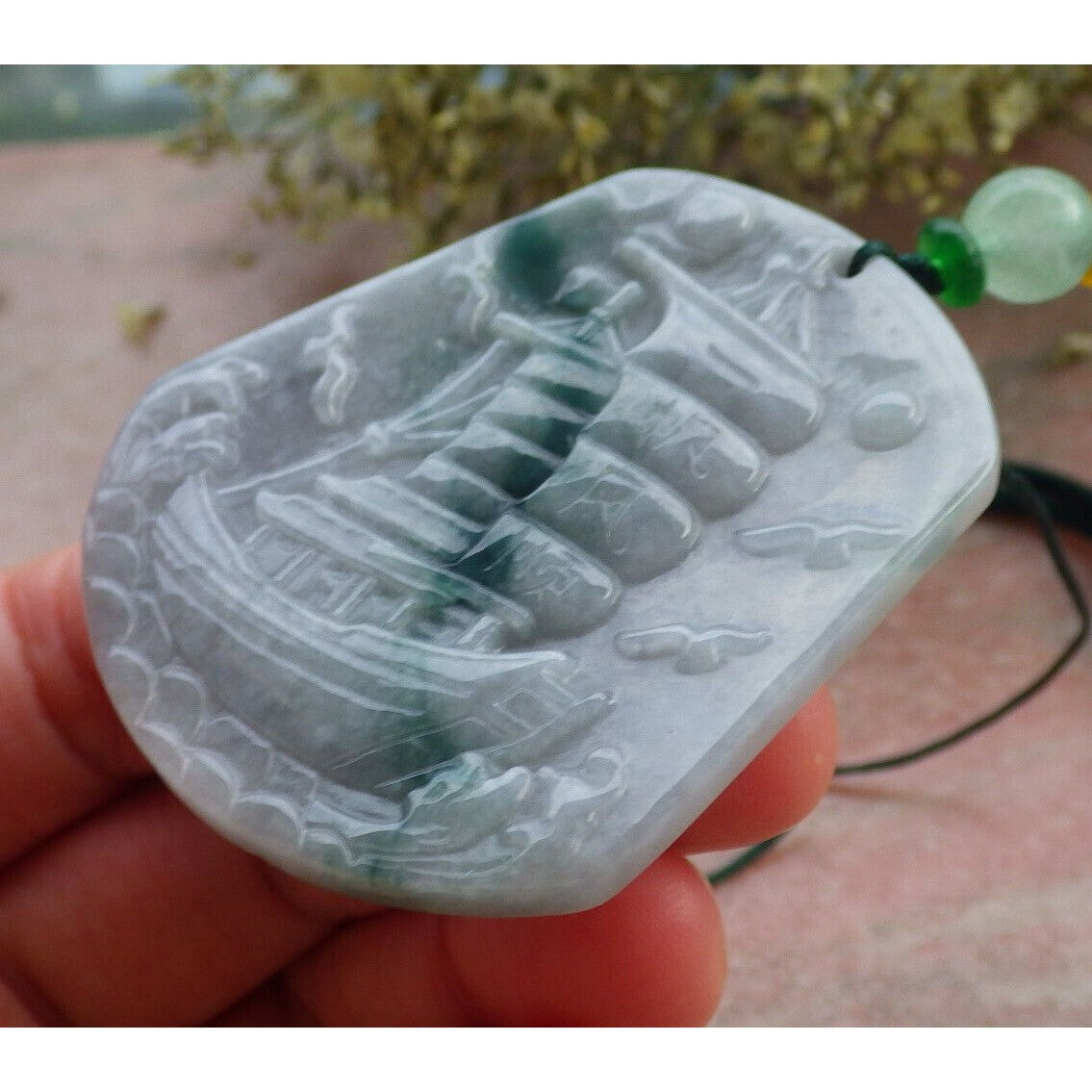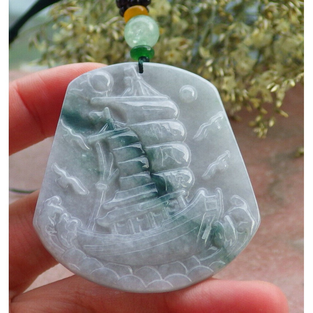 Certified Green Burma Natural A Jade Jadeite Pendant Sailboat Necklace