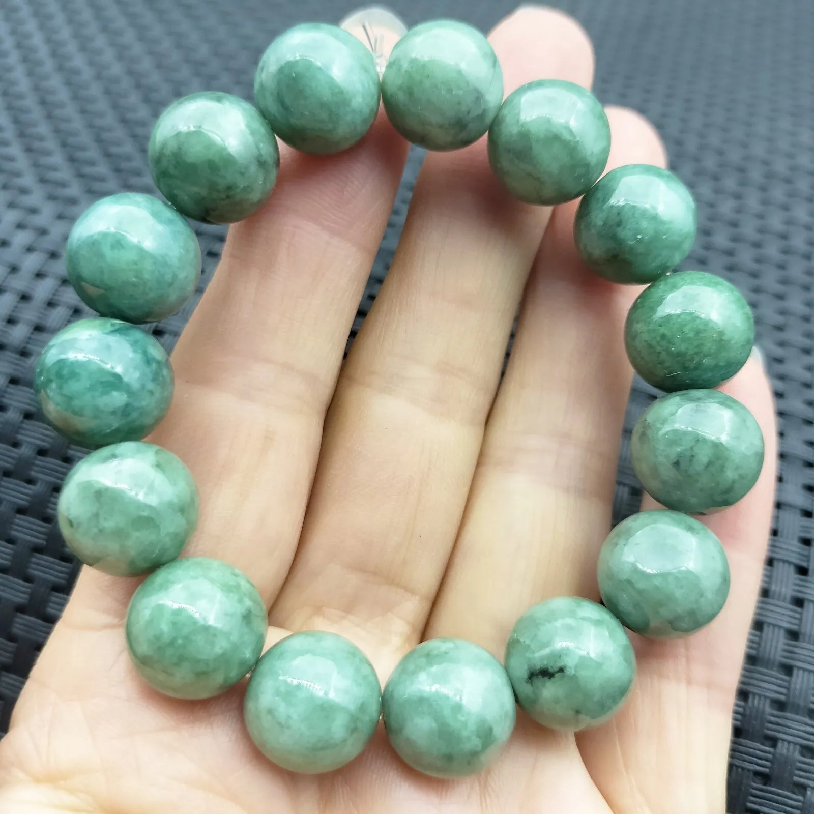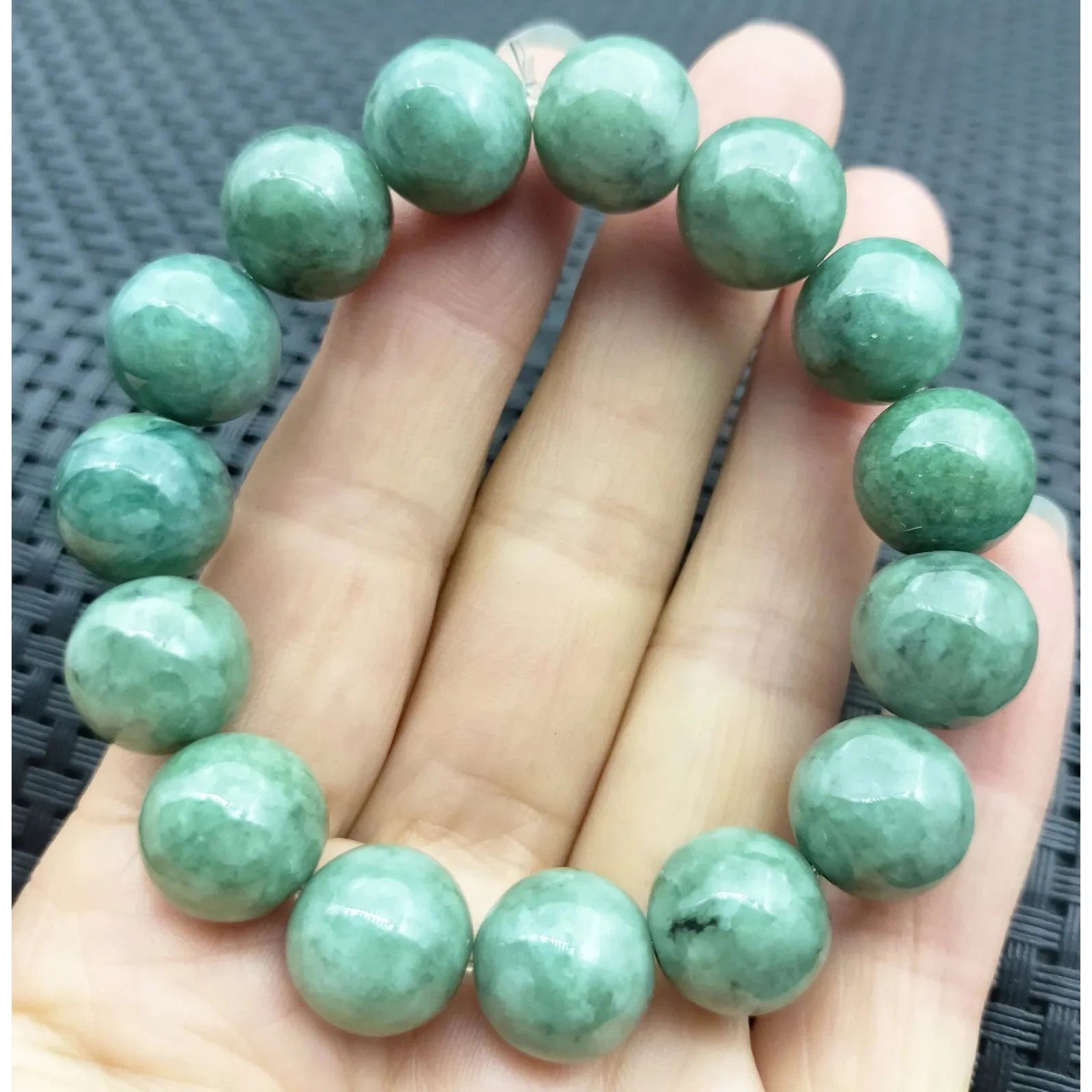 Certified Green Burma Natural A Jadeite Carved 12.2MM Bead Stretch Bracelet