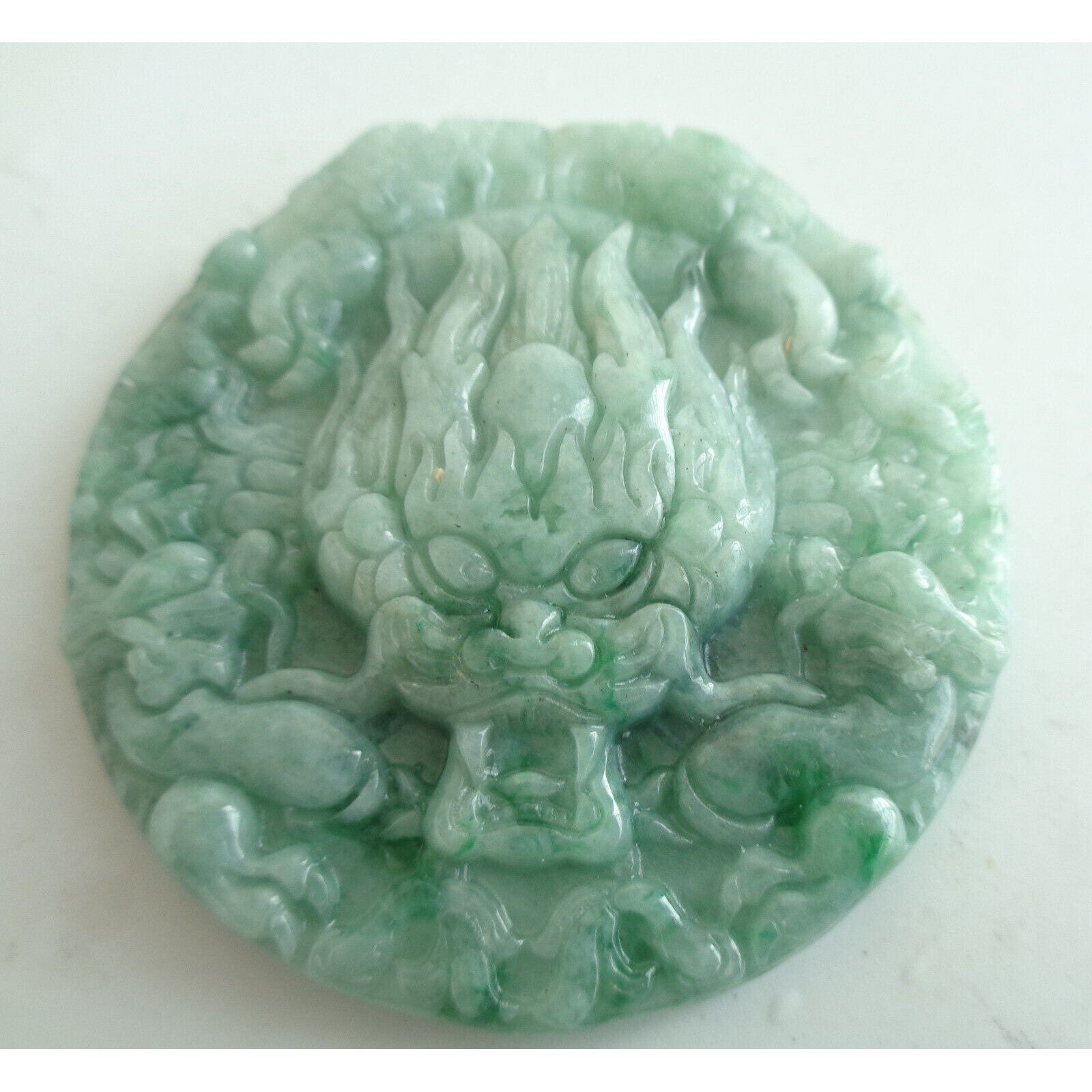 Certified Green Burma Natural Type A Jadeite Carved Dragon Ruyi Pendant