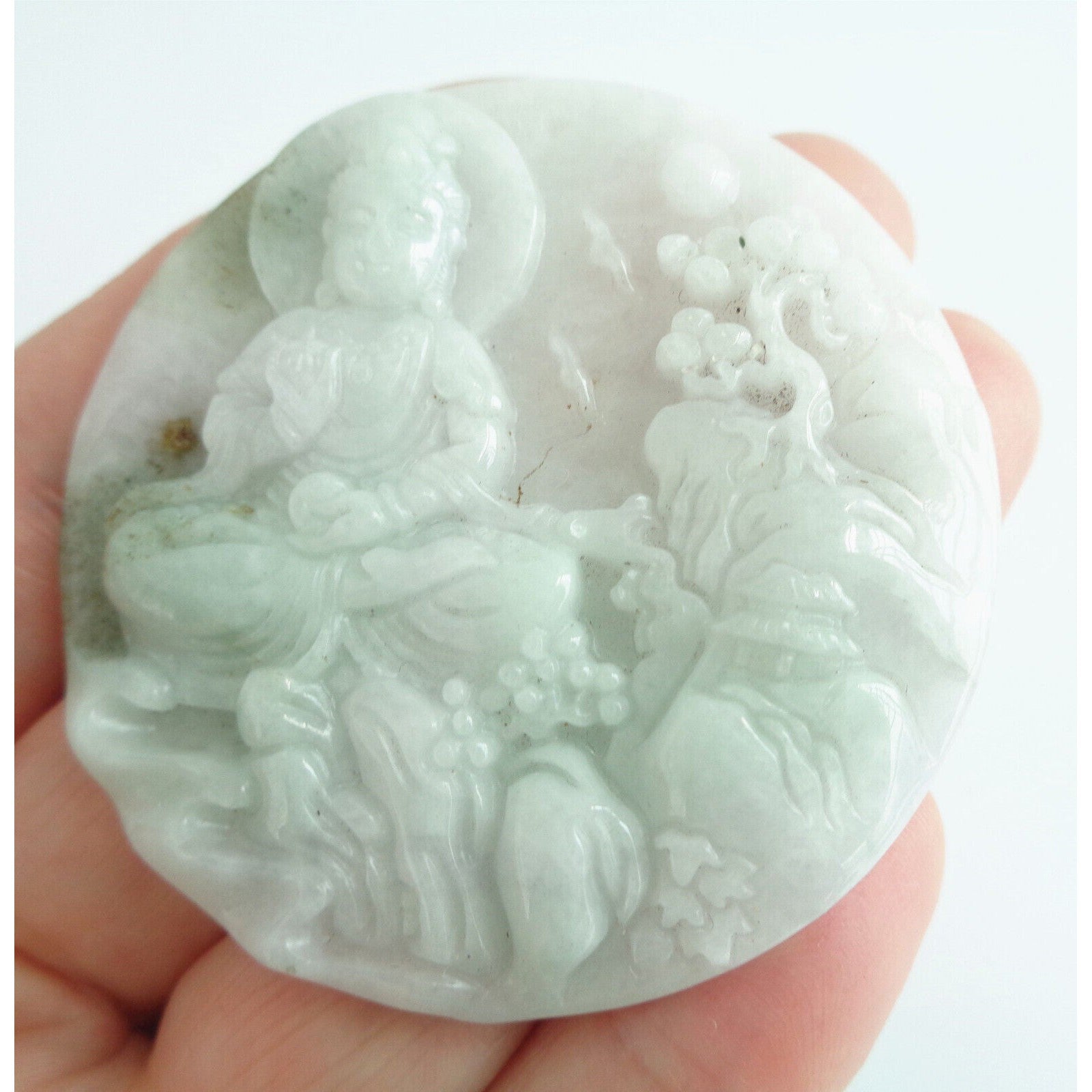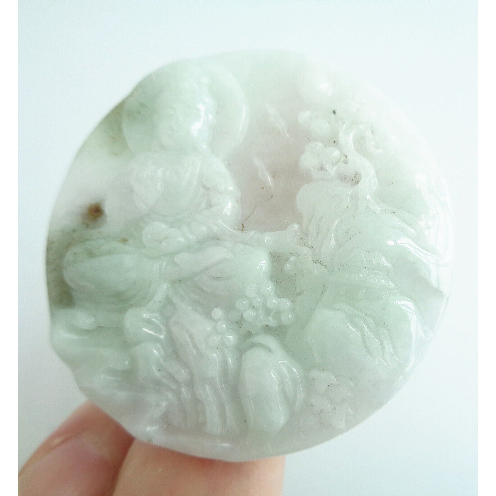 Certified Green Lavender A Jade Pendant Guanyin Kwan Yin God Landscape Painting