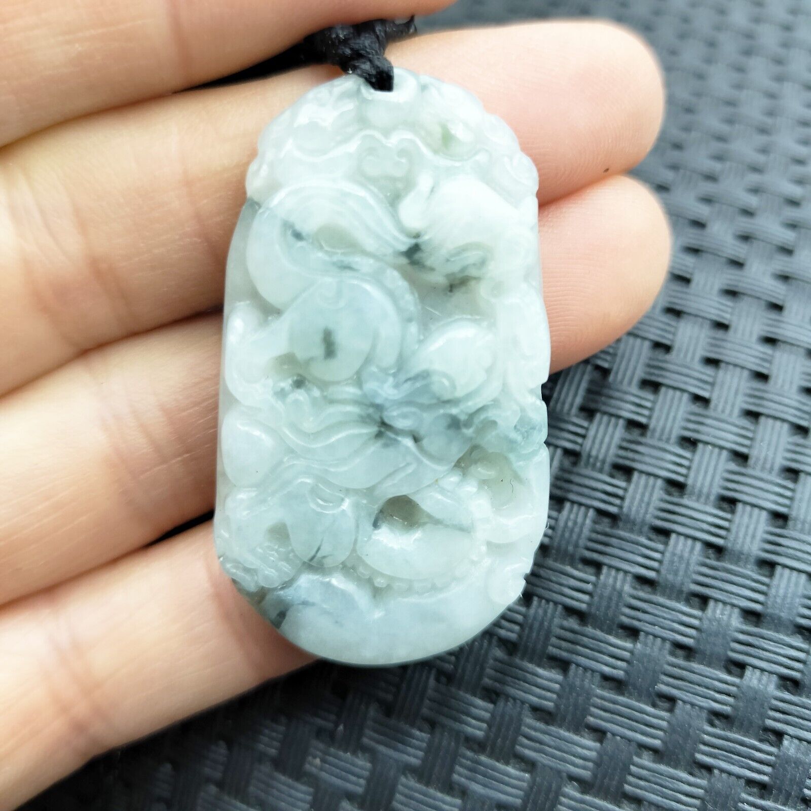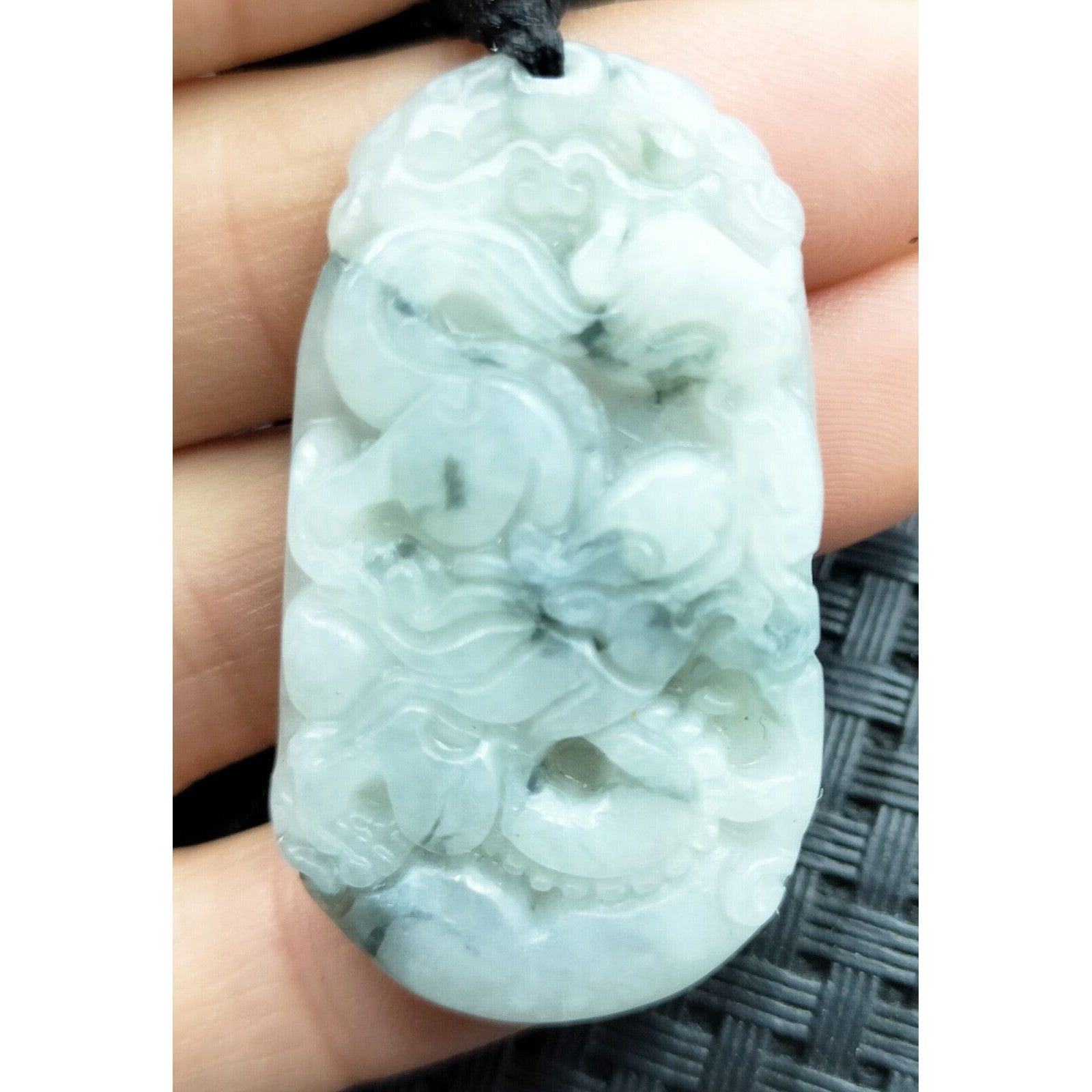 Certified Green Lavender Natural Type A Jade Jadeite Carved Dragon Necklace