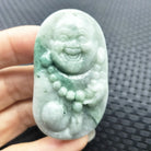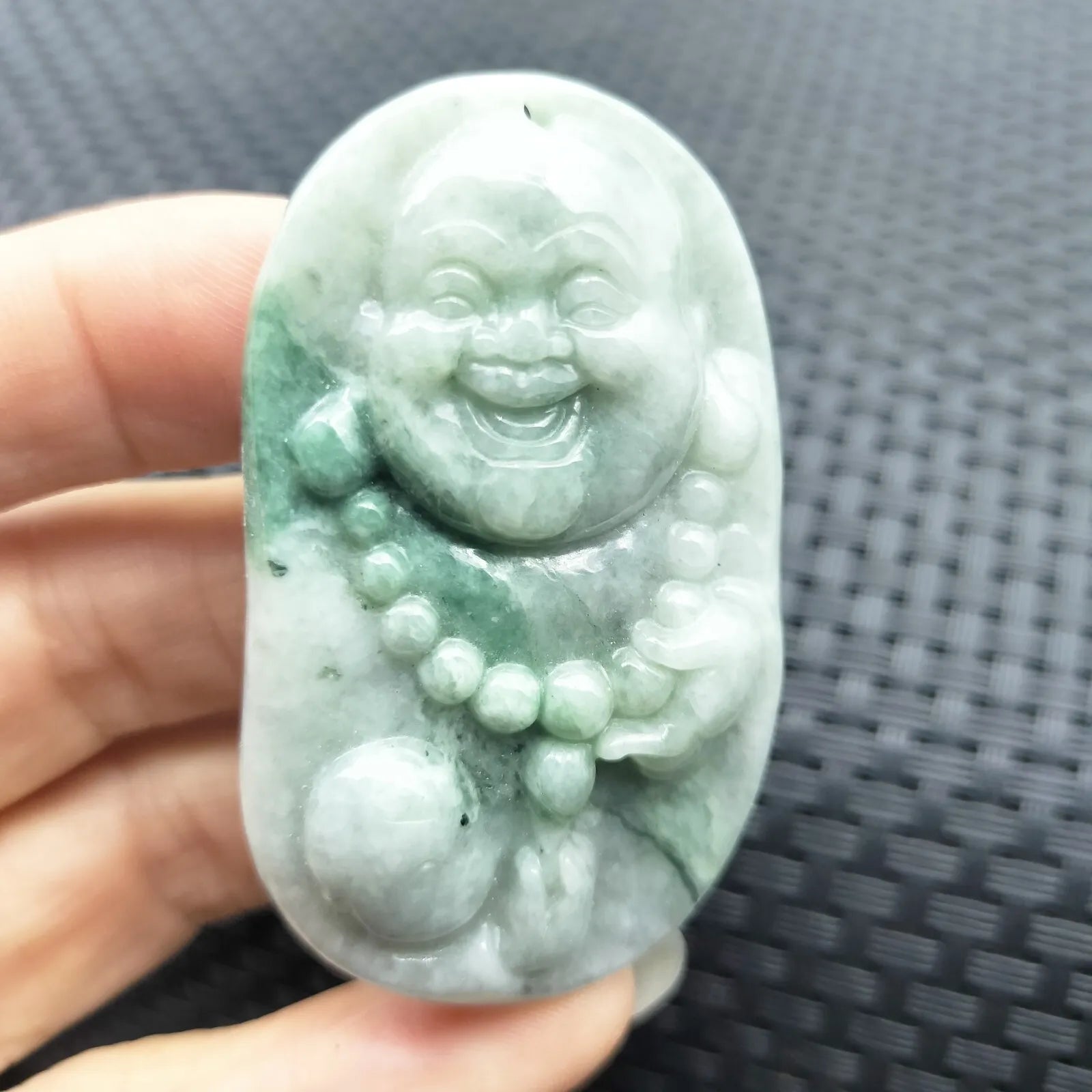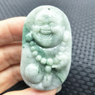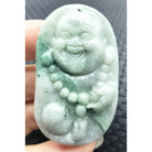 Certified Green Lavender Natural Type A Jadeite Carved Happy Buddha God Pendant Necklace