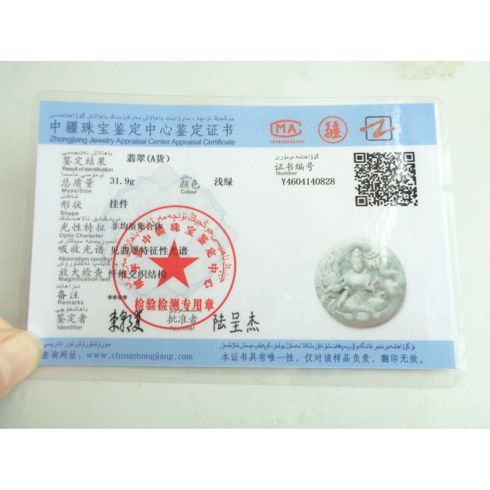 Certified Green Natural A Jade Jadeite Carved Dragon Kwan Yin Pendant