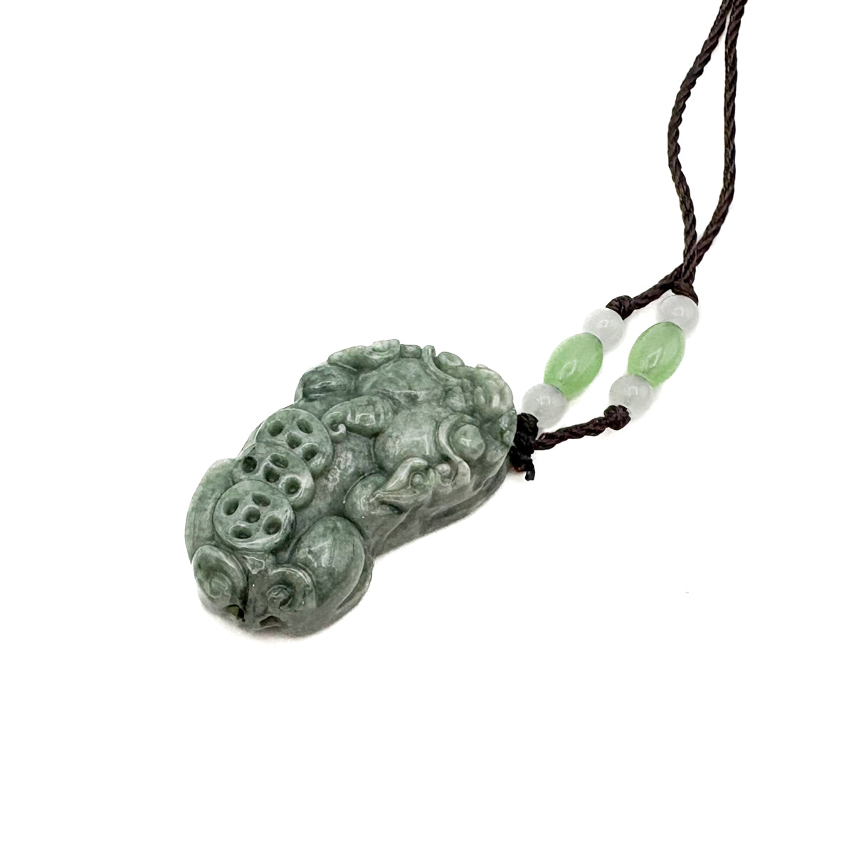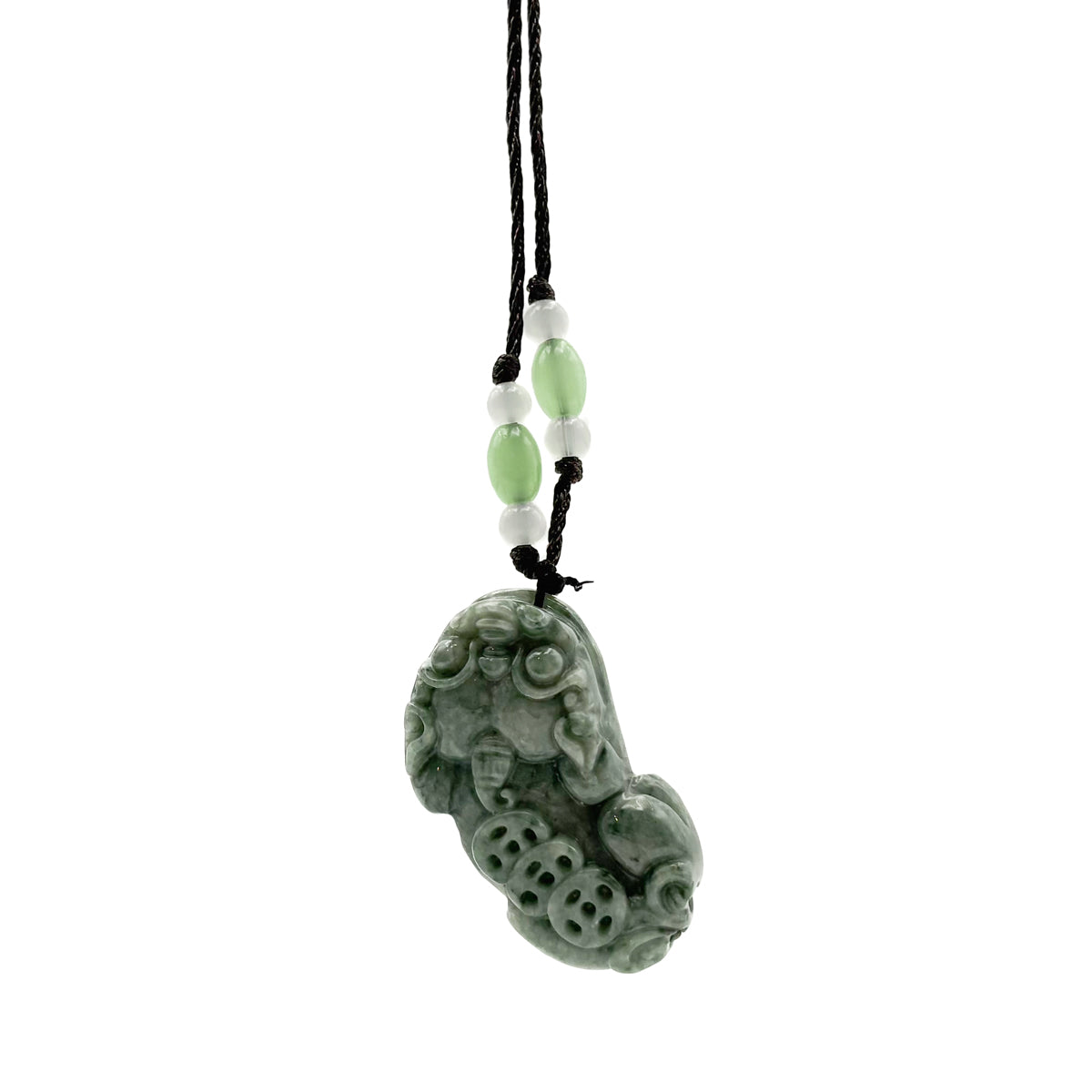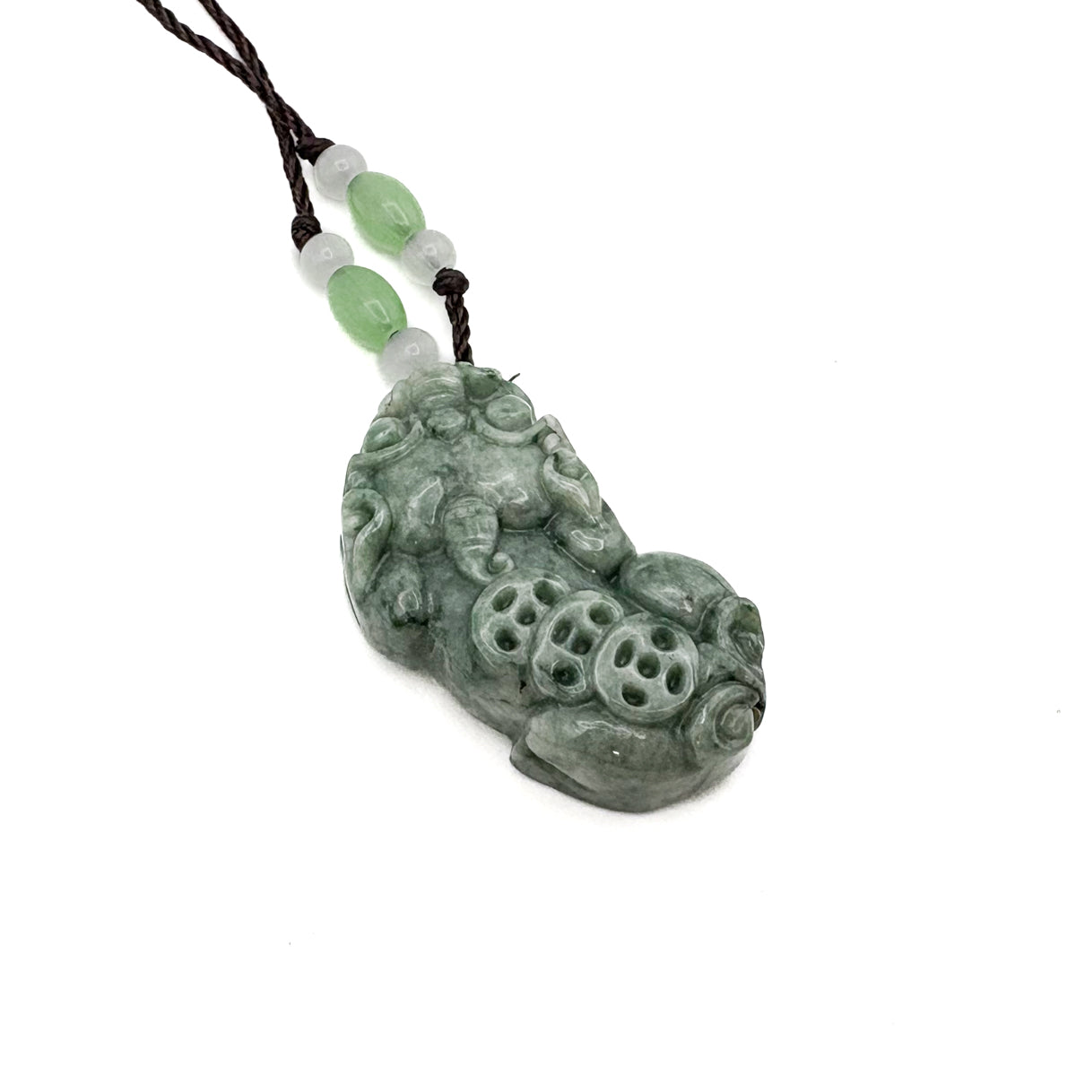 Certified Green Natural A Jade Jadeite Carved Dragon Pi Xiu Ruyi Pendant