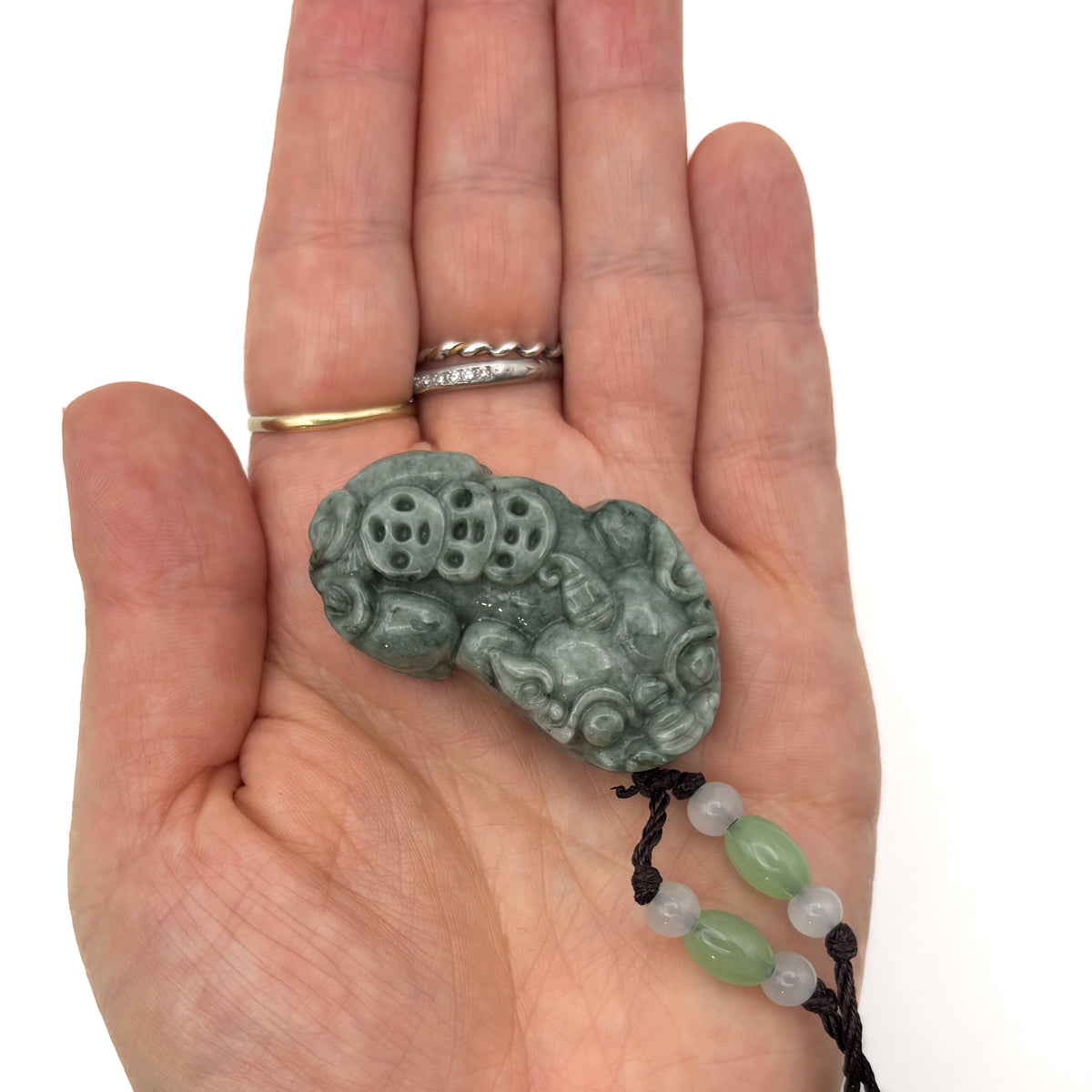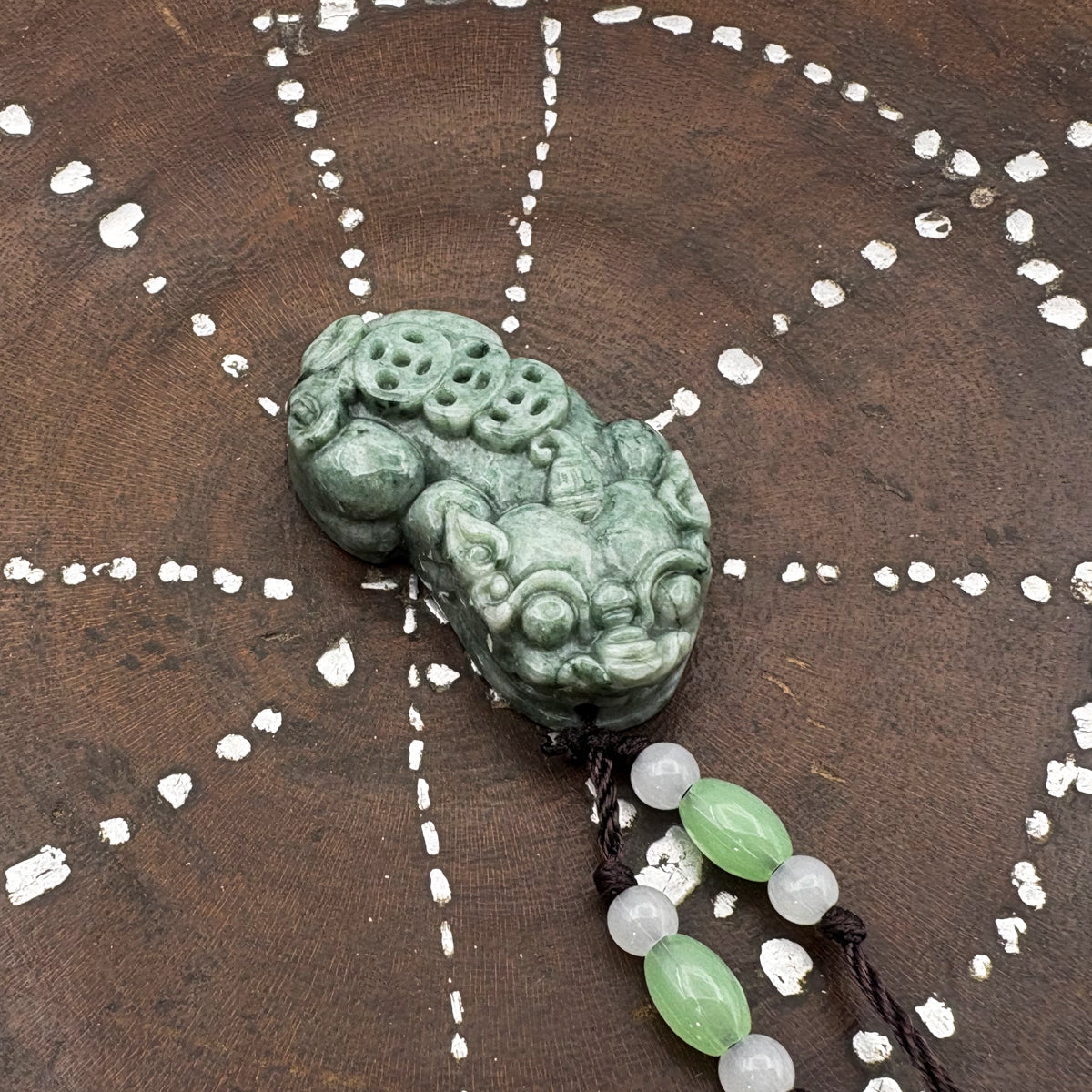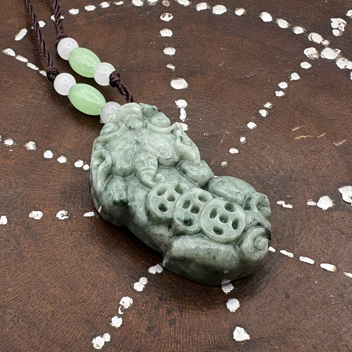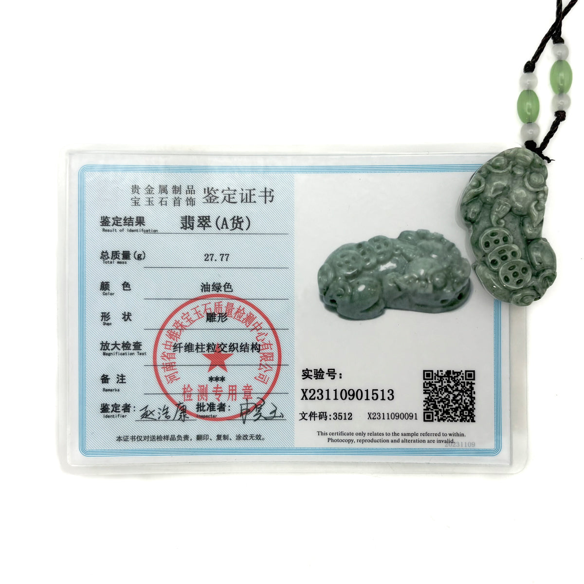 Certified Green Natural A Jade Jadeite Carved Dragon Pi Xiu Ruyi Pendant