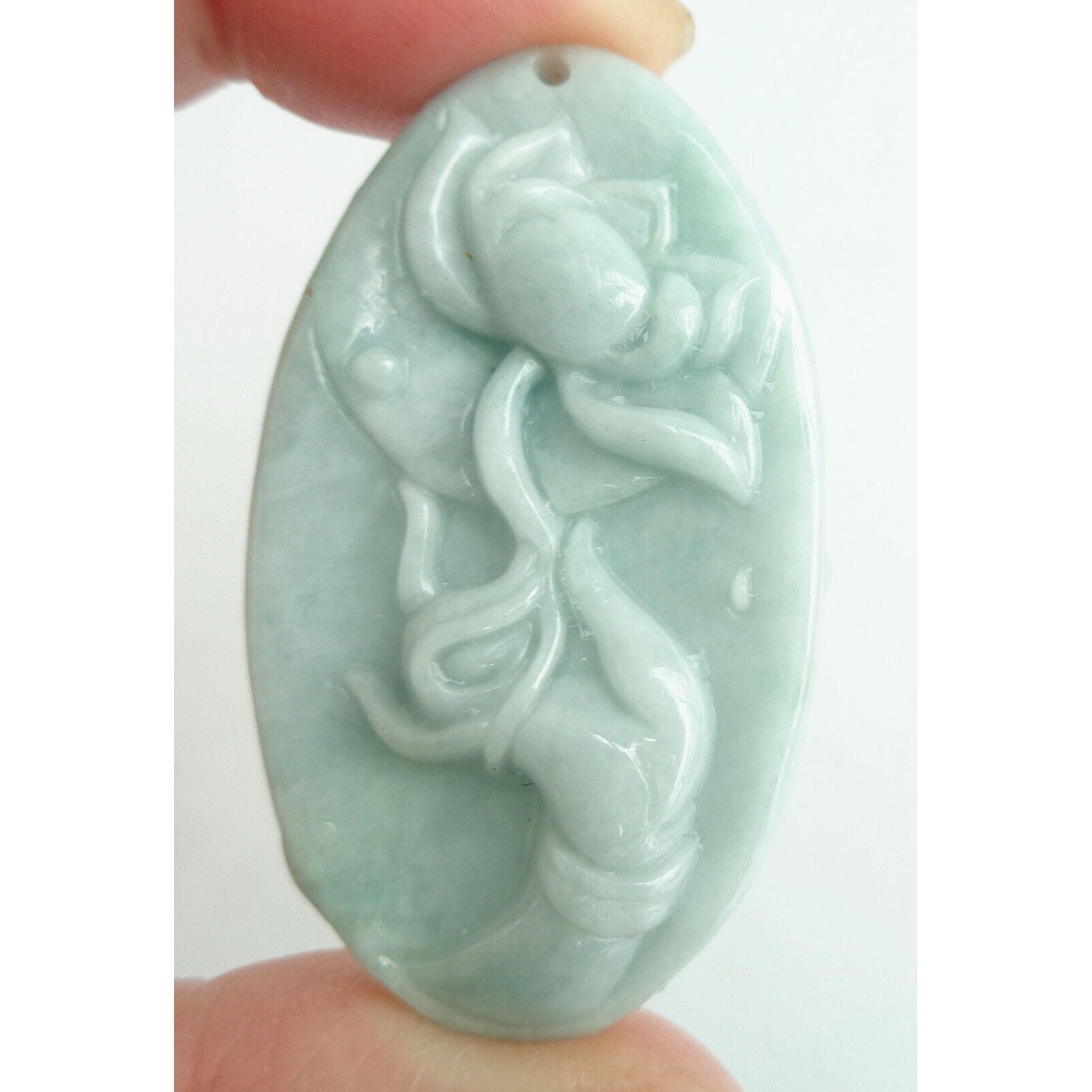 Certified Green Natural A Jade Jadeite Carved Hand Held Lotus Pendant Necklace