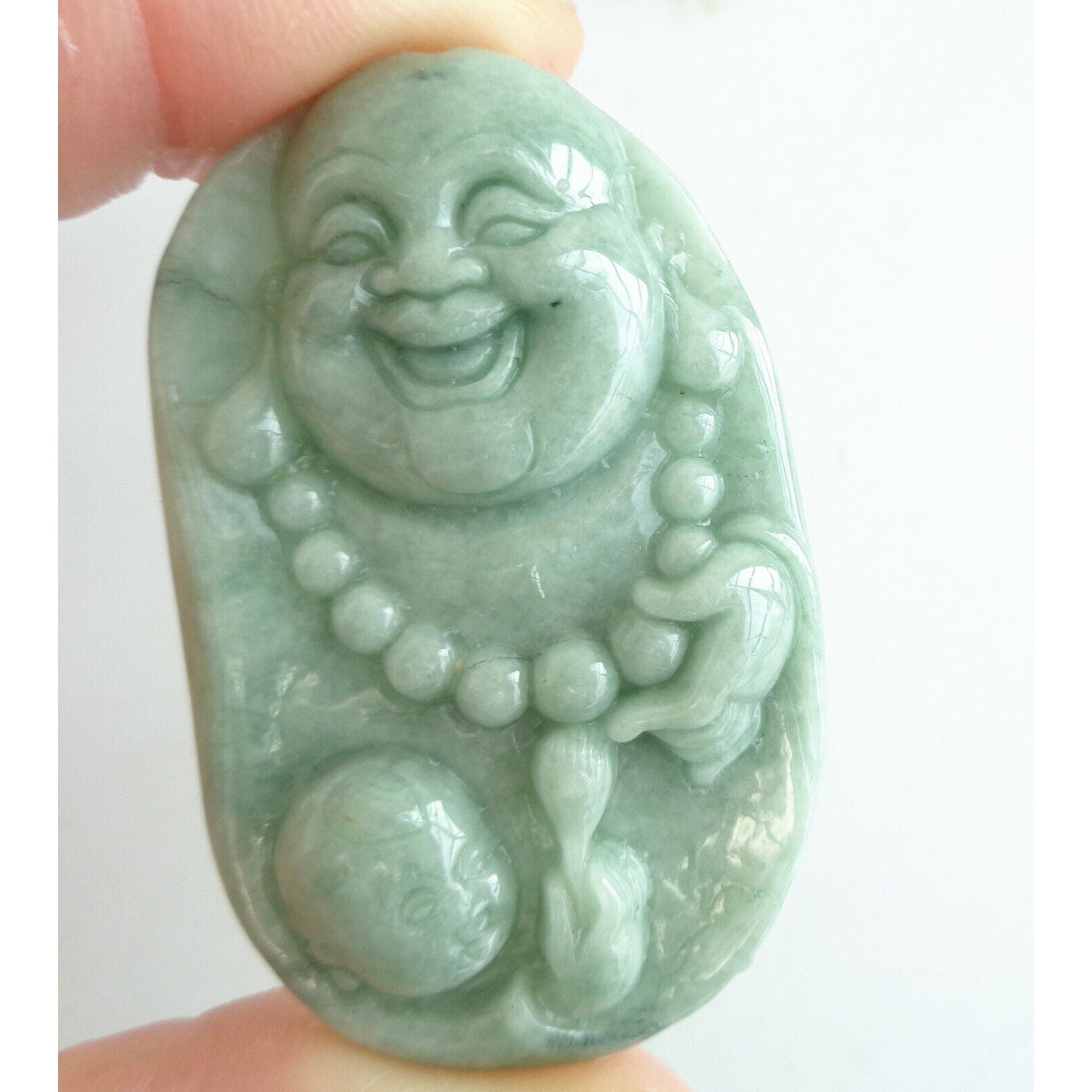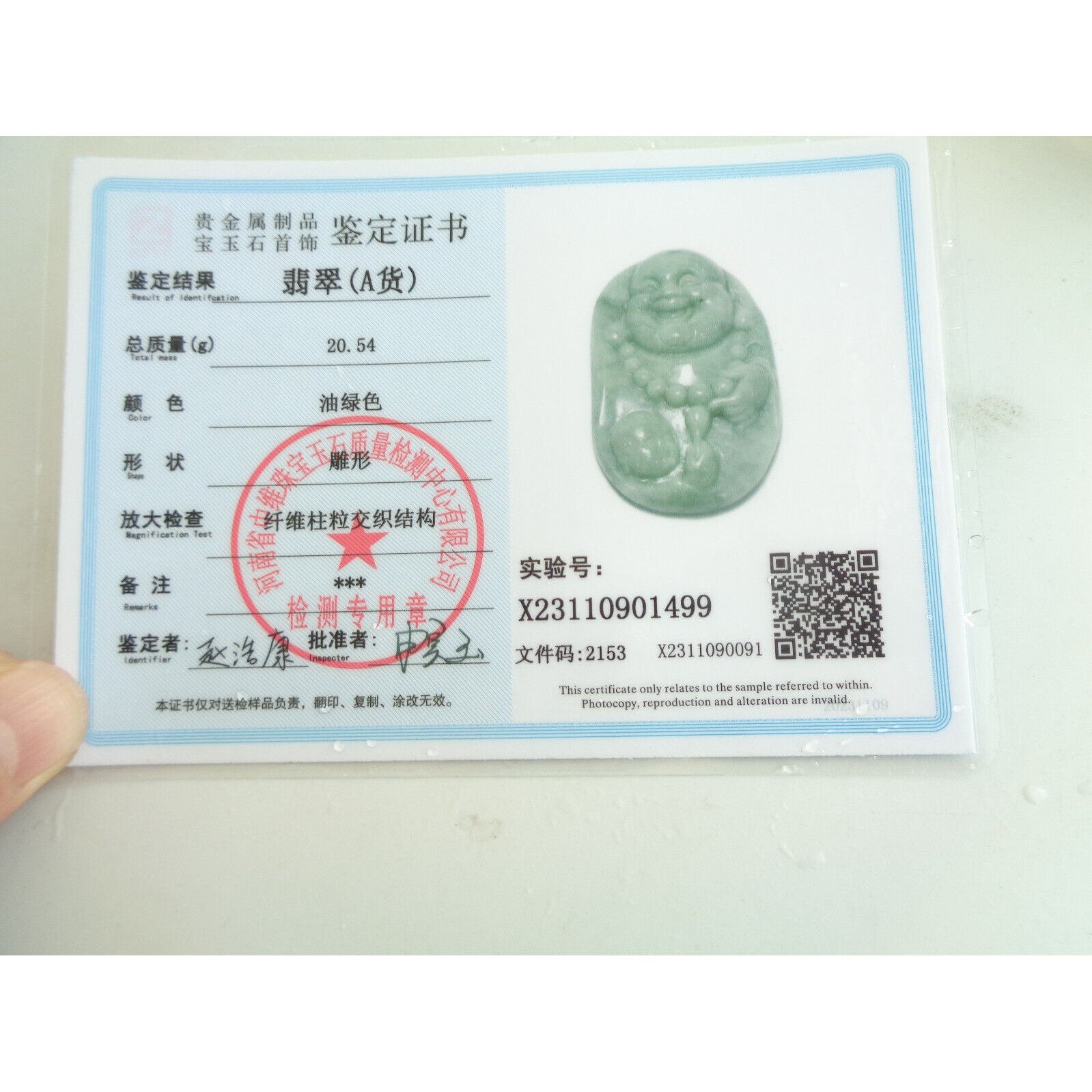 Certified Green Natural A Jadeite Carved Happy Buddha God Child Pendant Necklace