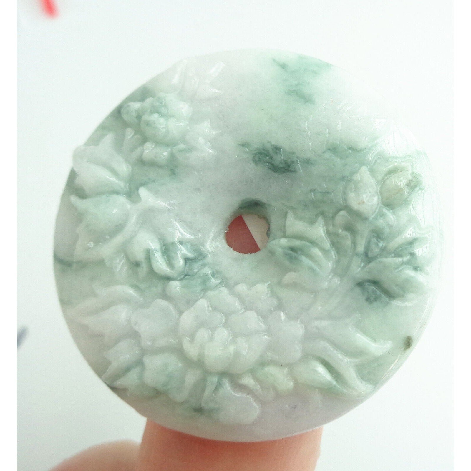 Certified Green Natural A Jadeite Pendant Orchid Flower Circle Donut Pendant