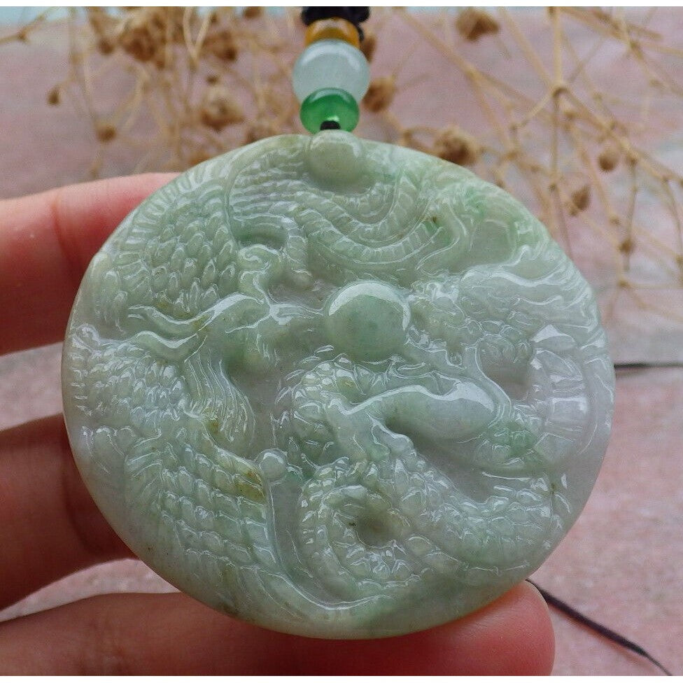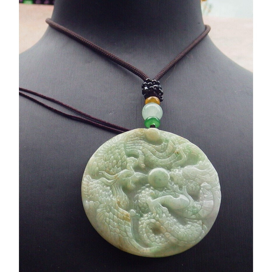 Certified Green Natural Burma A Jade Jadeite Pendant Dragon Phoenix Necklace