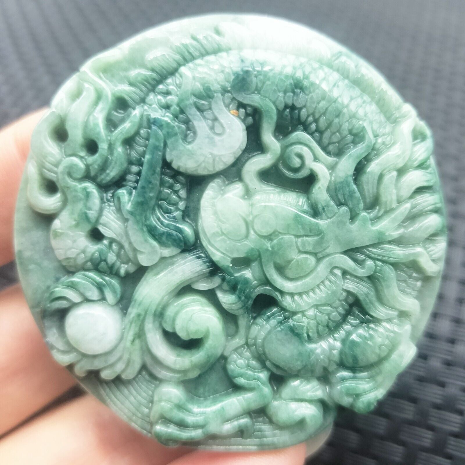 Certified Green Natural Type A Jade Jadeite Carved Dragon Bead Pendant