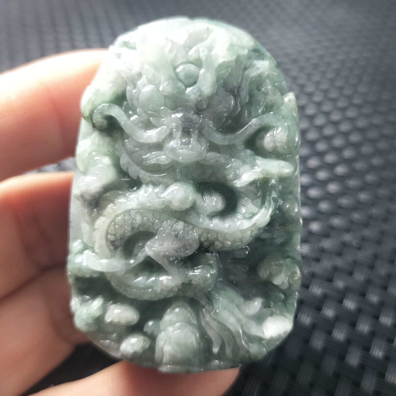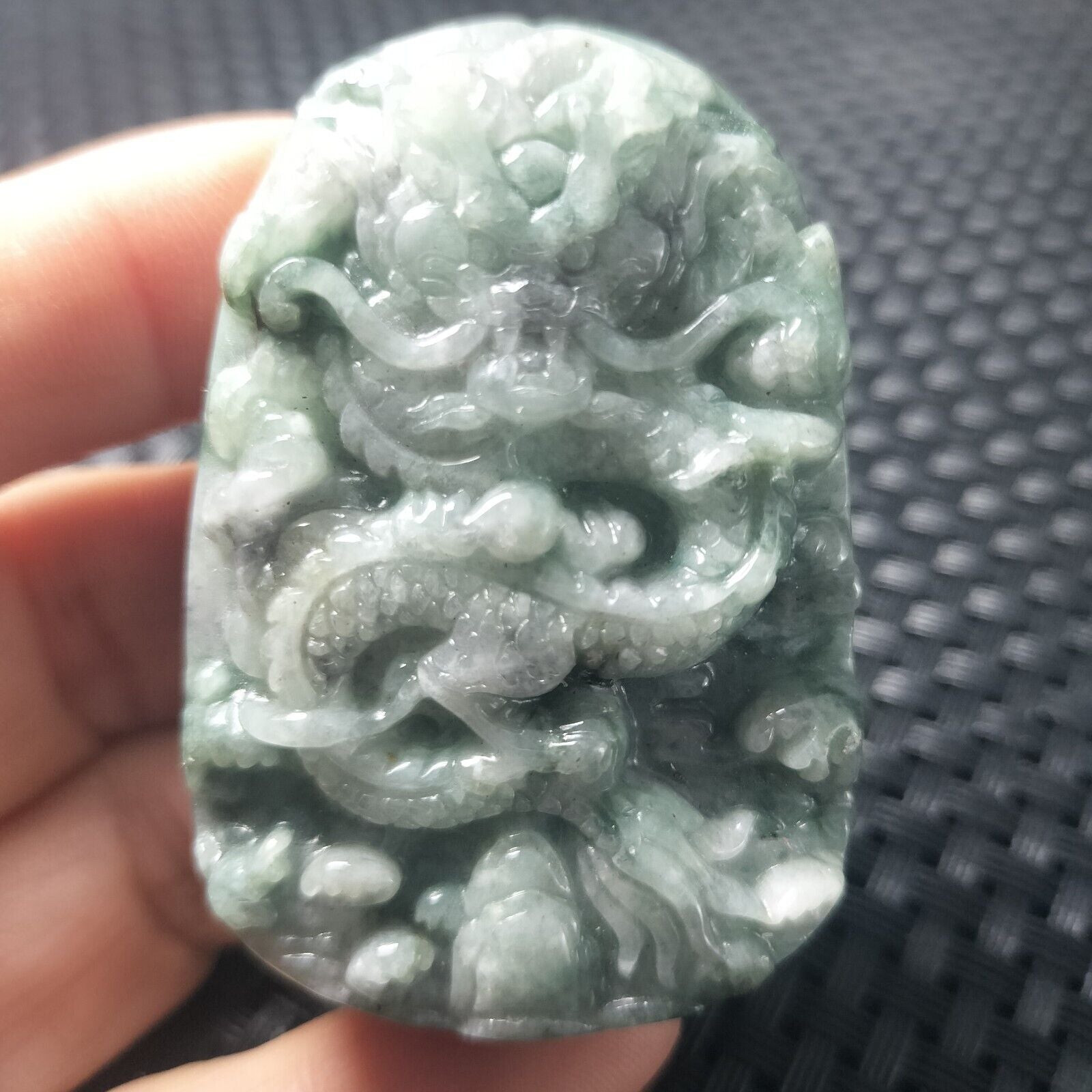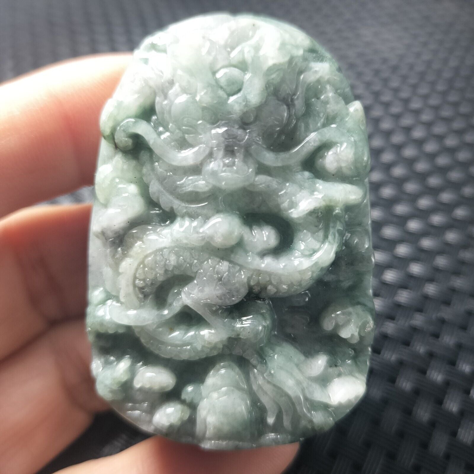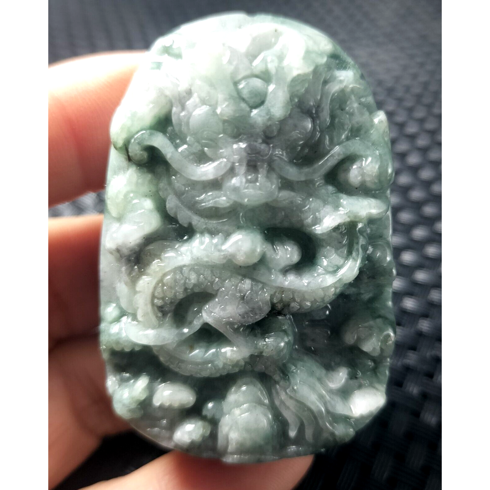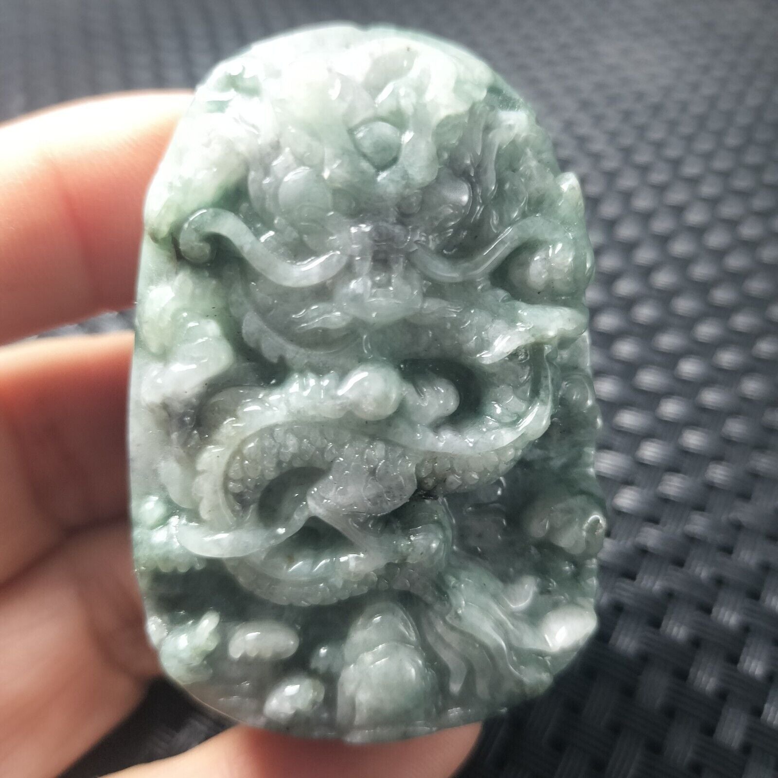Certified Green Natural Type A Jade Jadeite Carved Dragon Bead Pendant Necklace