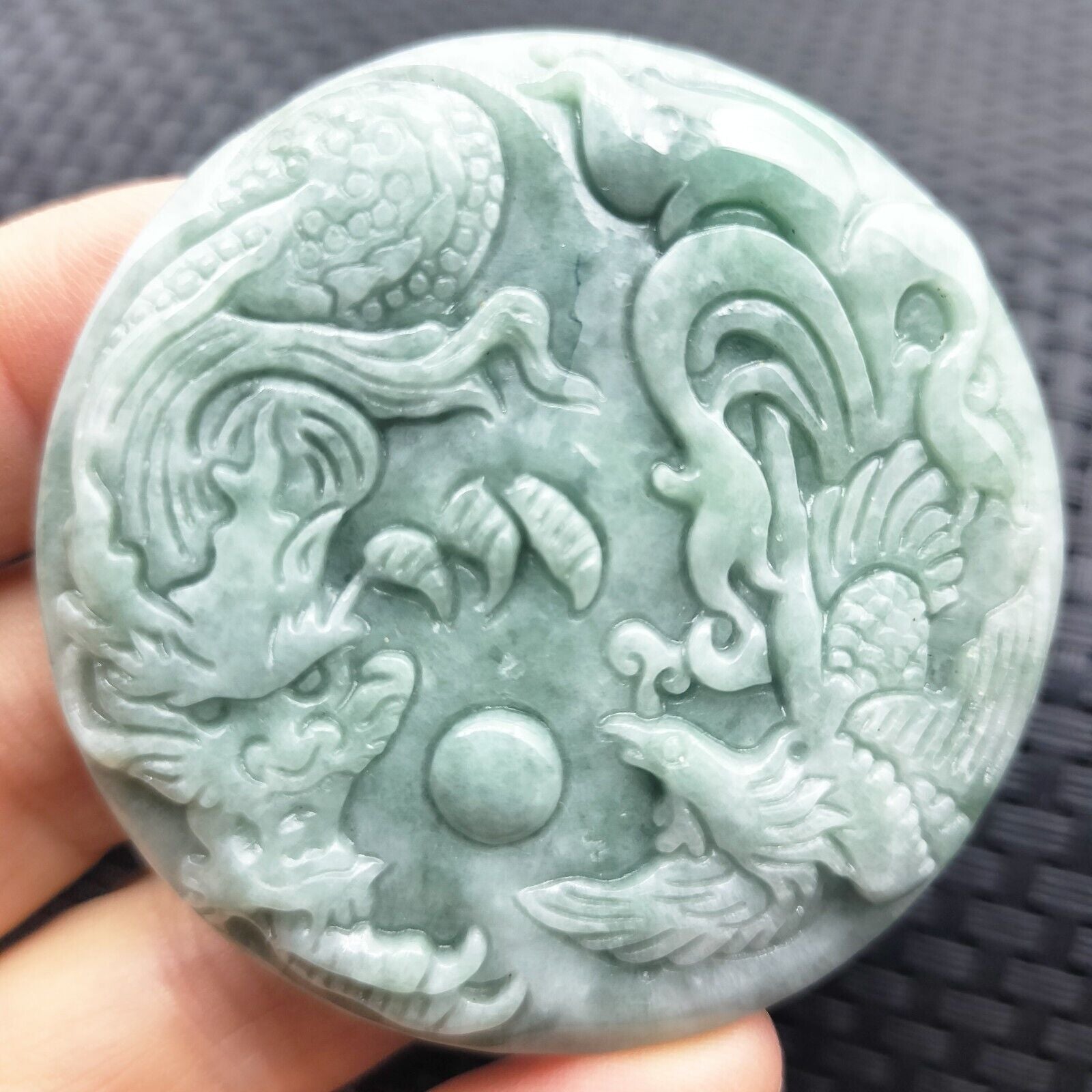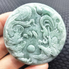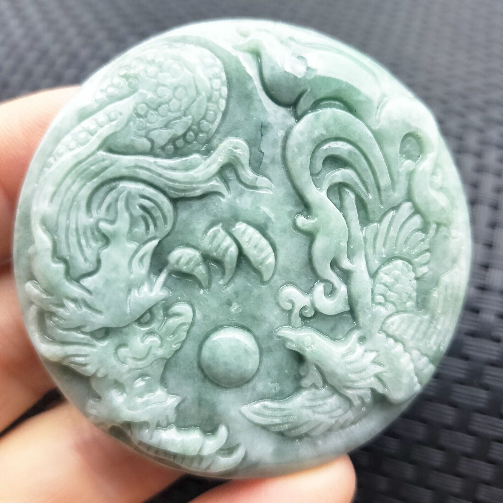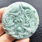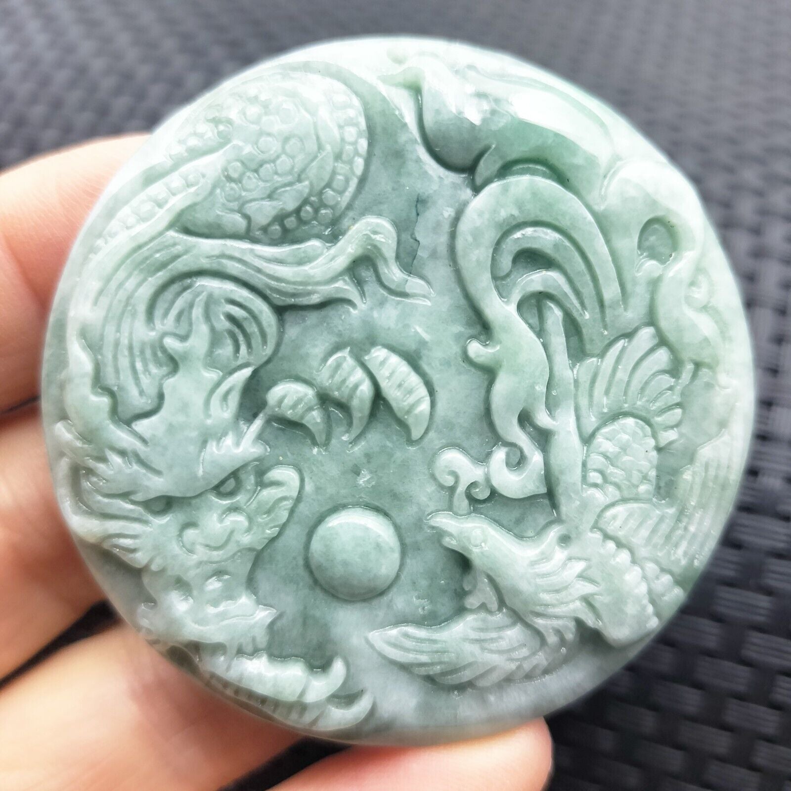 Certified Green Natural Type A Jade Jadeite Carved Dragon Phoenix Pendant